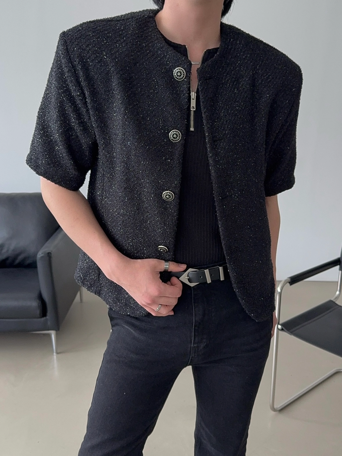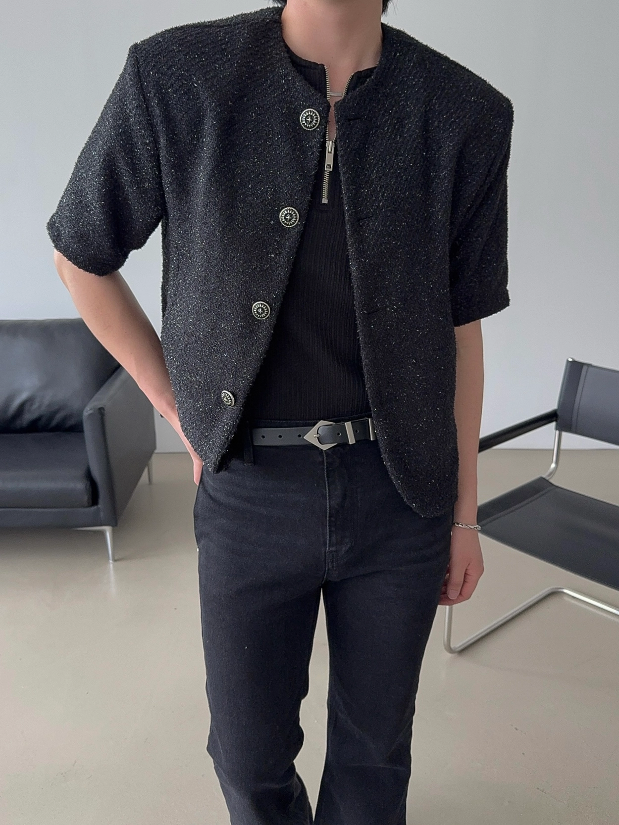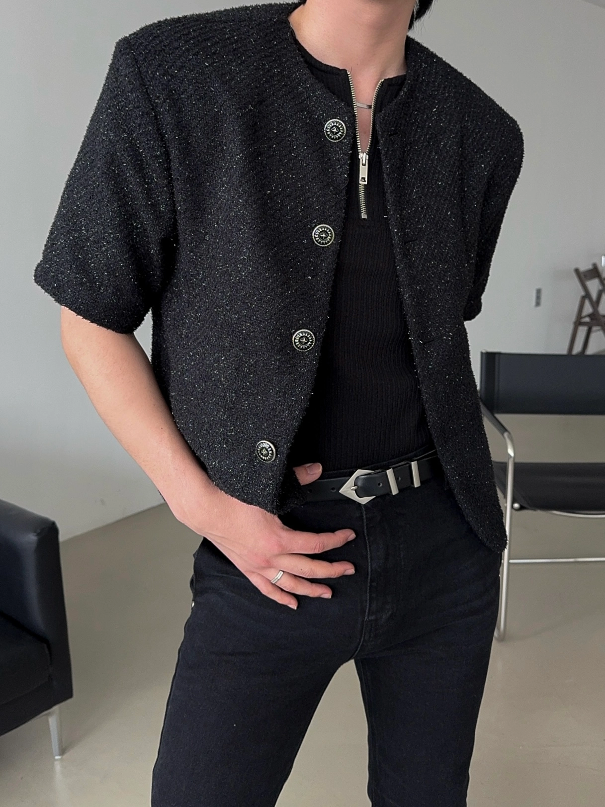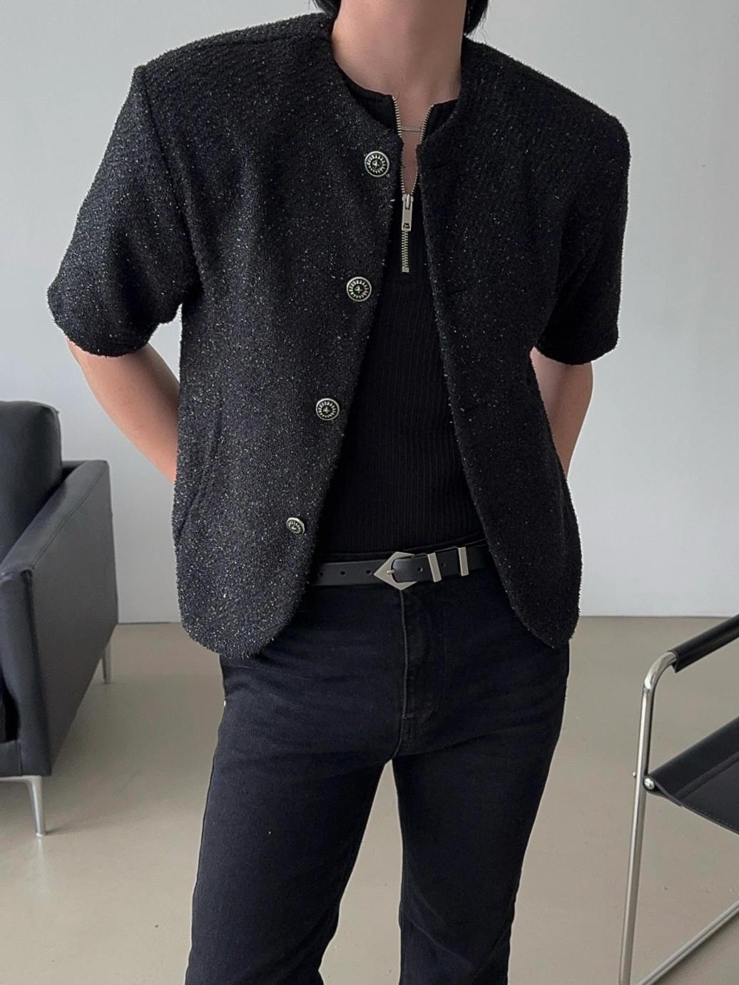 - 粗花呢短袖夾克,奢華質感與簡約設計完美結合