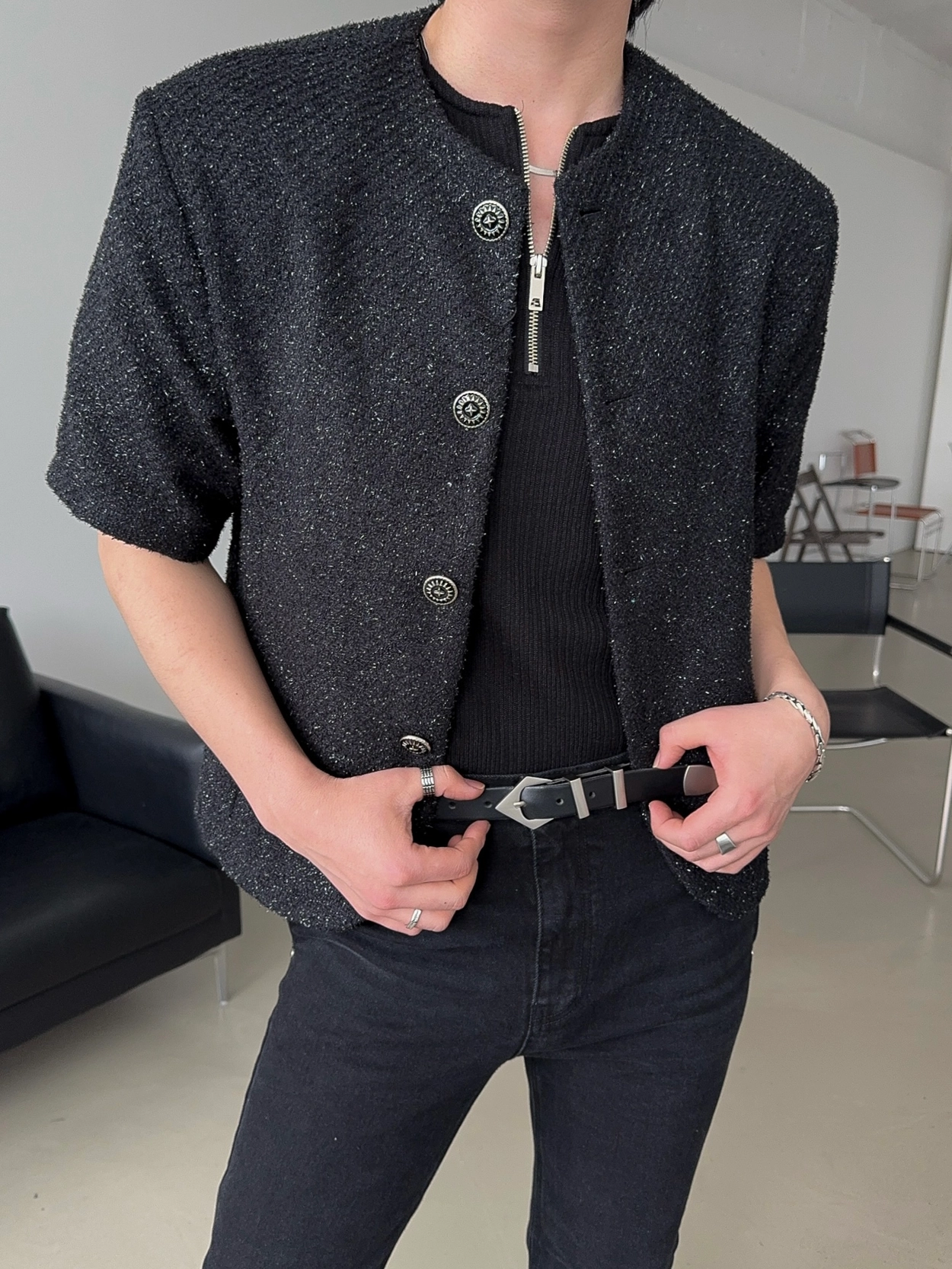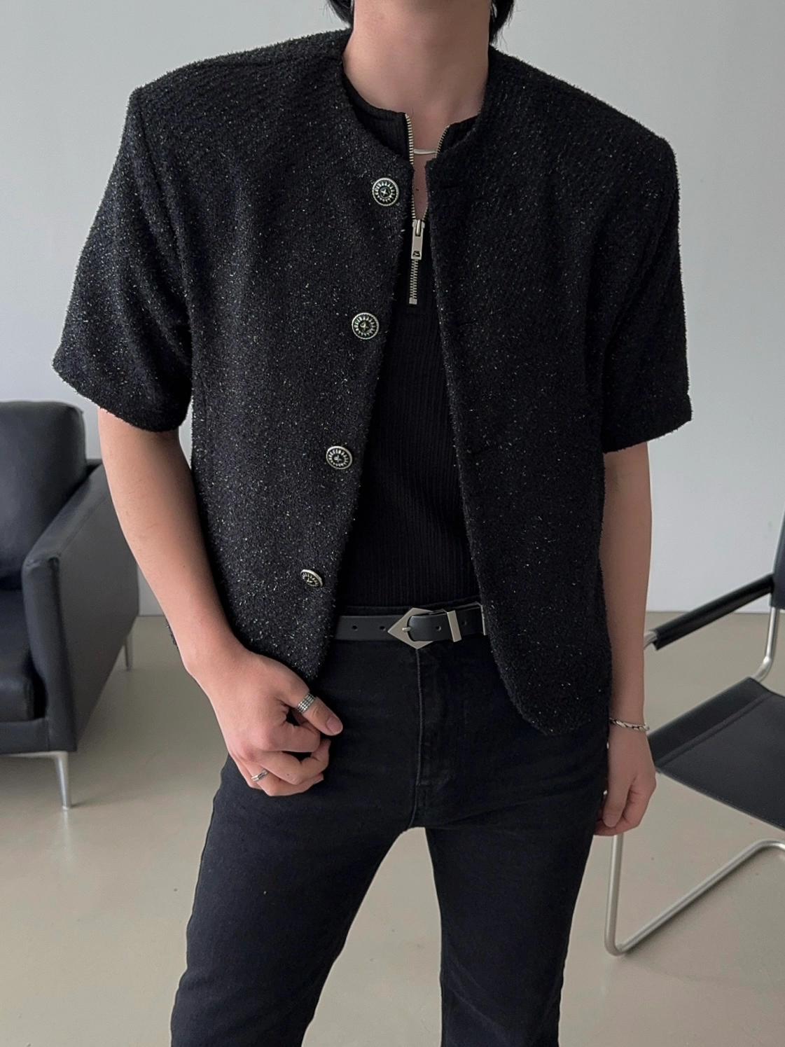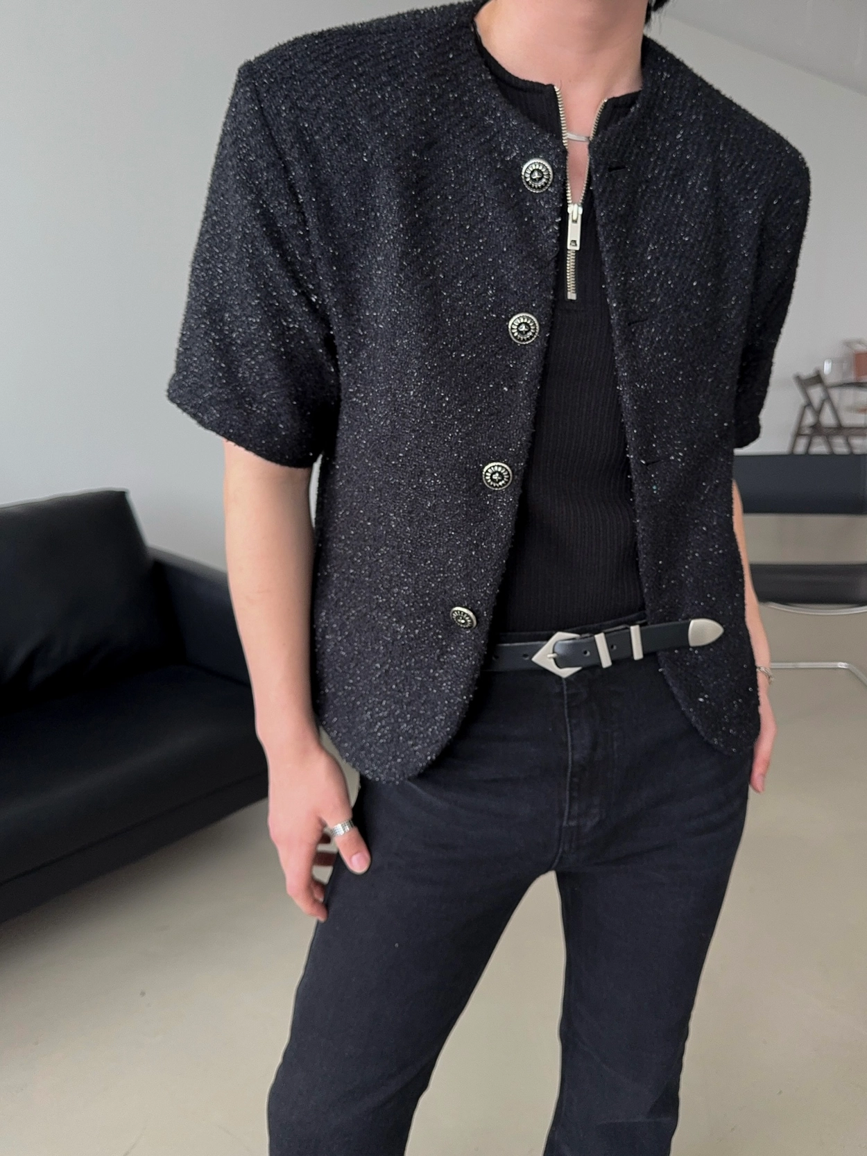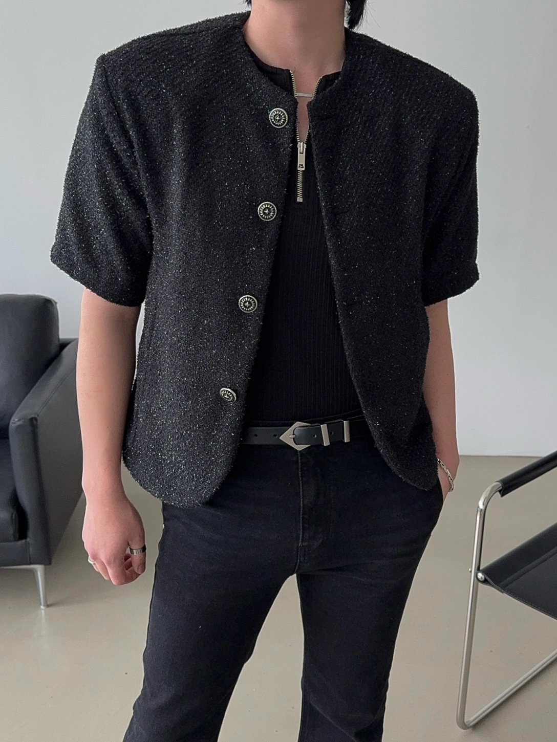 - 粗花呢短袖夾克,奢華質感與簡約設計完美結合
