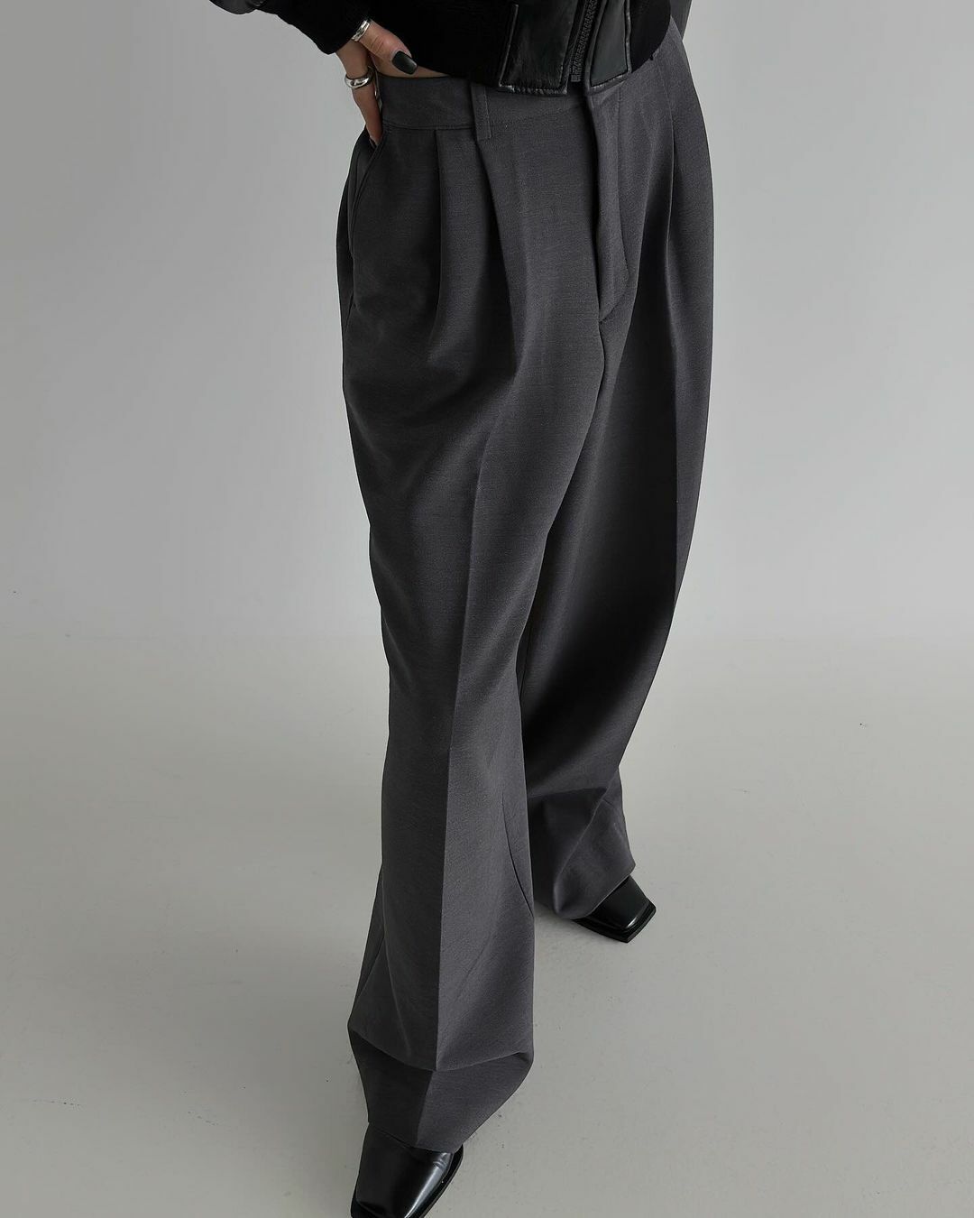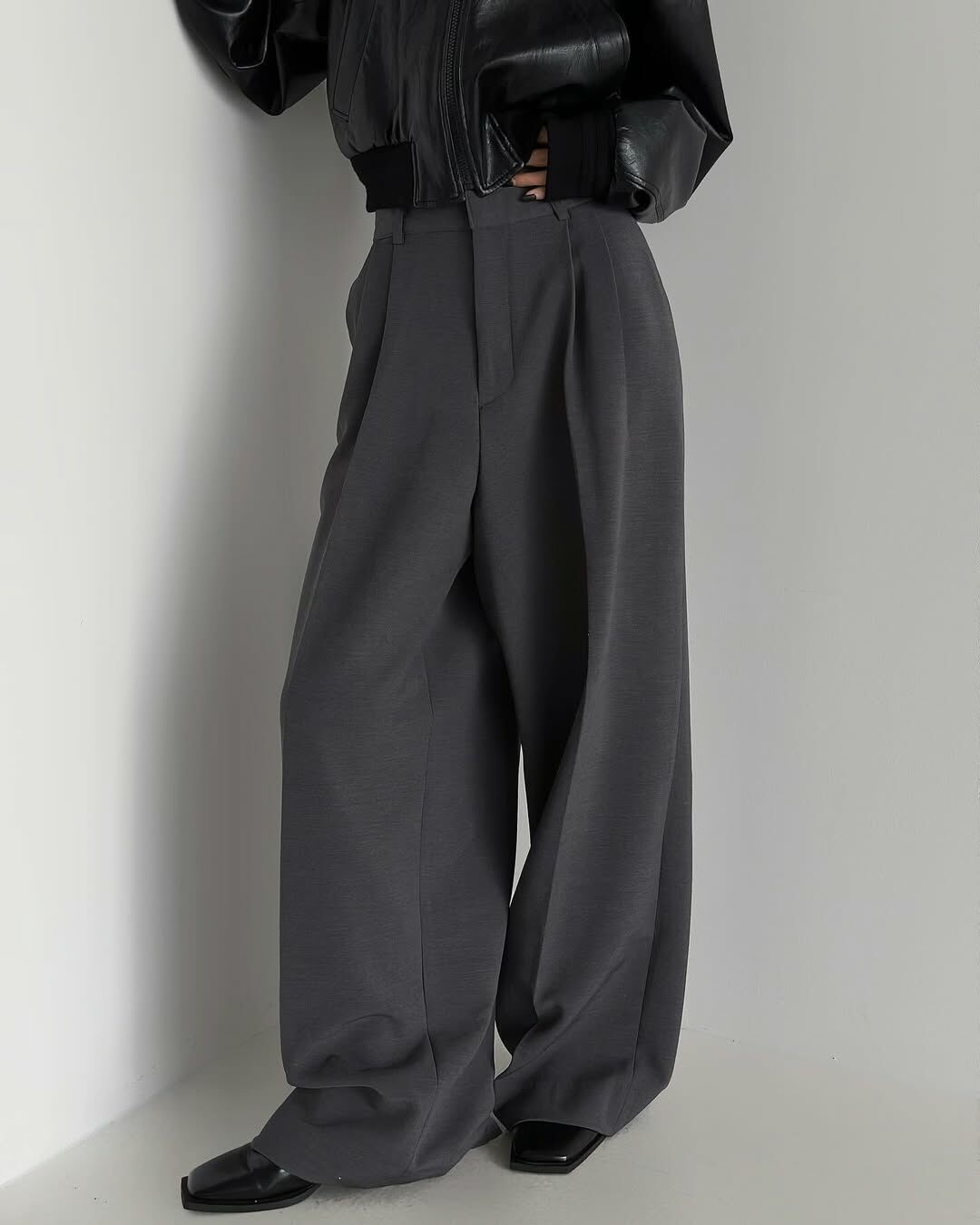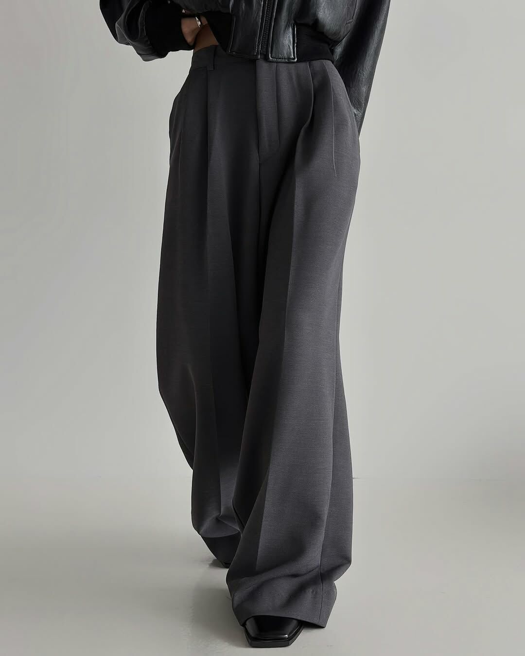 - 腰部別針褶皺不會讓廓形顯得雜亂