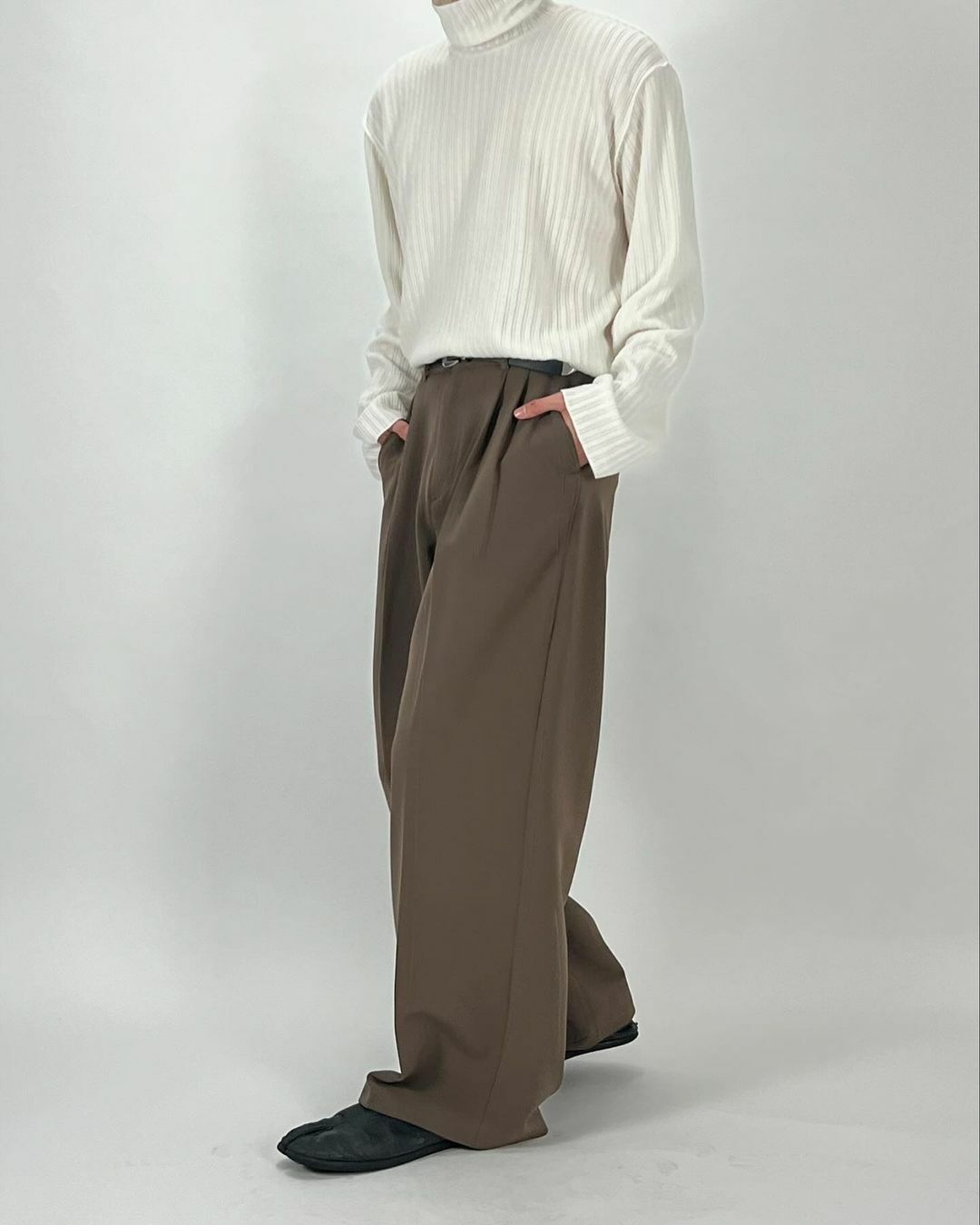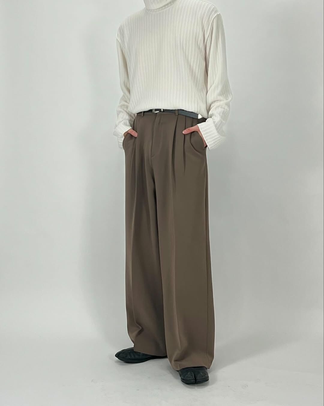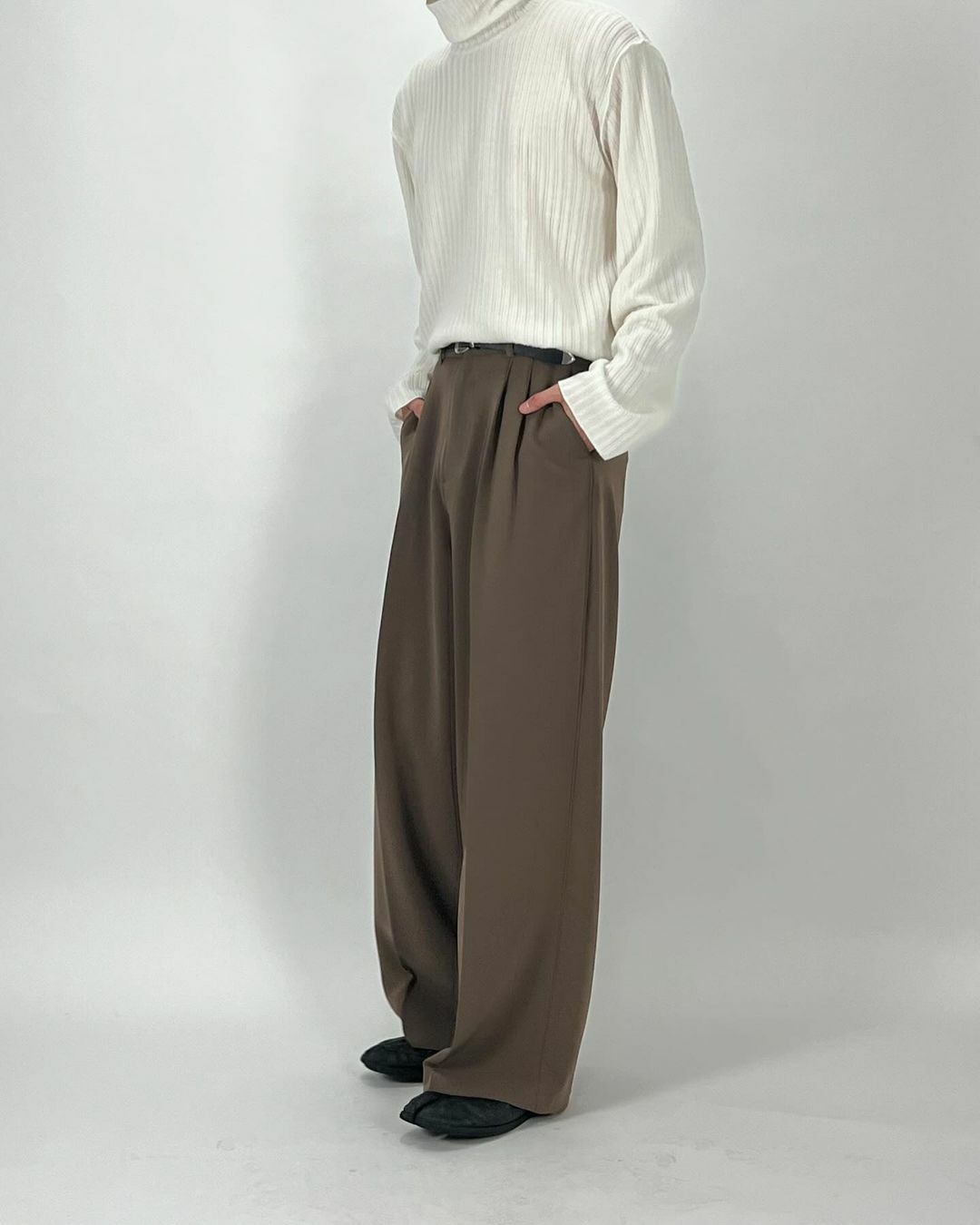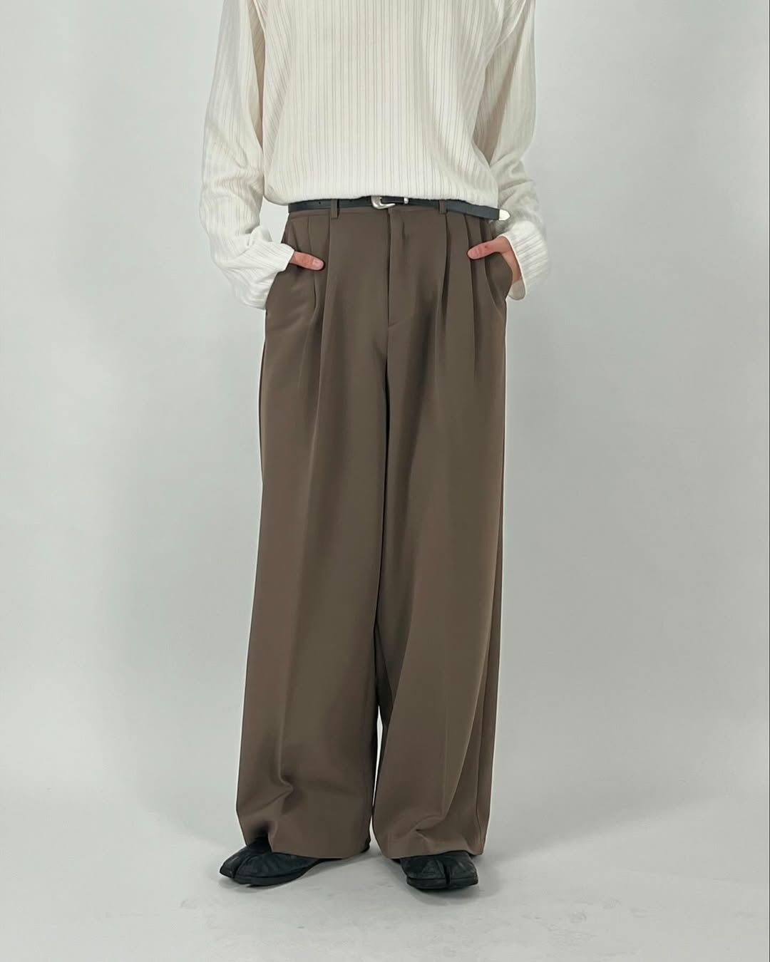 - 腰部別針褶皺不會讓廓形顯得雜亂