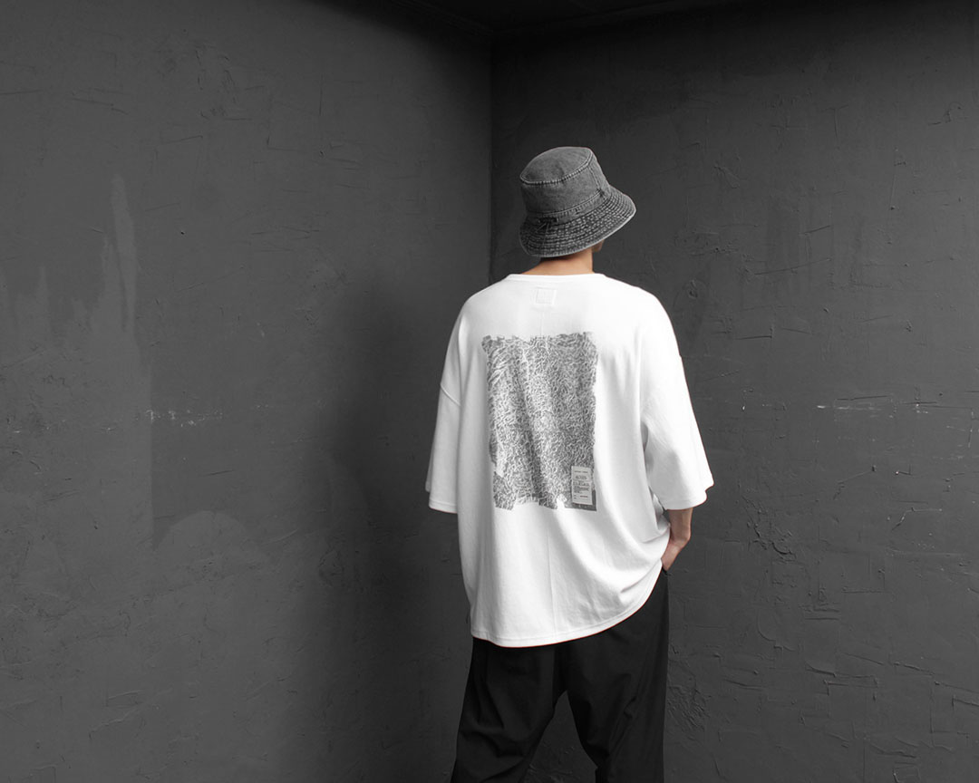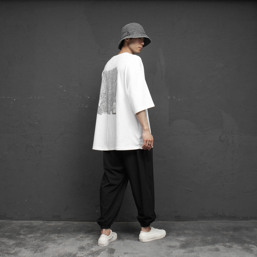 這是一件寬鬆的短袖T卹,充滿時尚街頭的感覺。這件時尚寬鬆的服裝