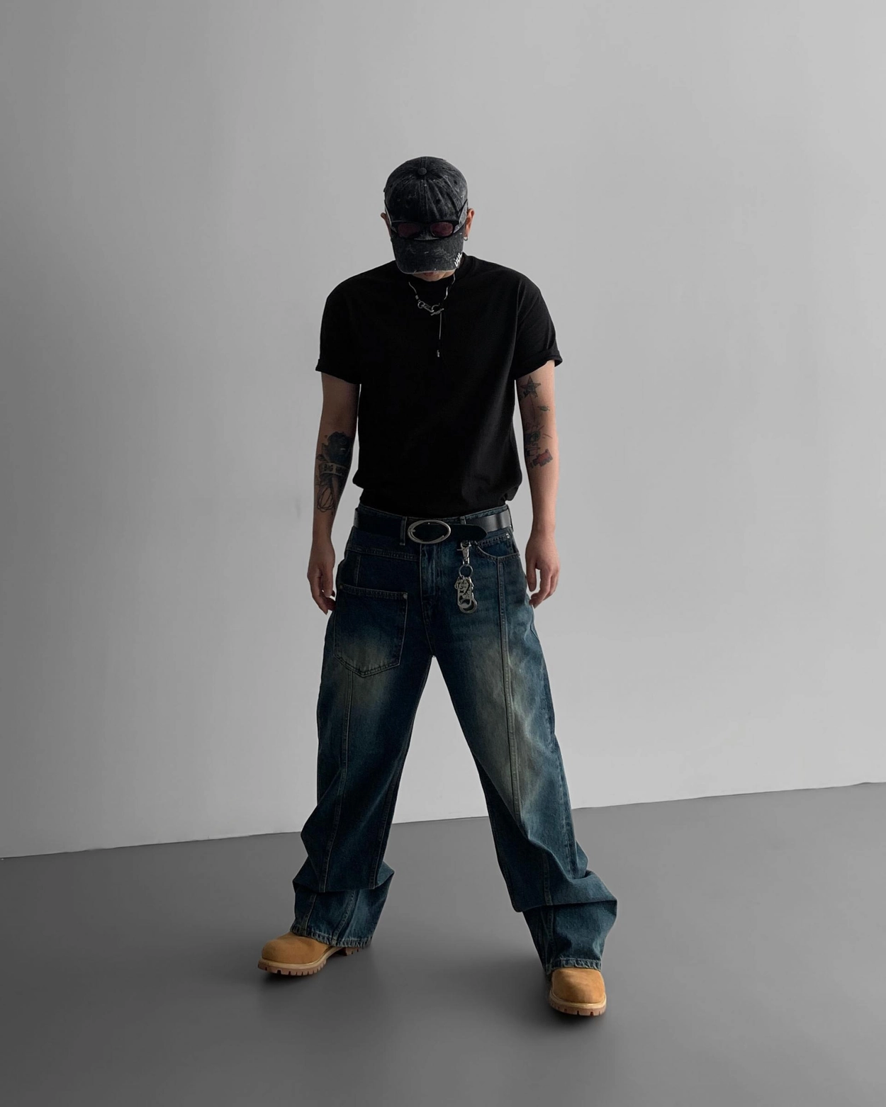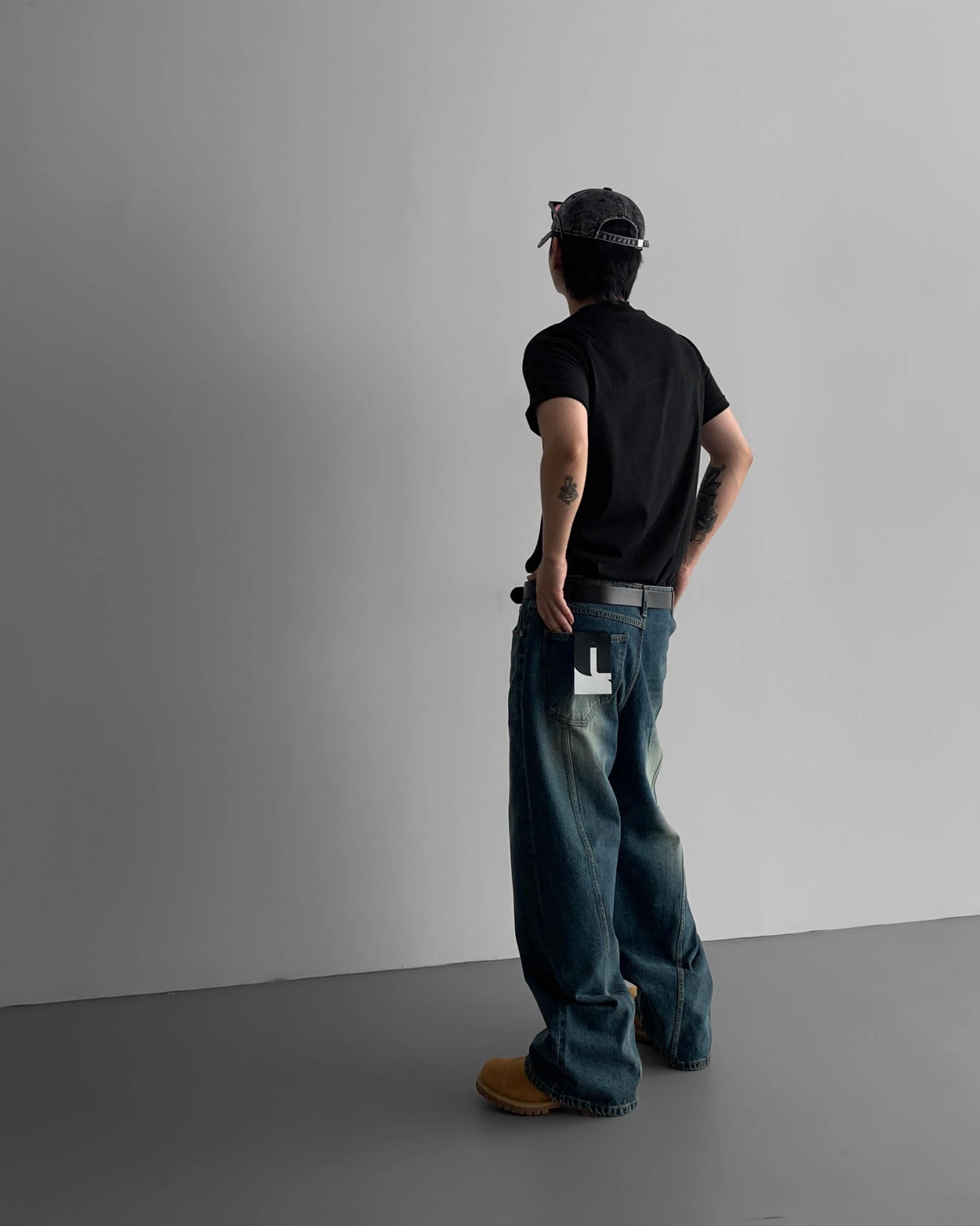 - 當模特兒穿著 L 號時,會形成半寬版型