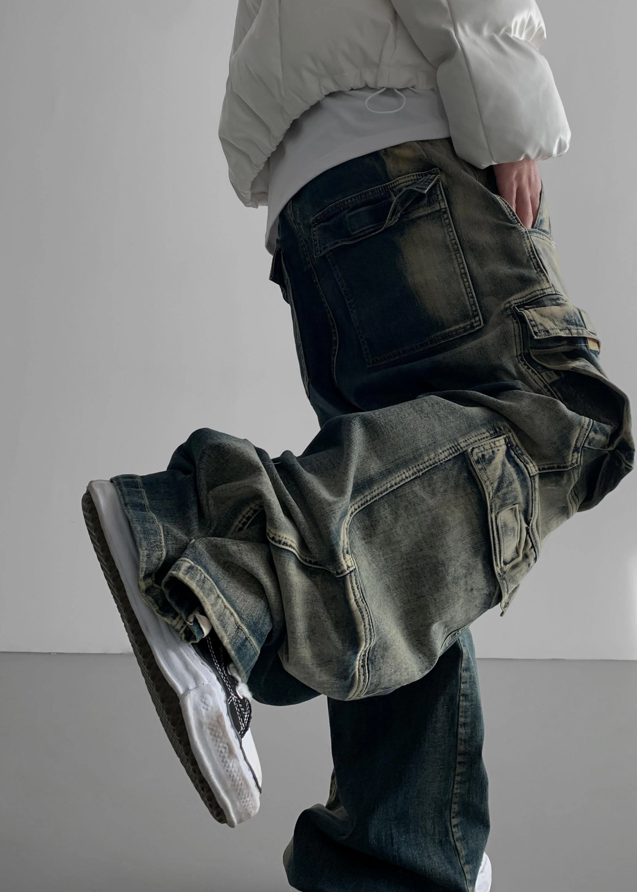 - 獨特的黃色水洗細節