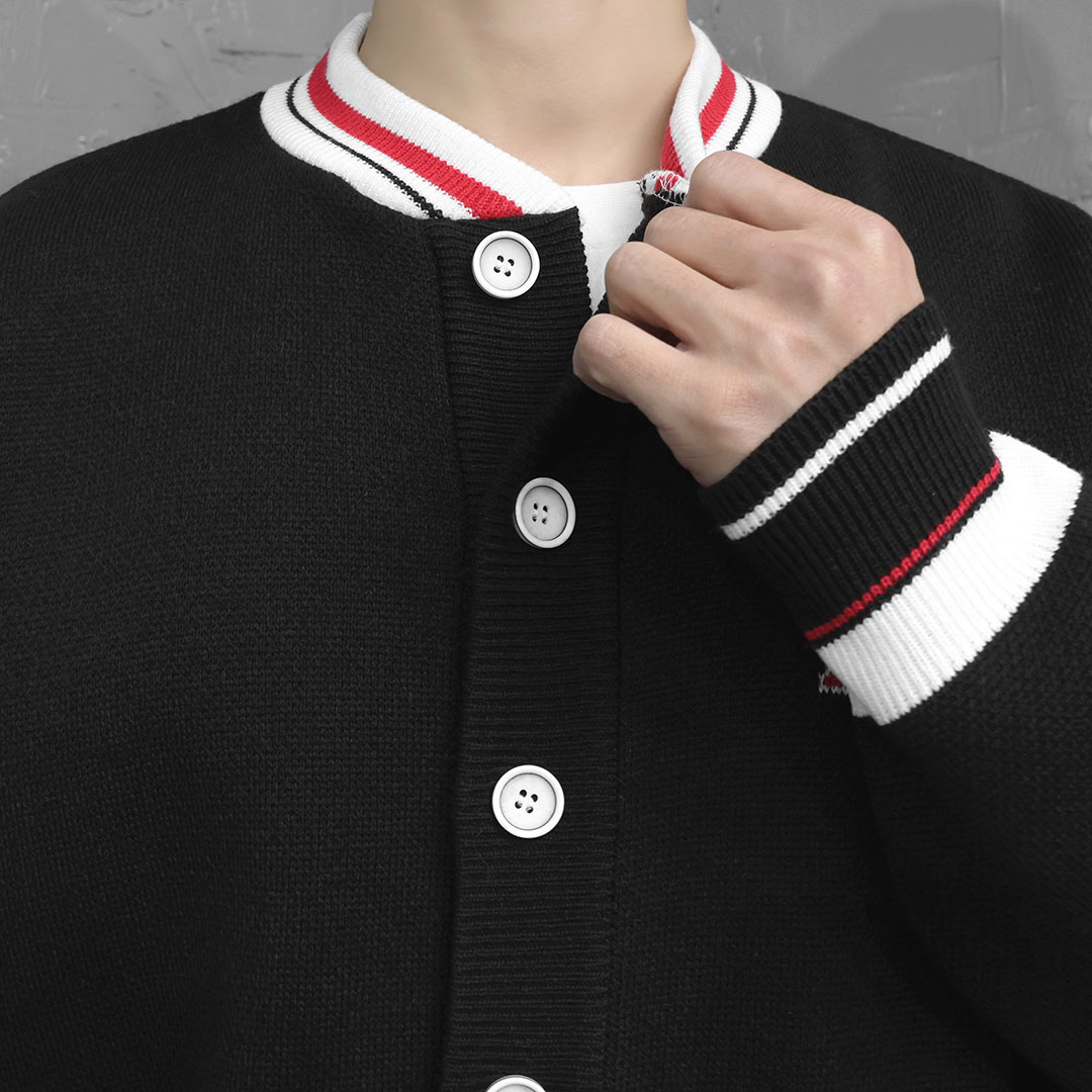⚾ 經典學院風細節:領口、袖口和下擺採用撞色條紋羅紋設計,打造清新運動風造型。