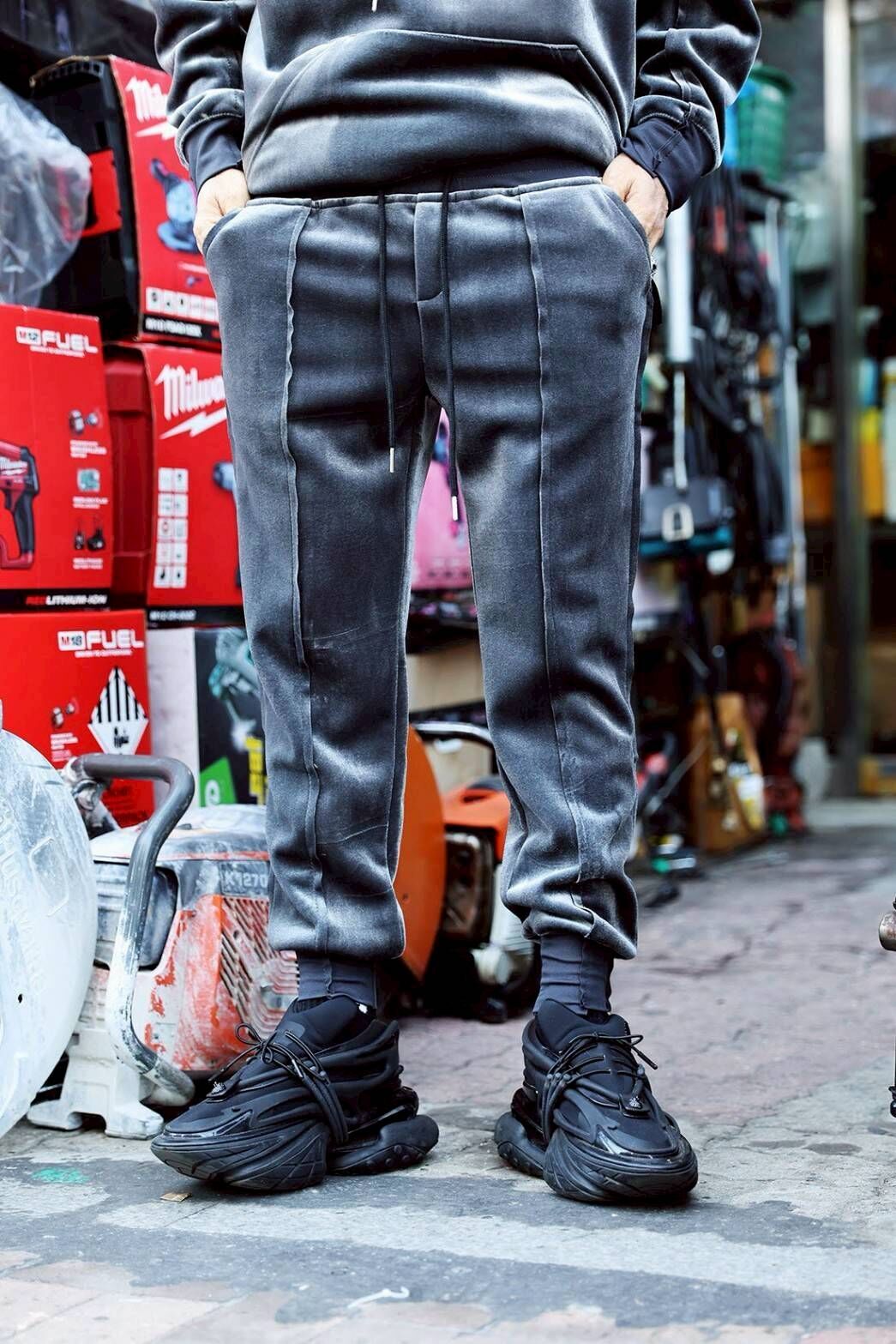 Model:178/75;帽T 2號 / 長褲 2號 Size、169/58;帽T 1號 / 長褲 1號 Size