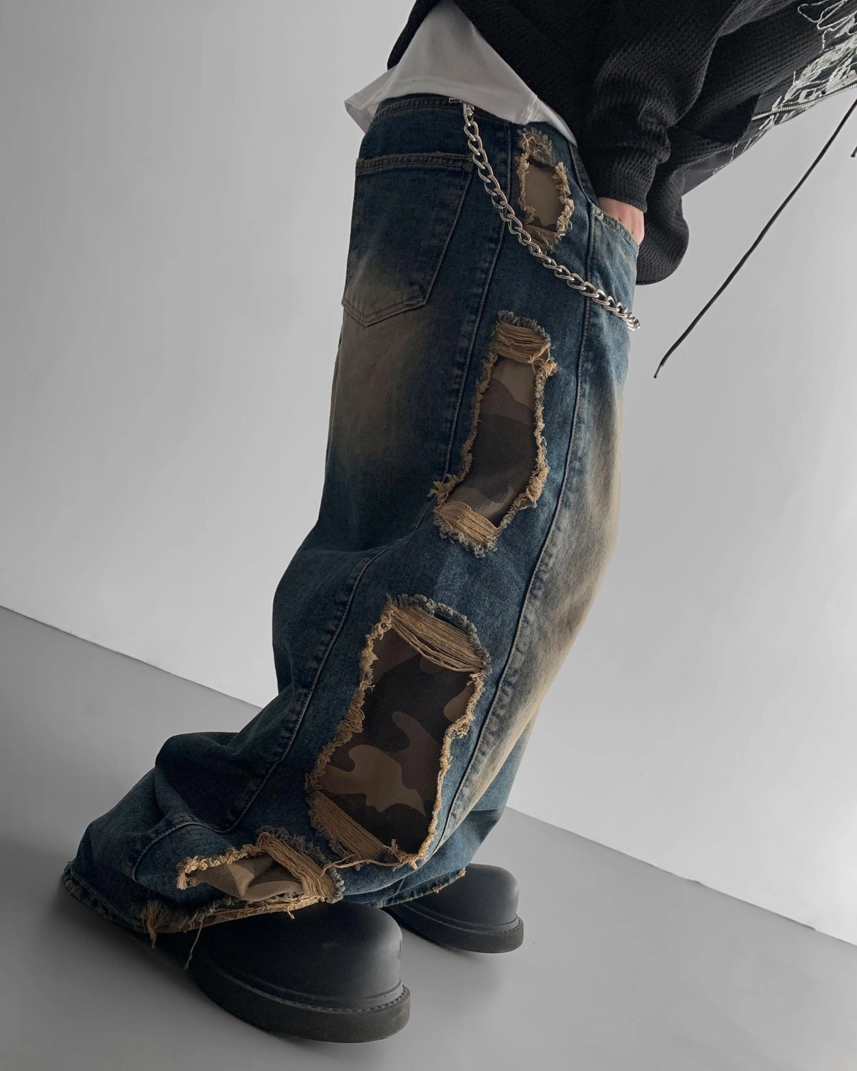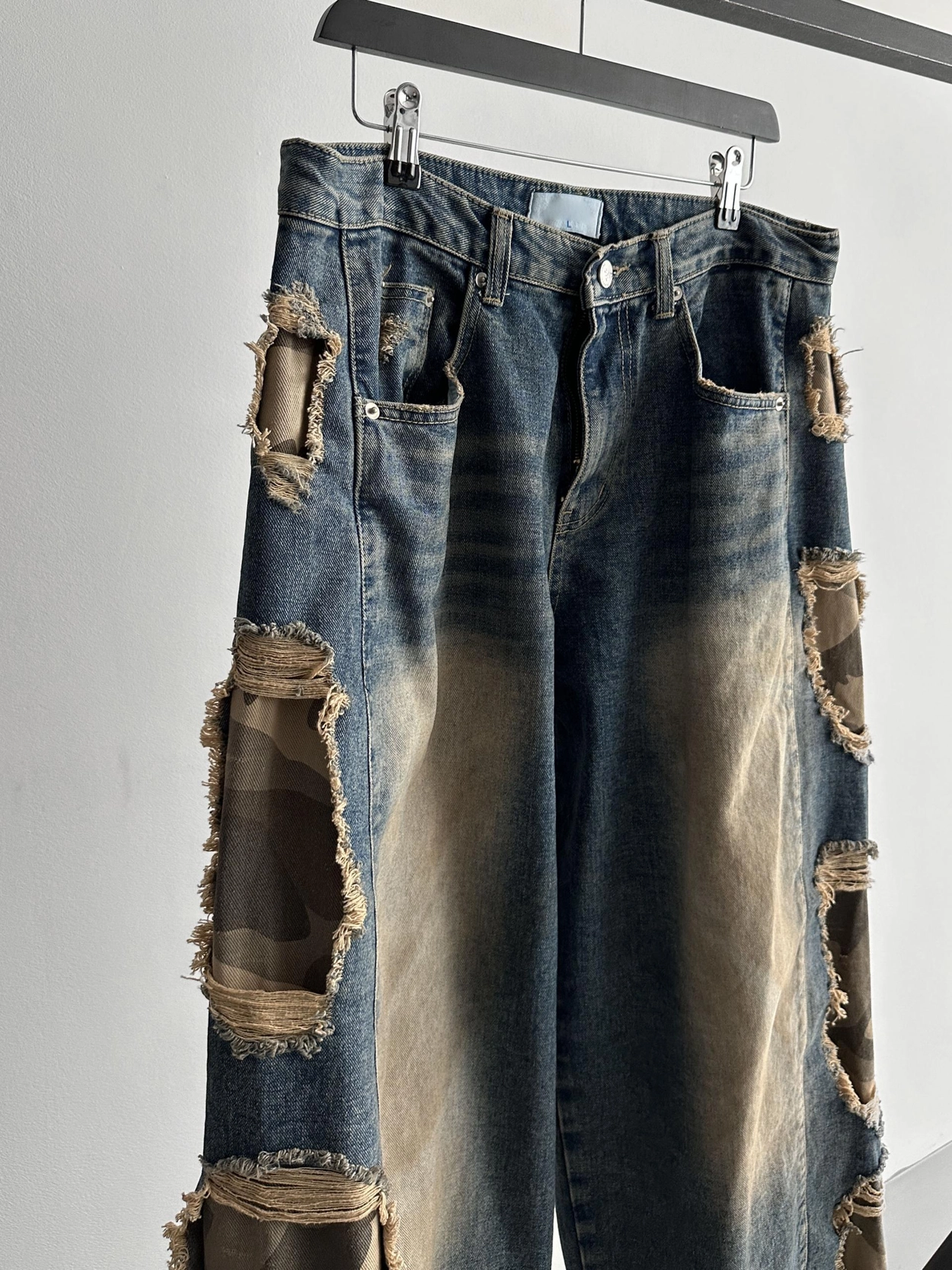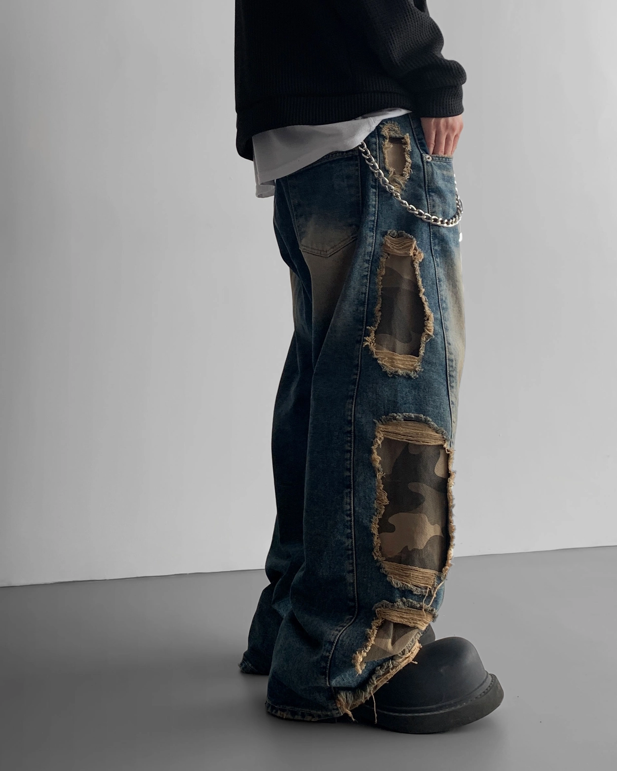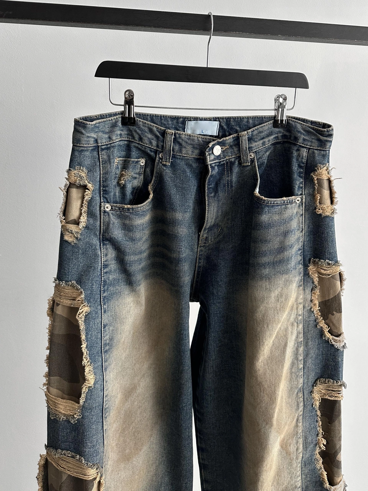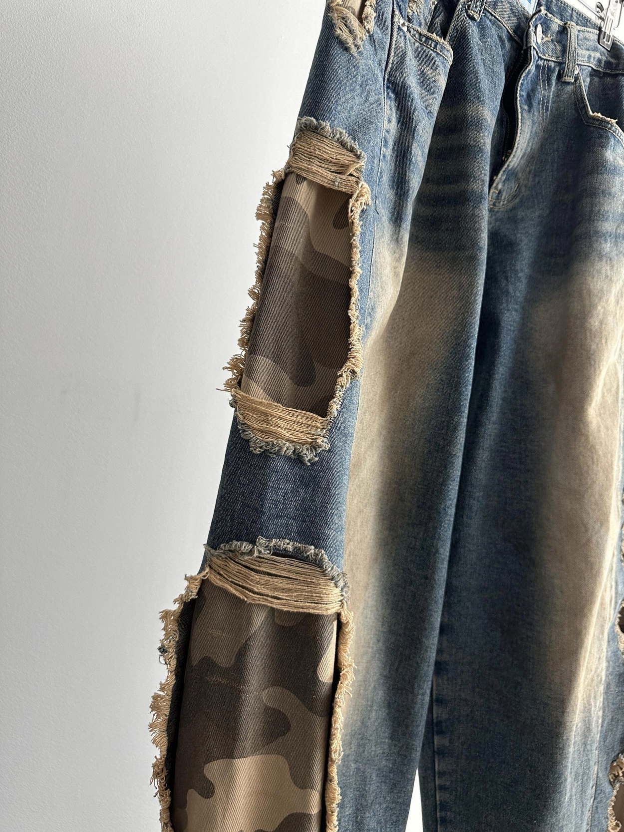 - 側面顯示牛仔的迷彩分層細節