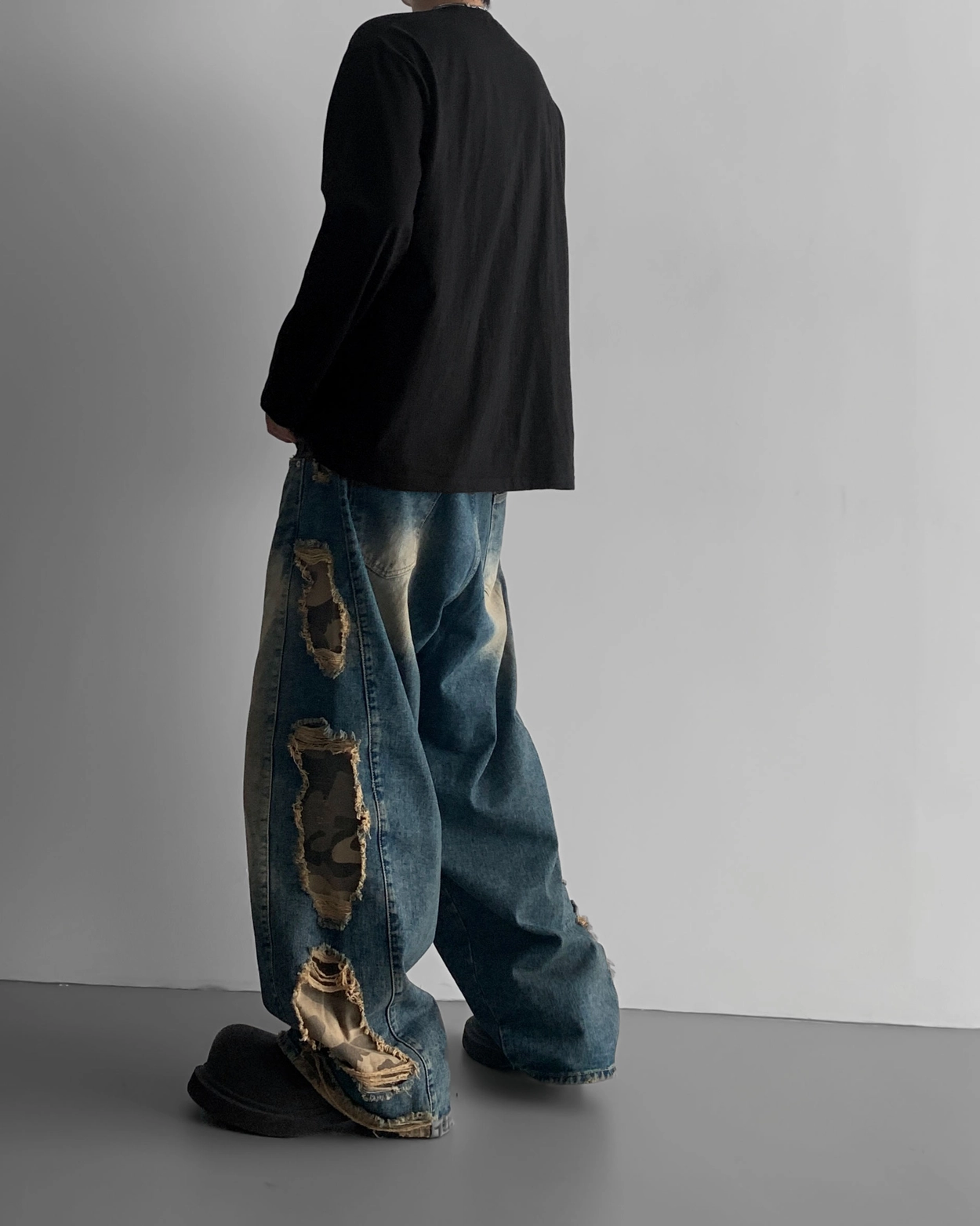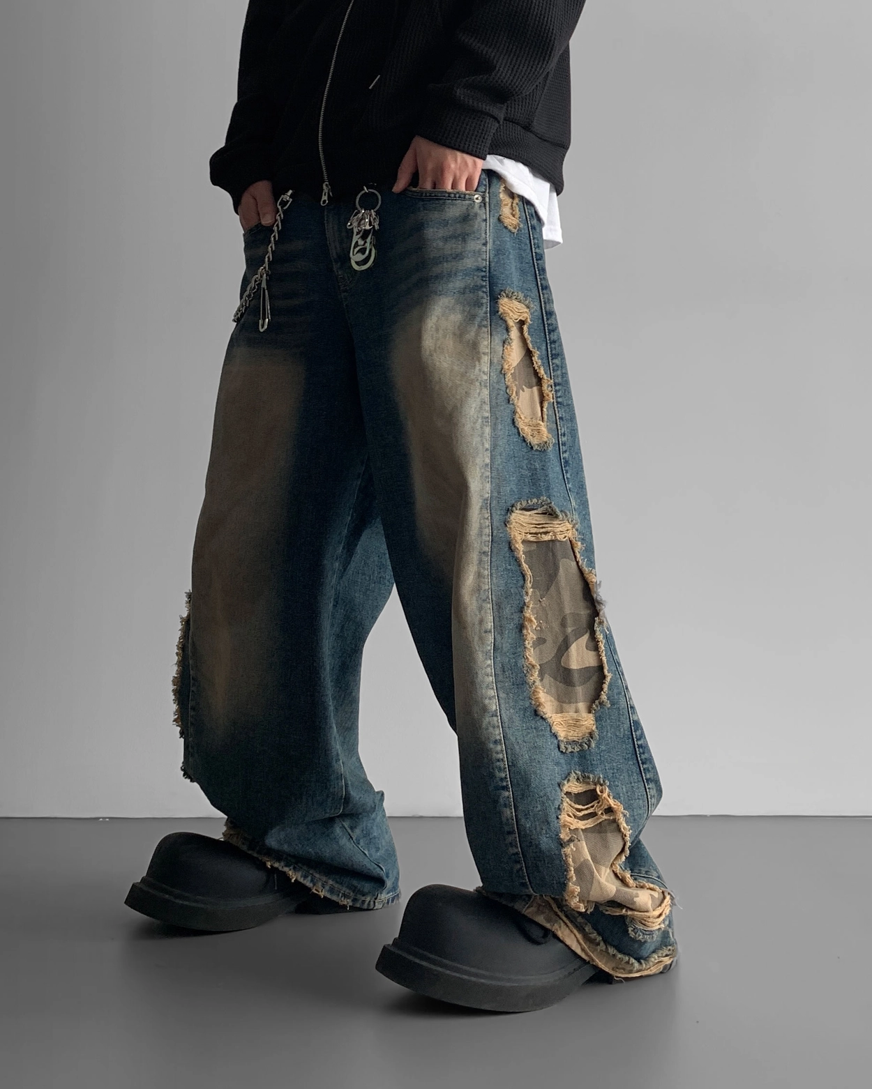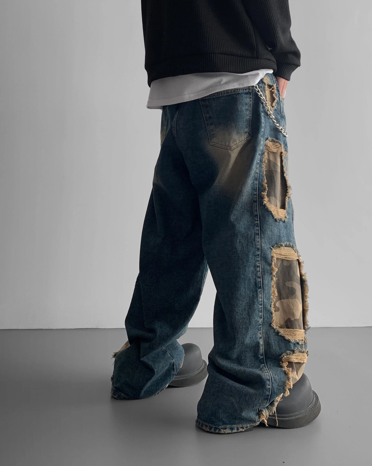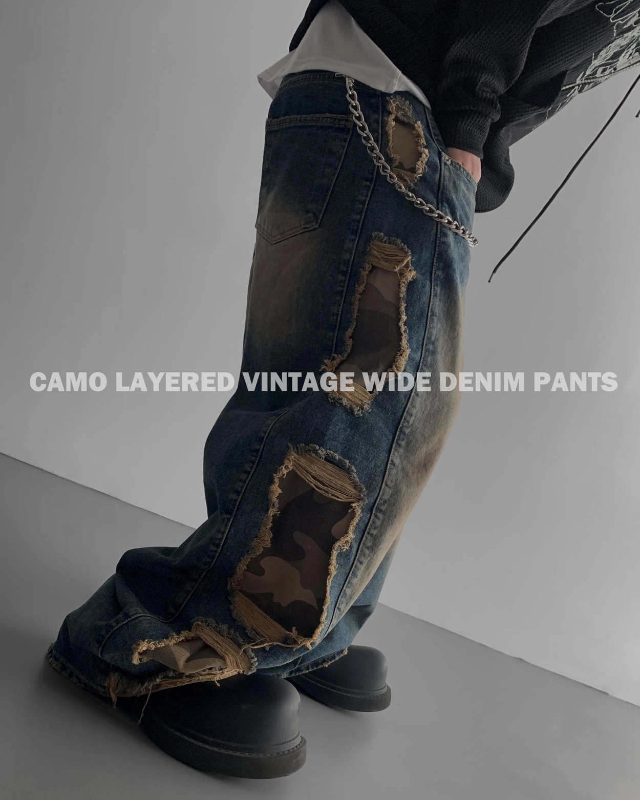 - 側面顯示牛仔的迷彩分層細節