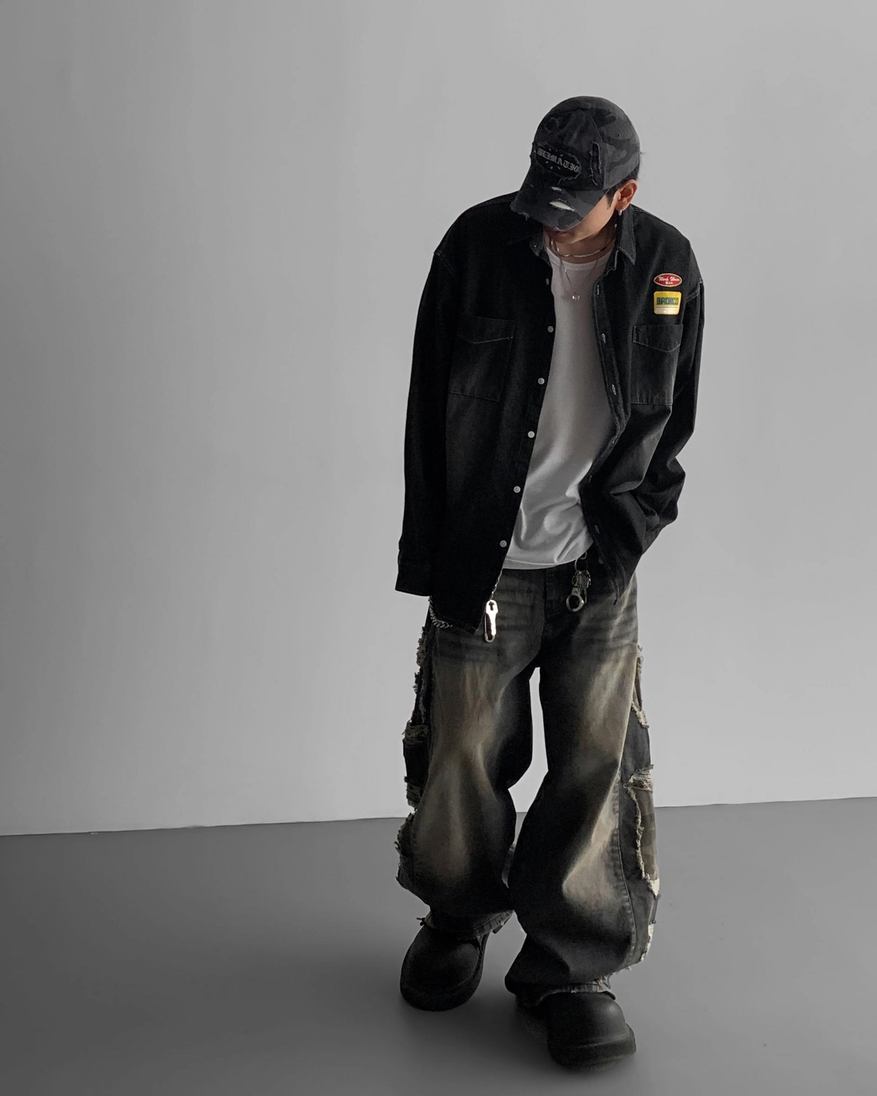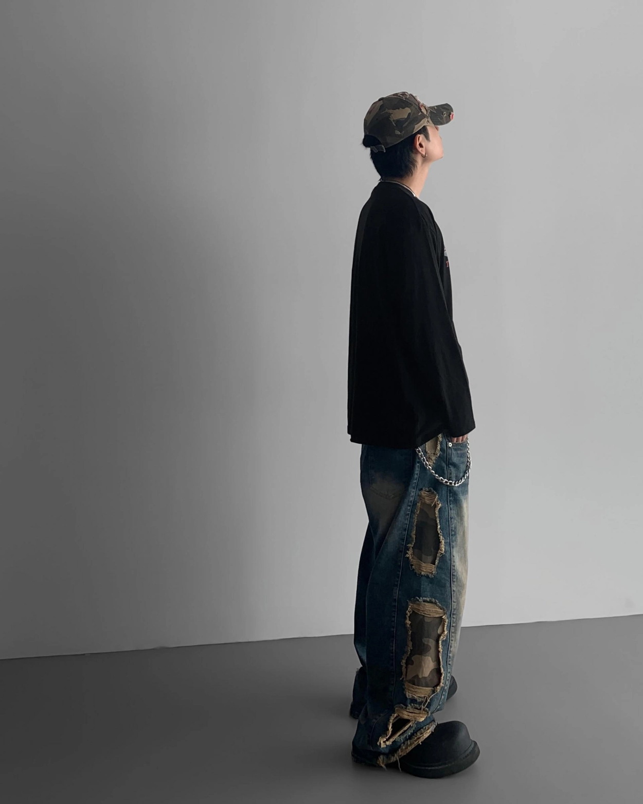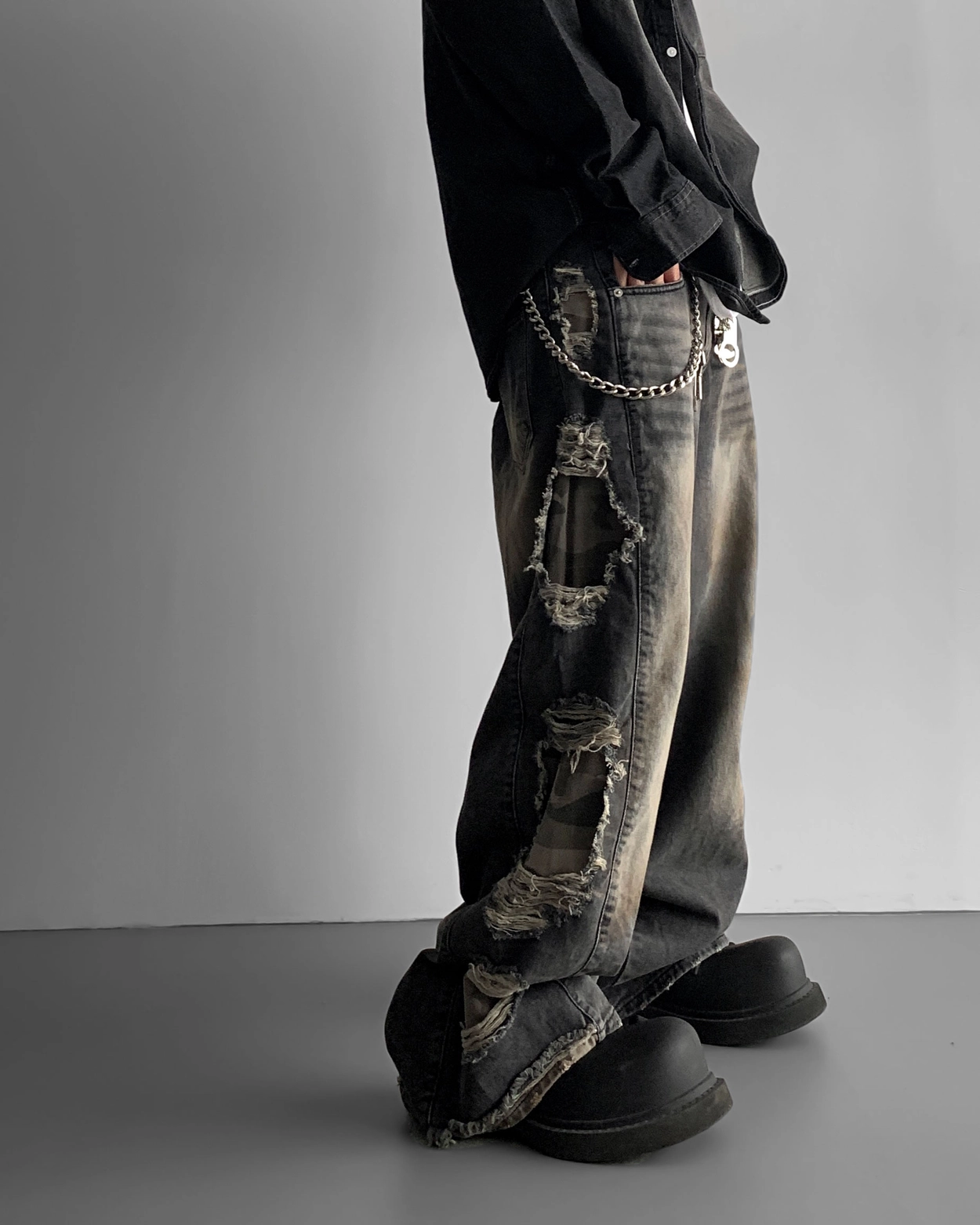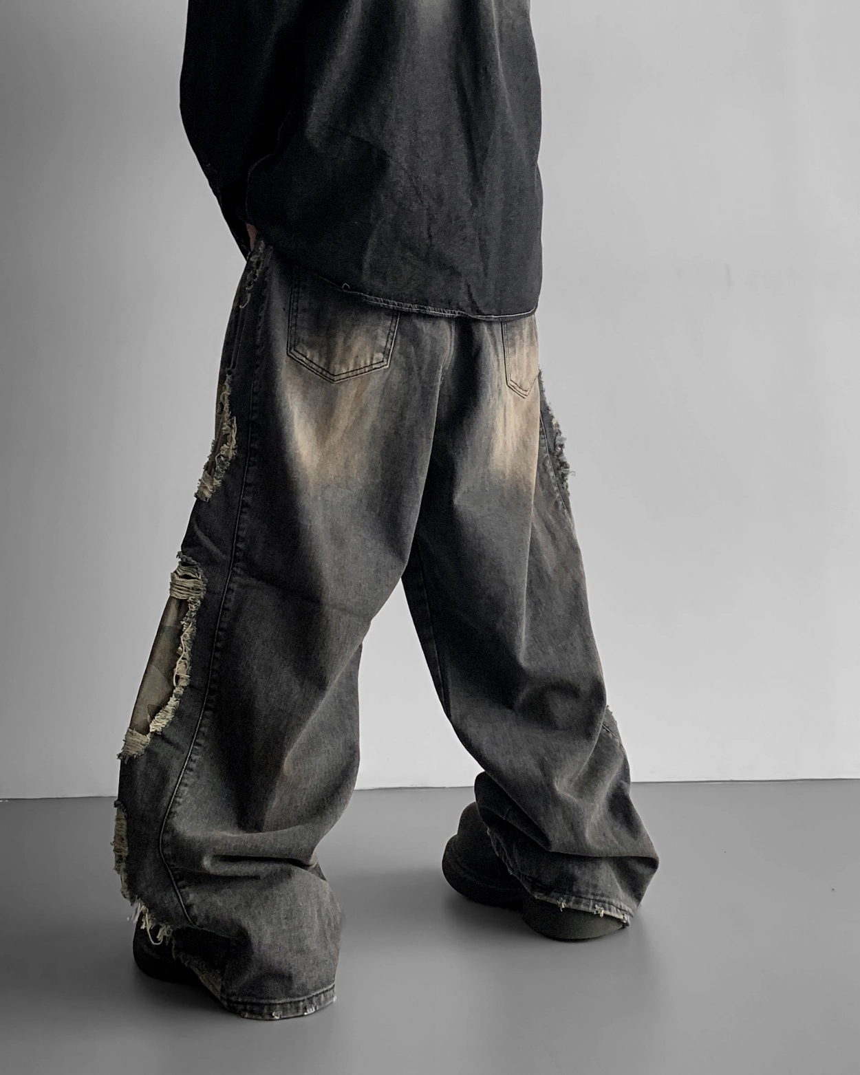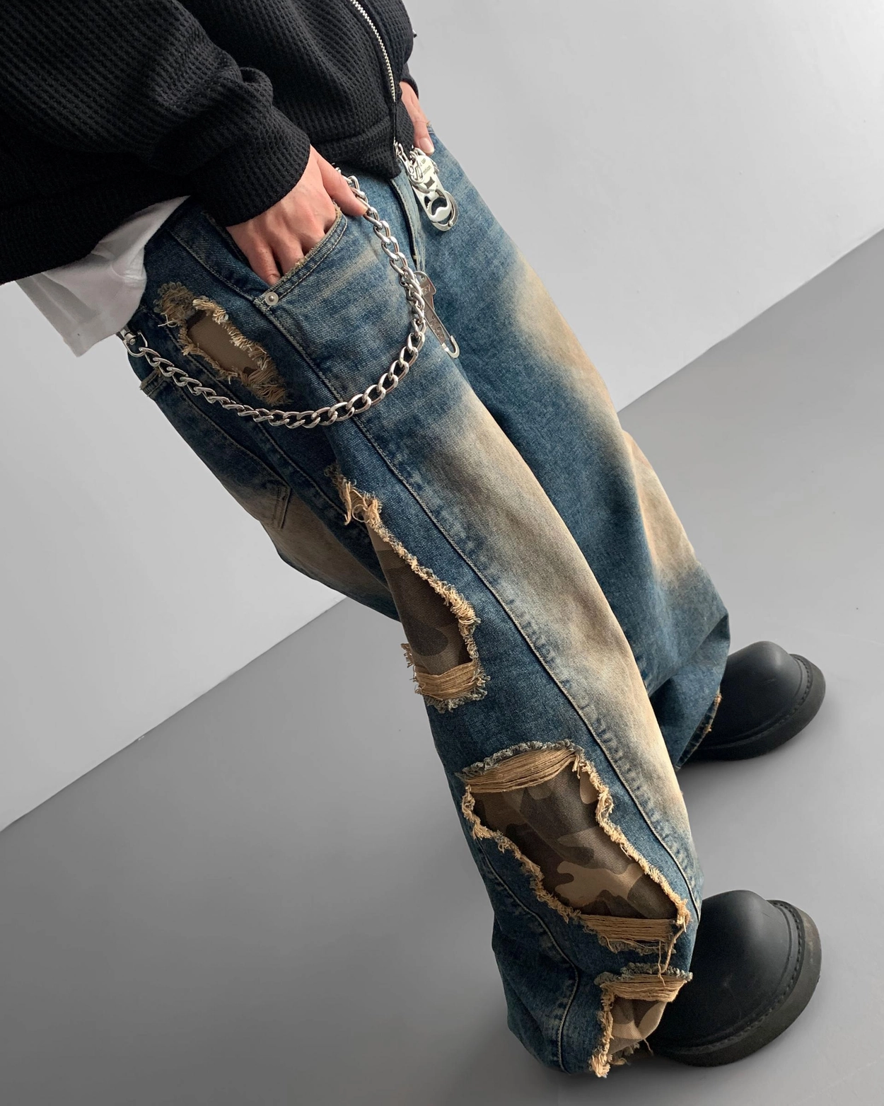 - 側面顯示牛仔的迷彩分層細節