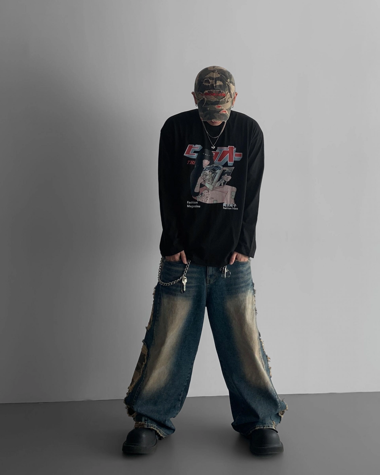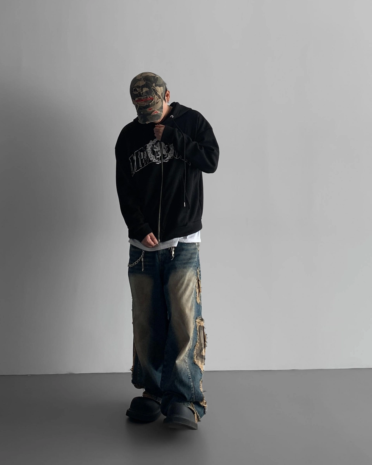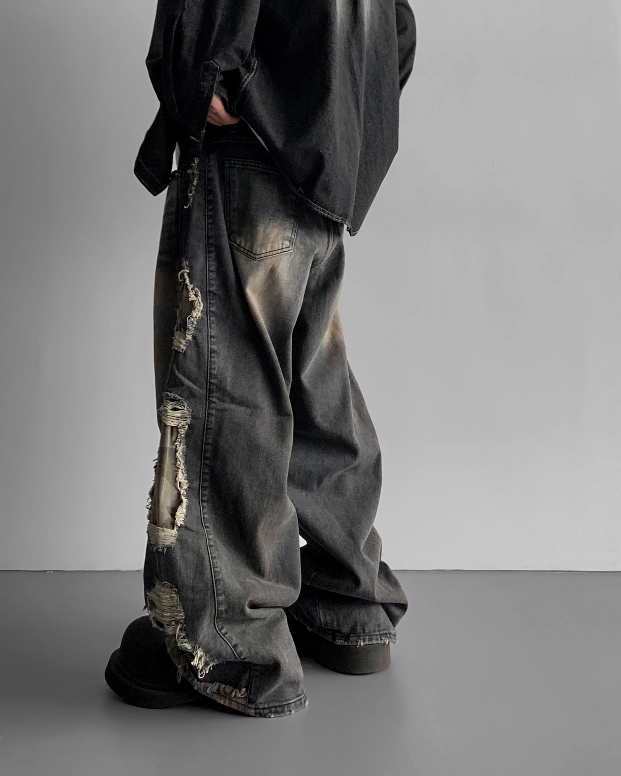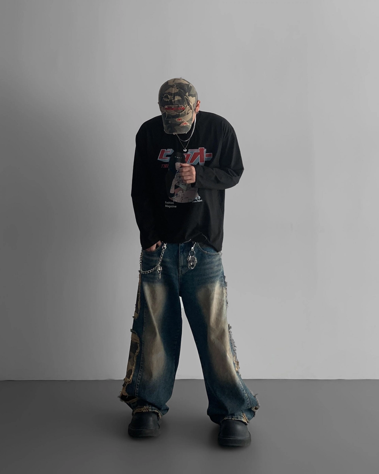 - 側面顯示牛仔的迷彩分層細節
