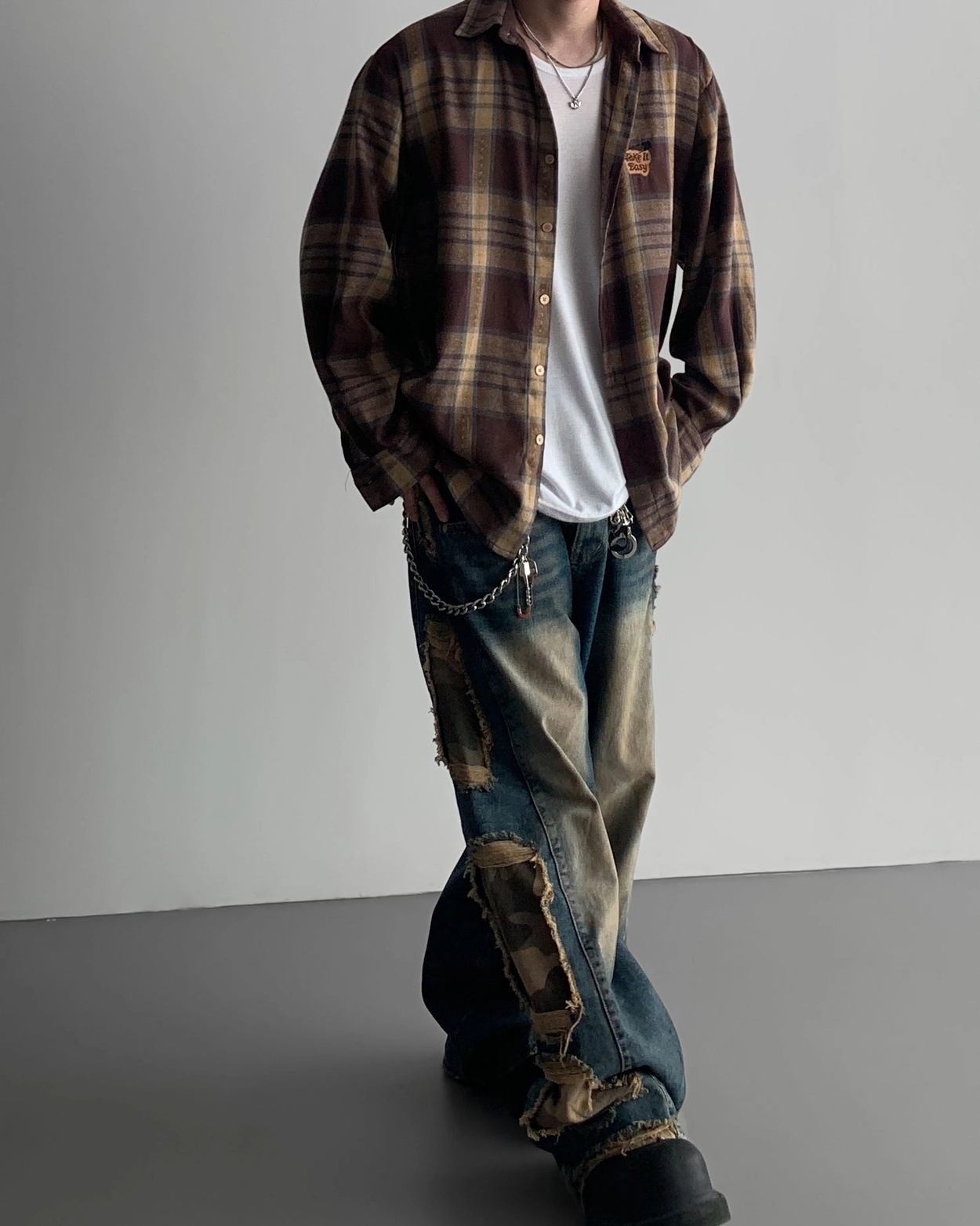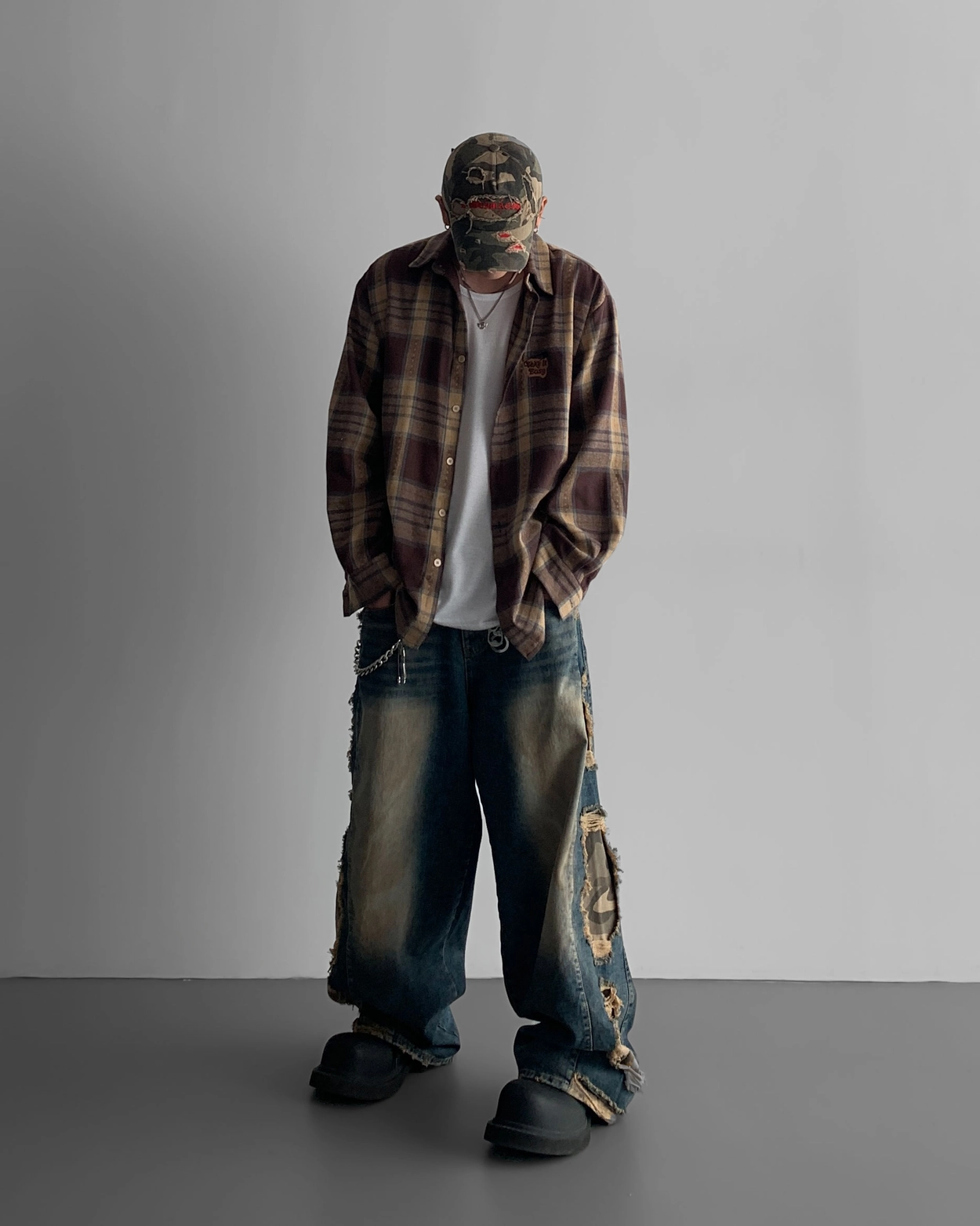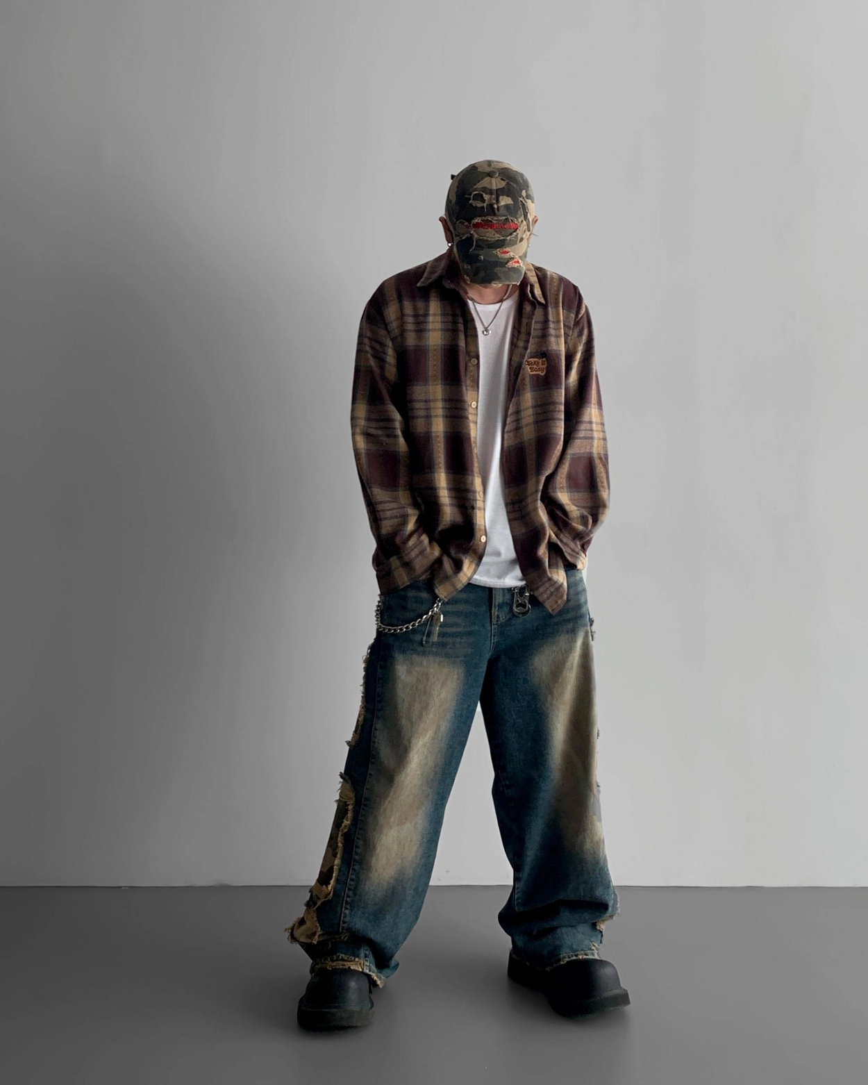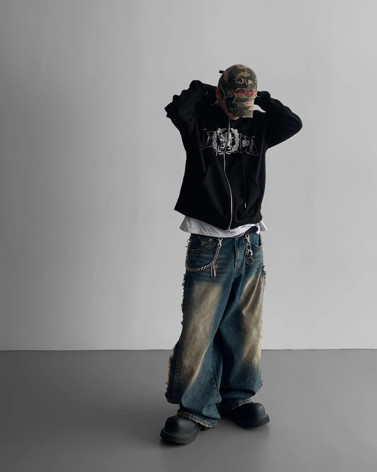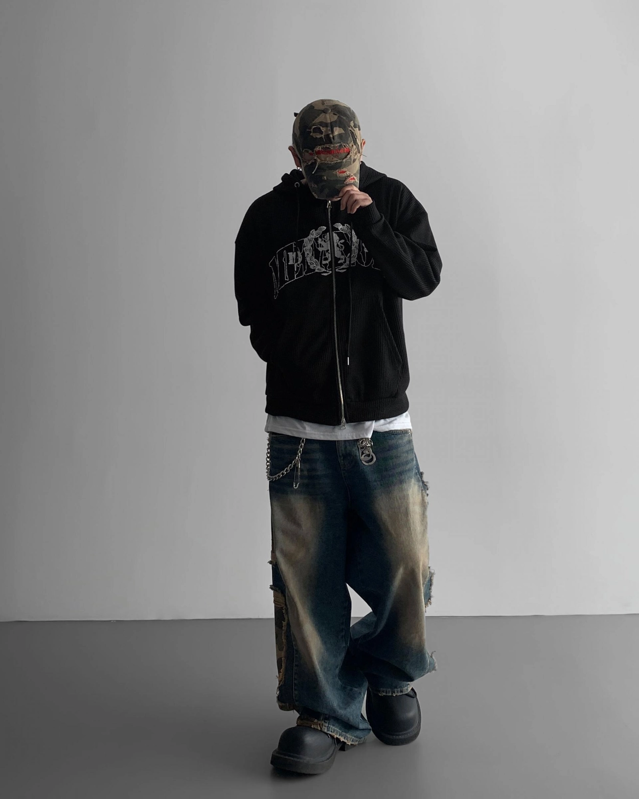 - 側面顯示牛仔的迷彩分層細節