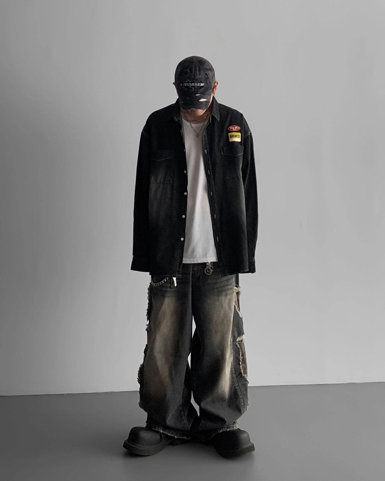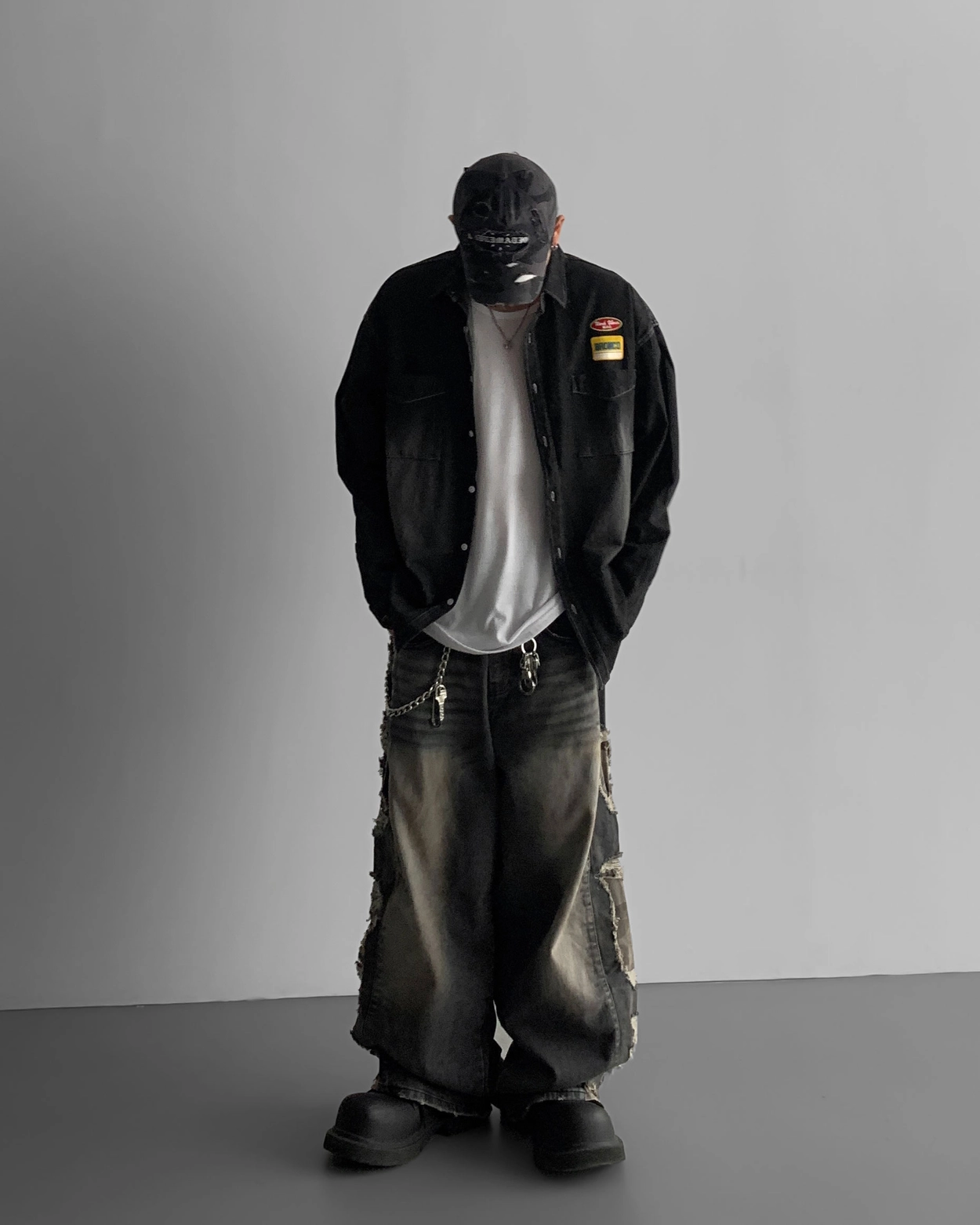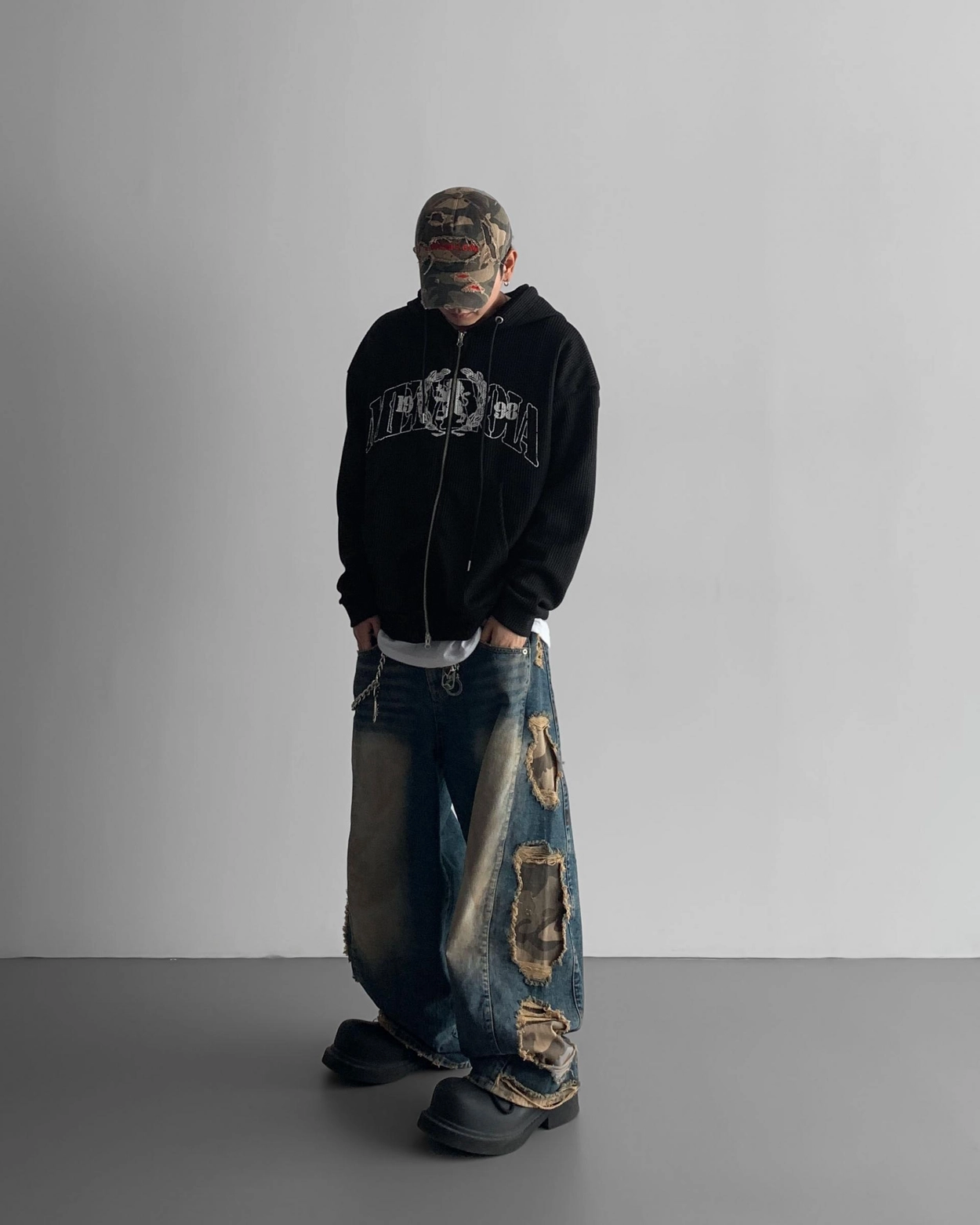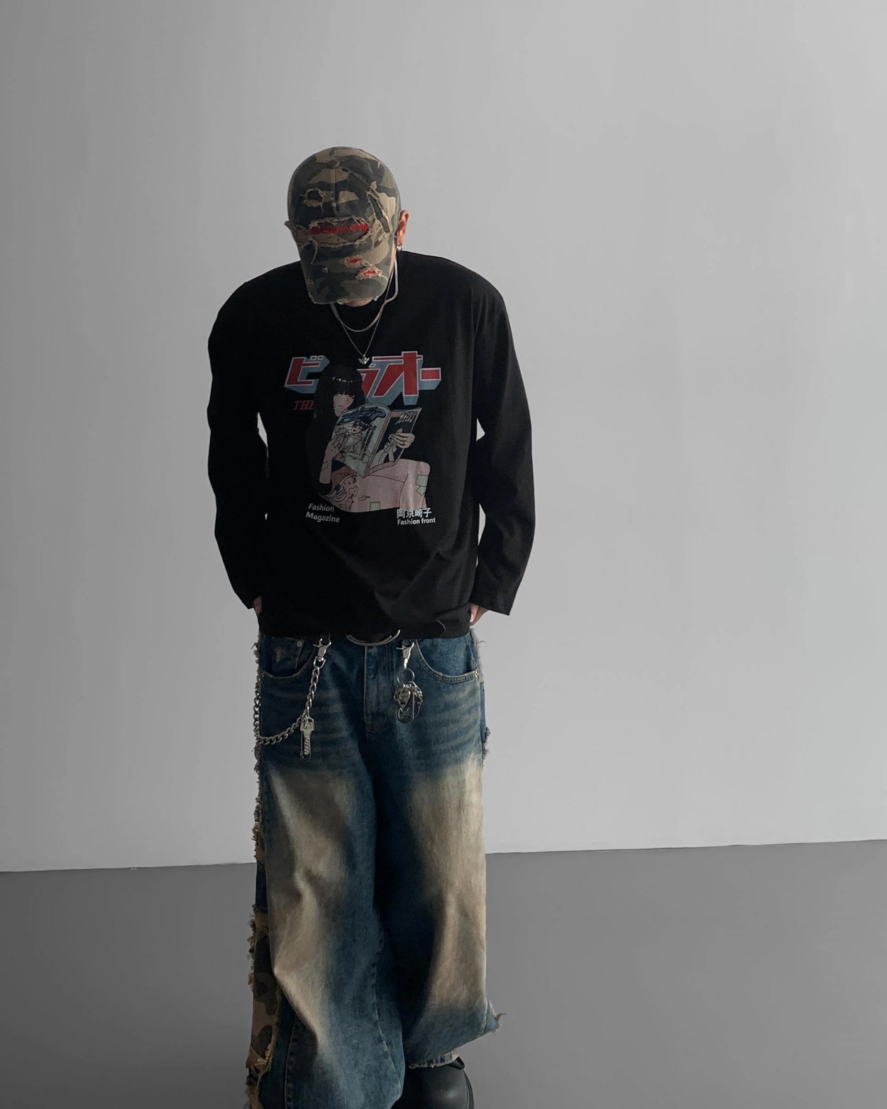 - 側面顯示牛仔的迷彩分層細節
