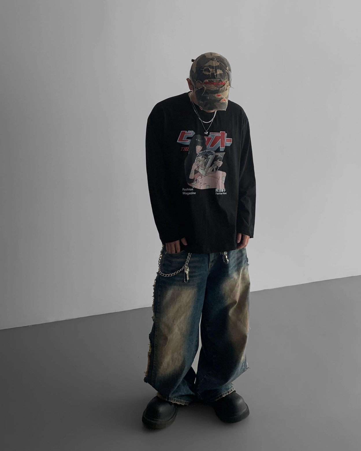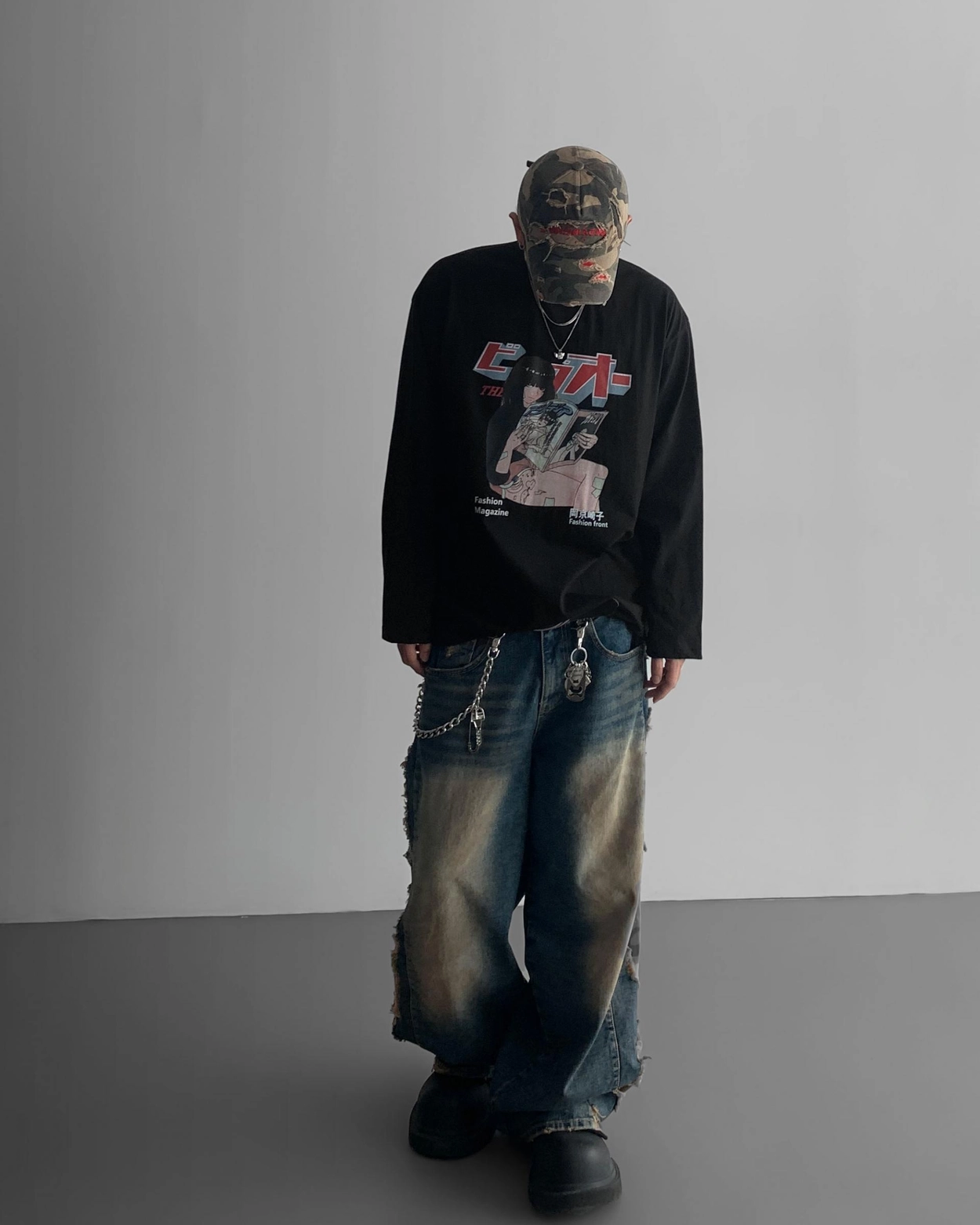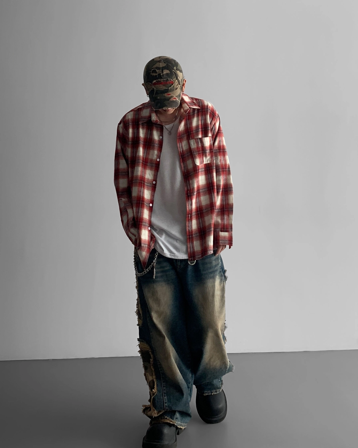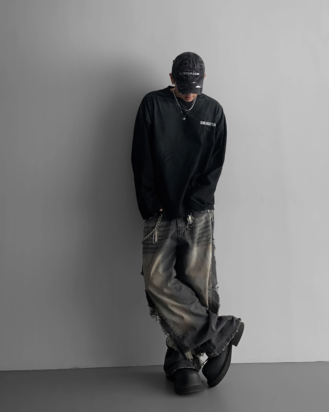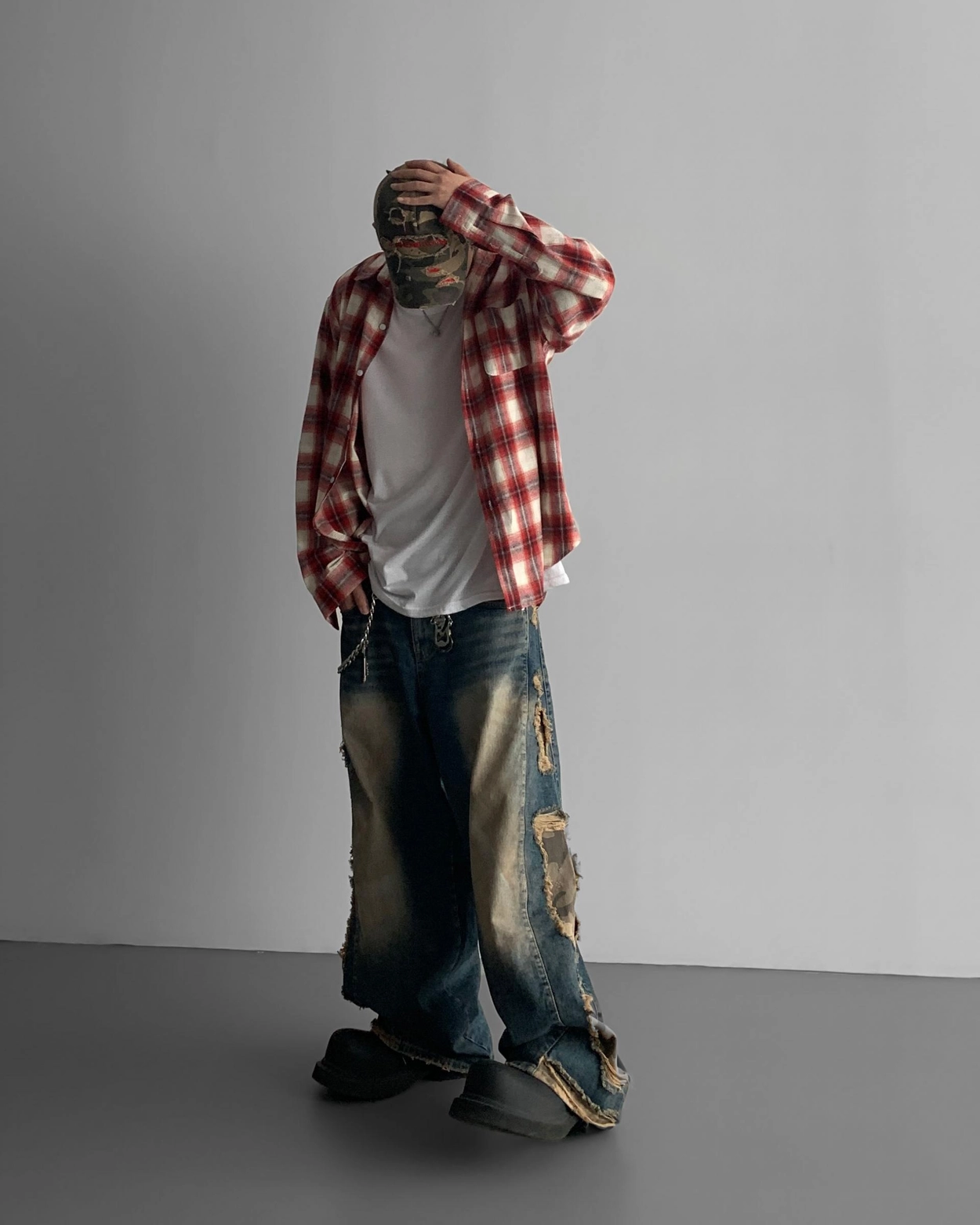 - 側面顯示牛仔的迷彩分層細節