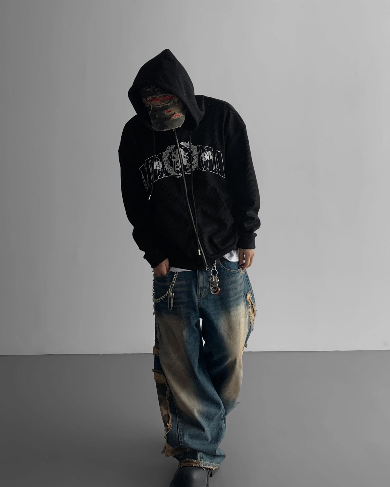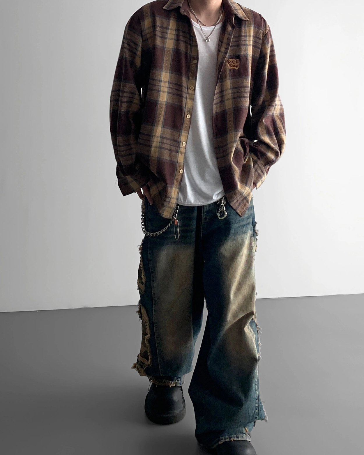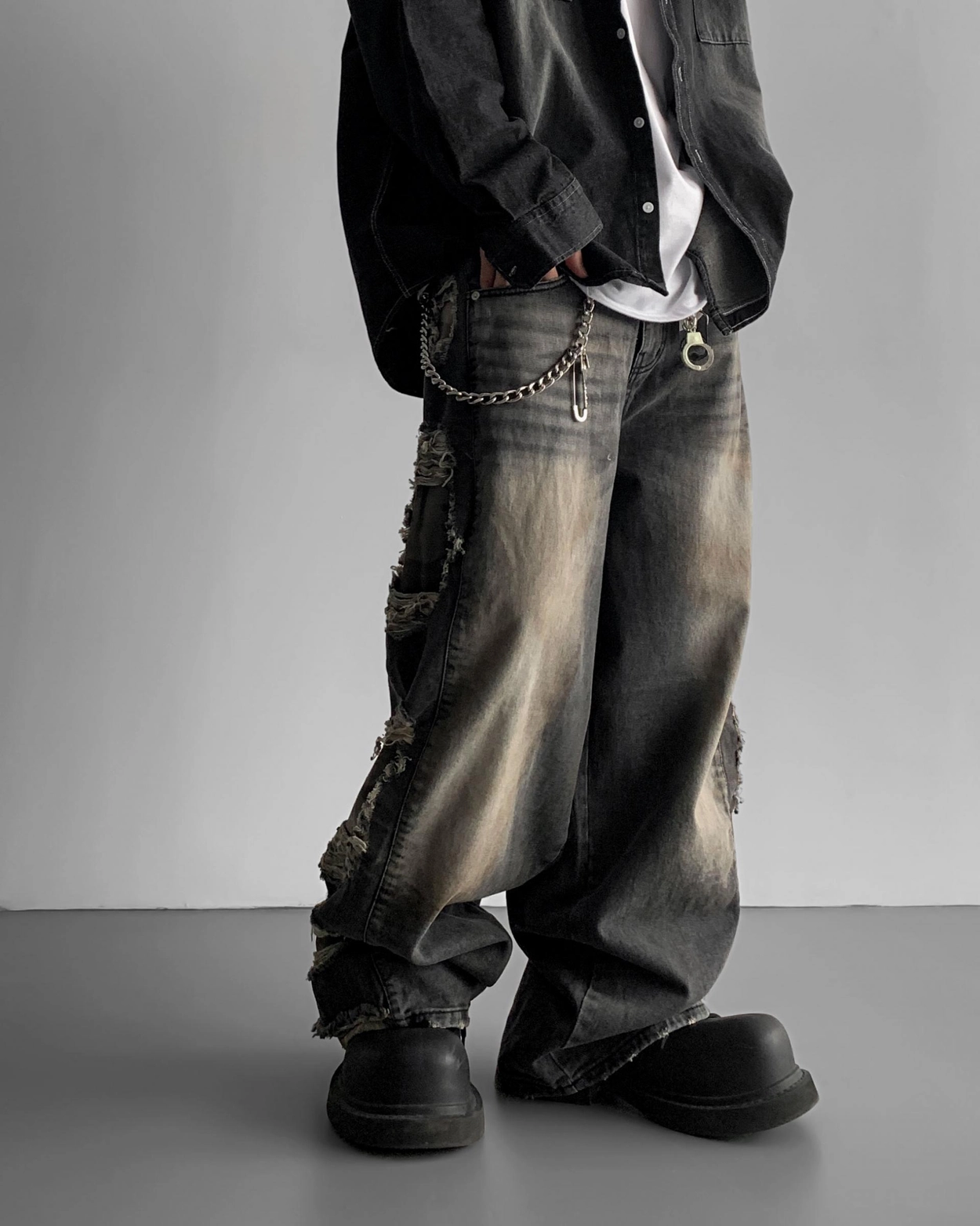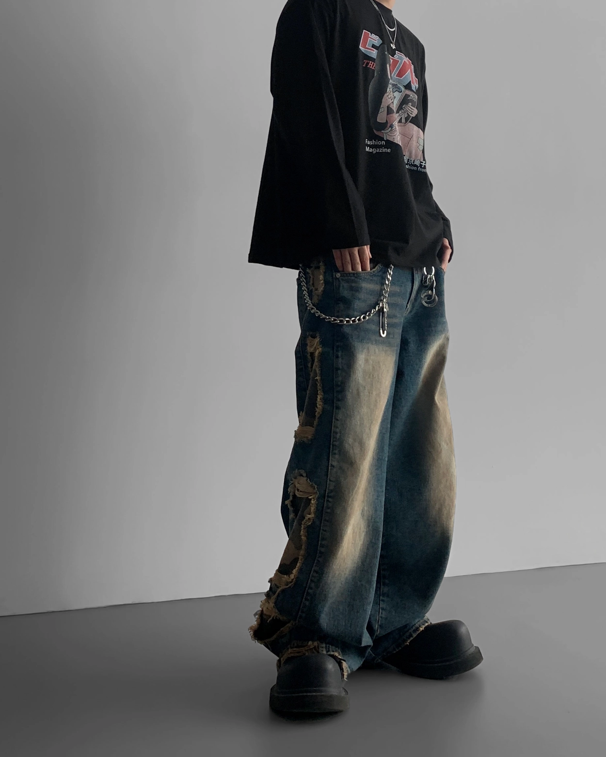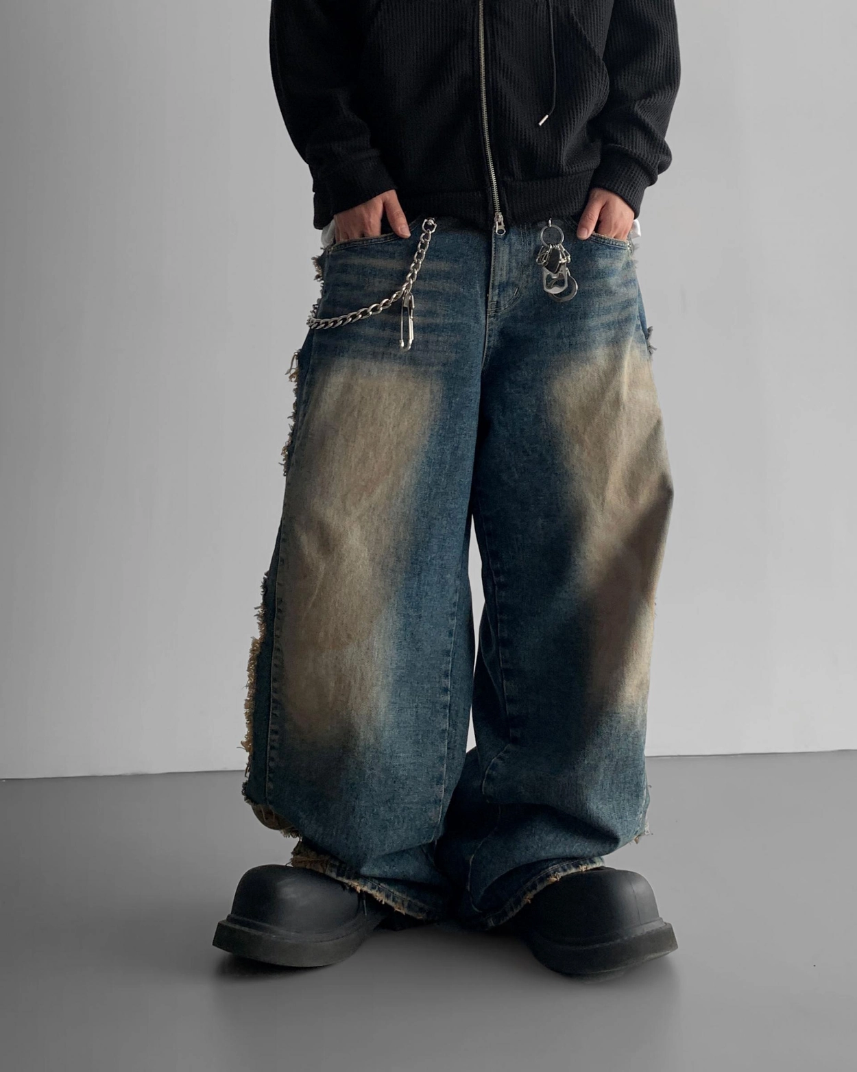 - 側面和下擺有損壞,細節與水洗顏色相匹配