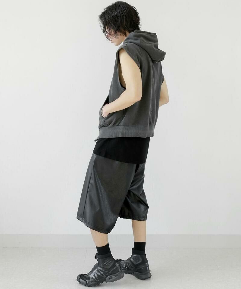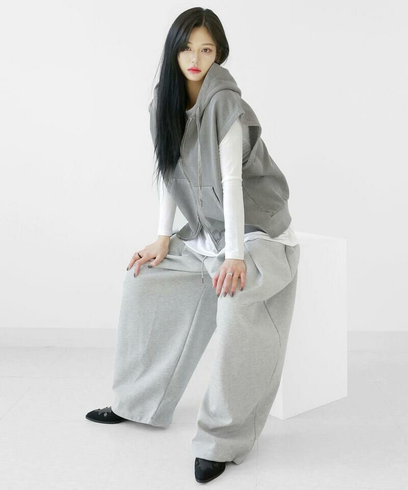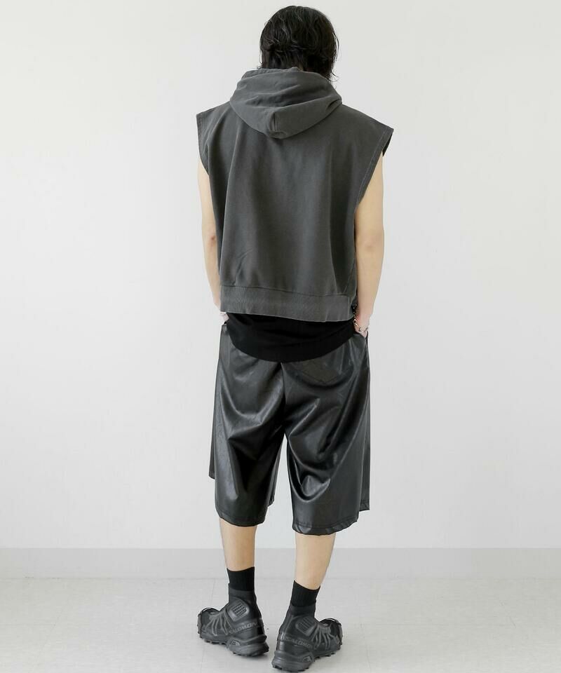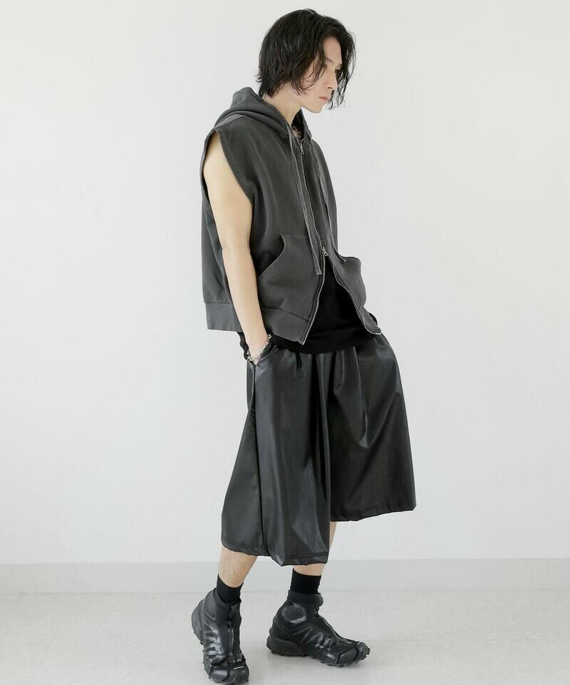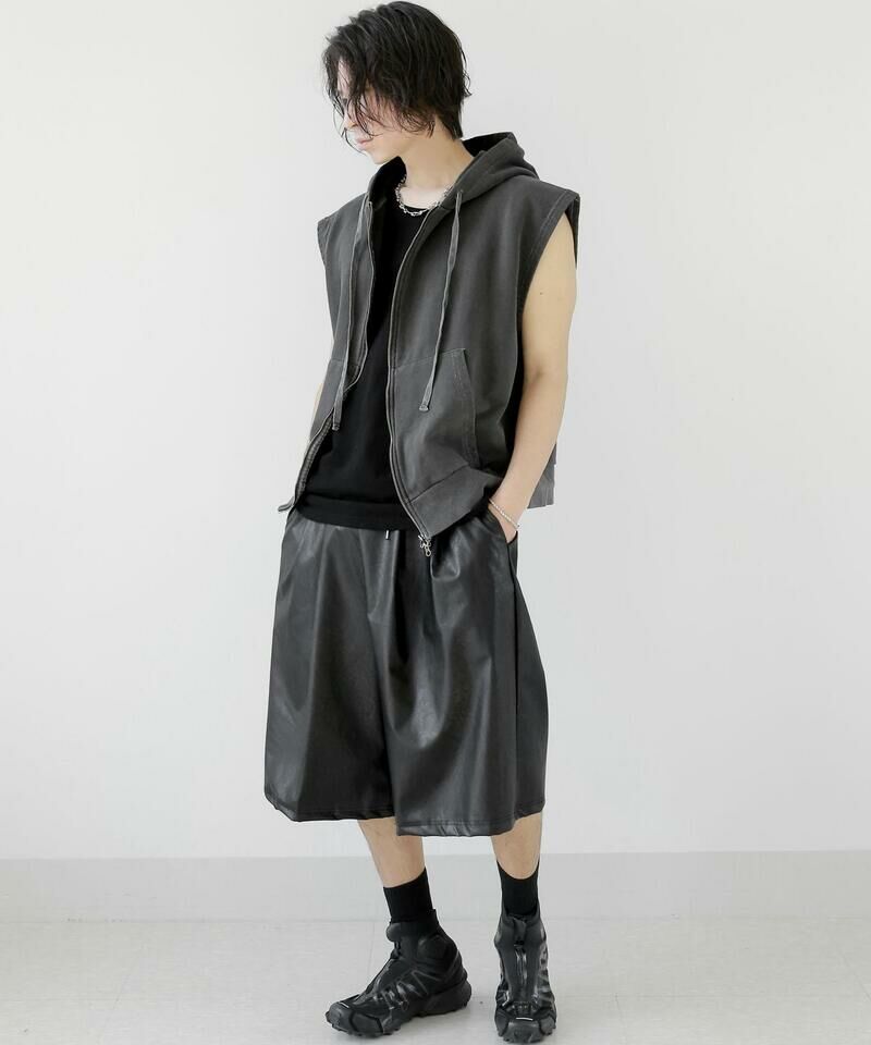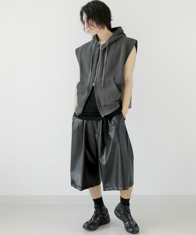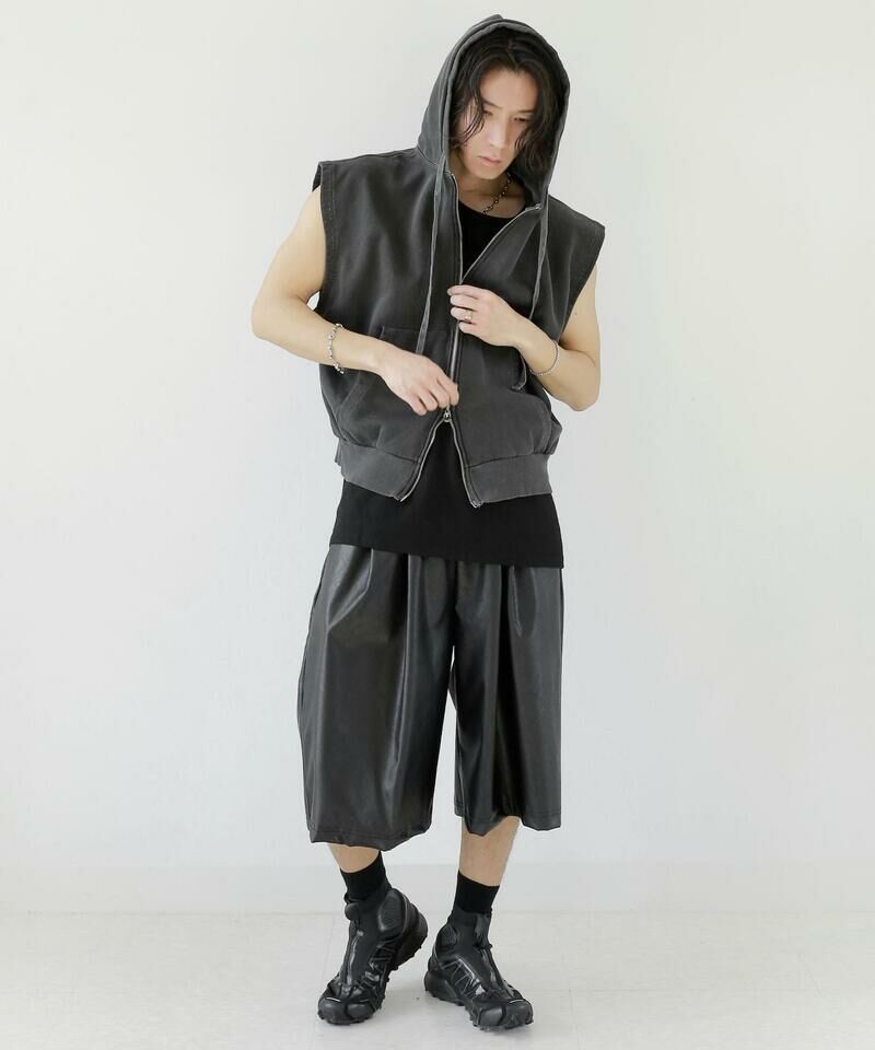 顏料洗滌連帽拉鍊背心。