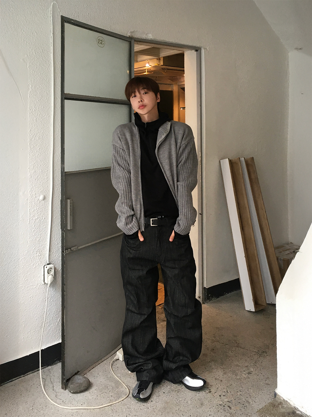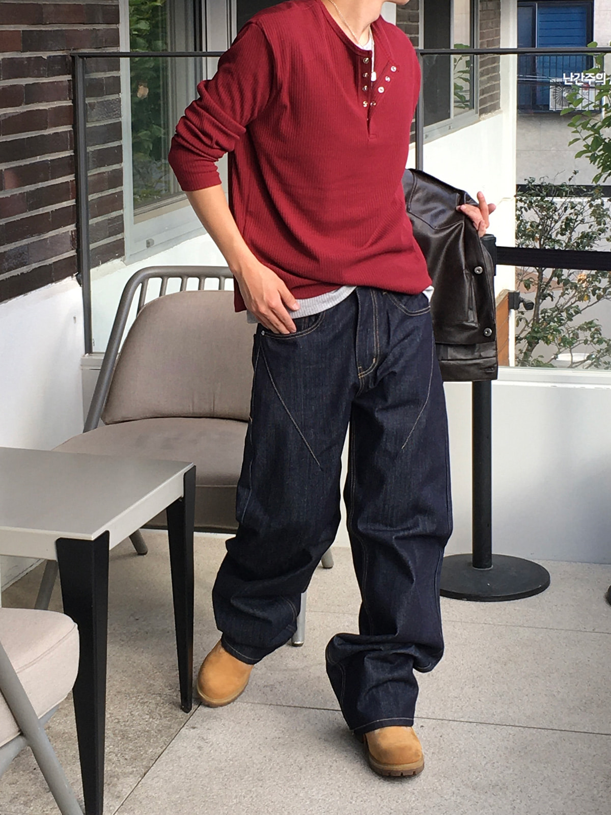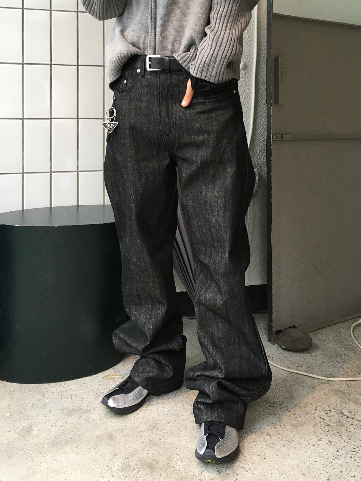 半喇叭褲型拉長腿部線條,使其成為百搭的中性單品。