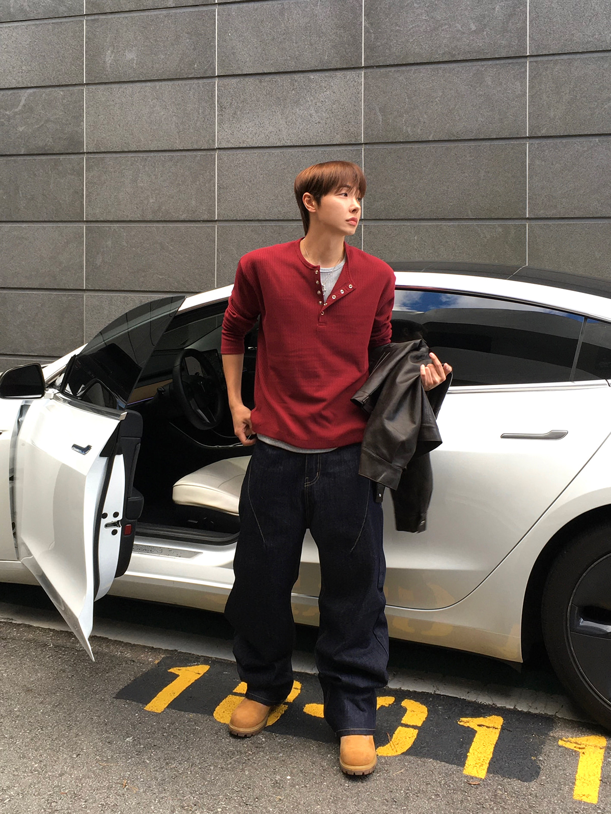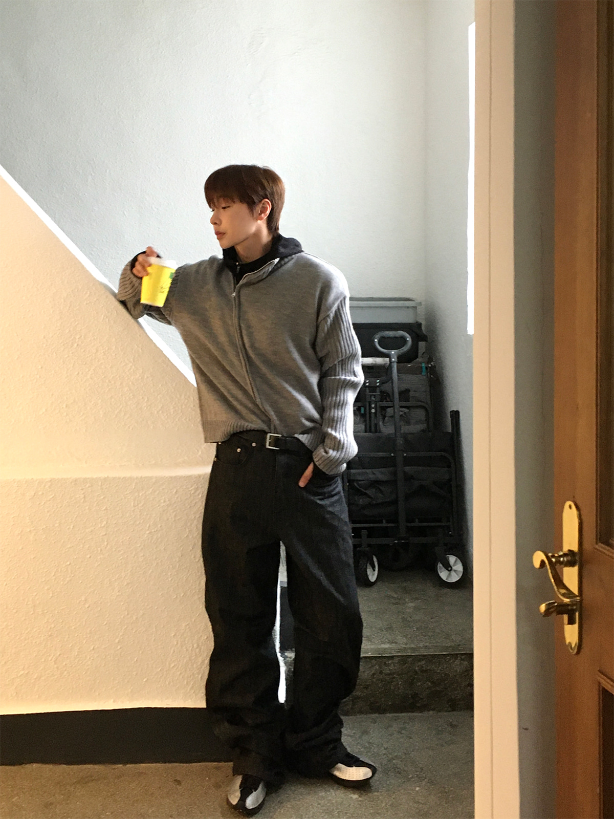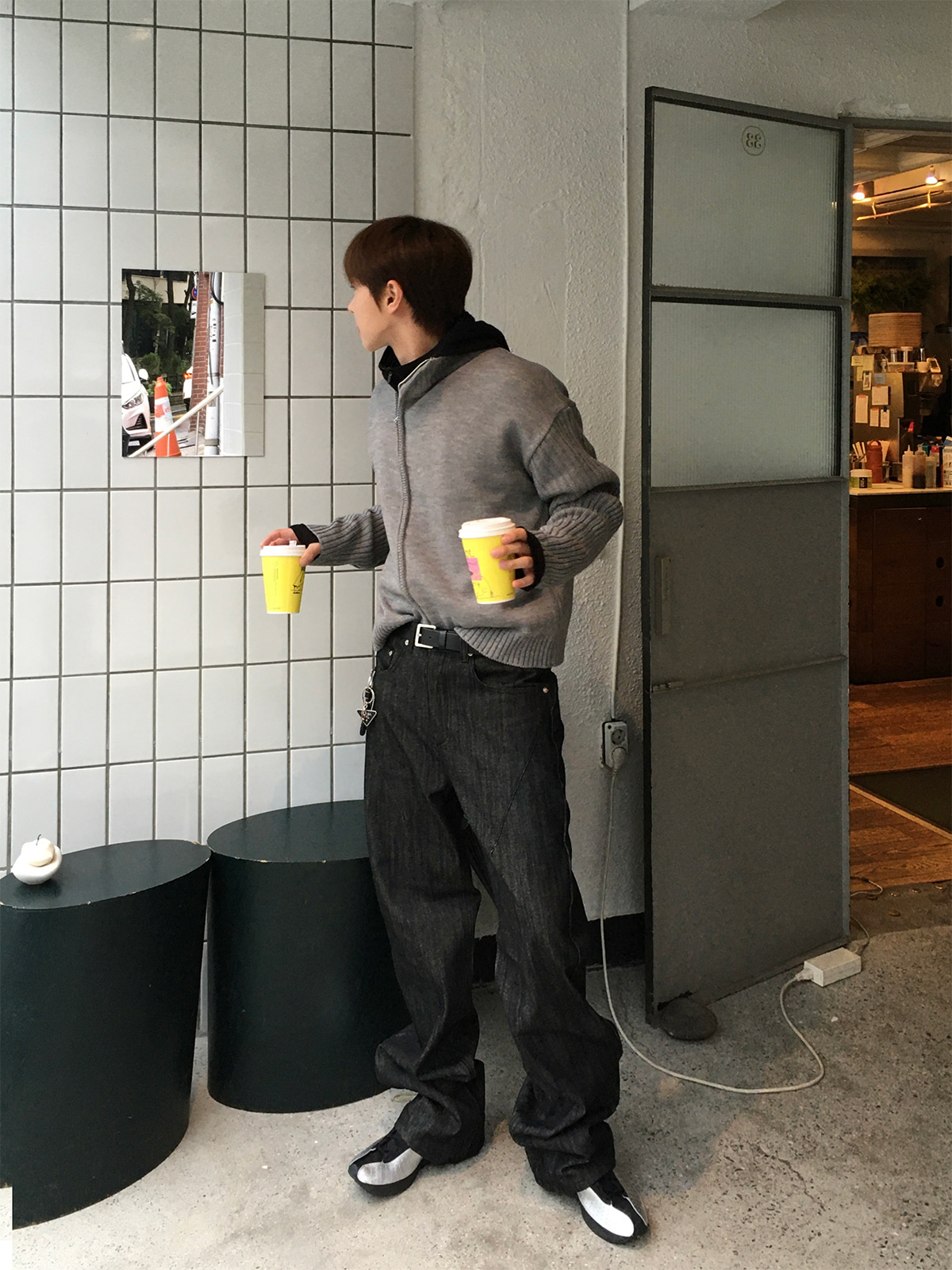 半喇叭褲型拉長腿部線條,使其成為百搭的中性單品。