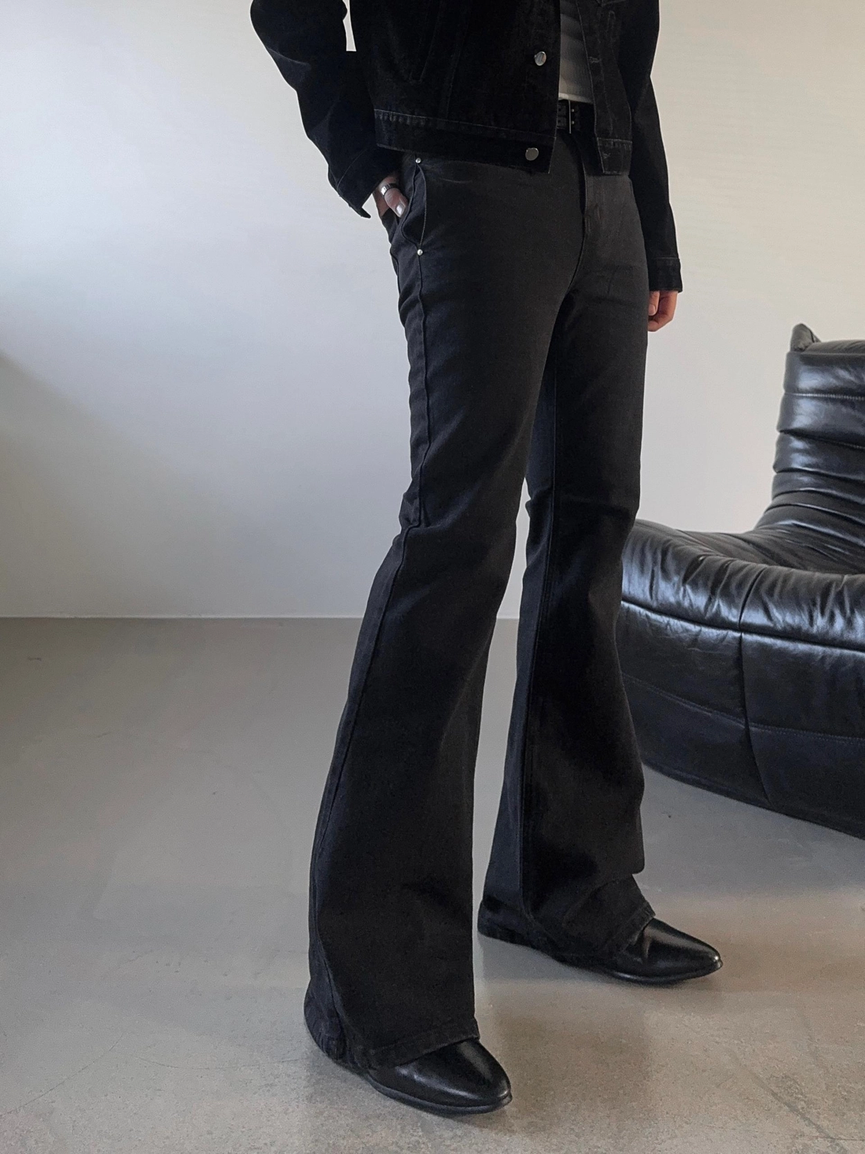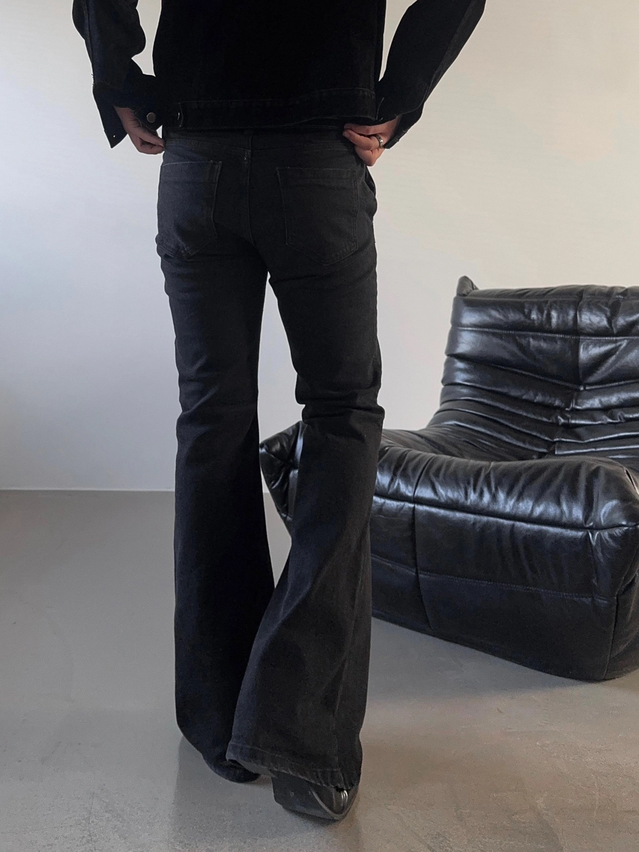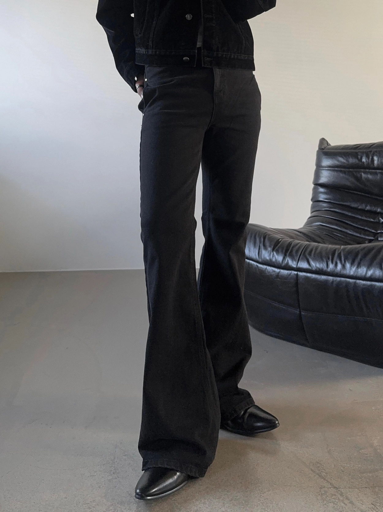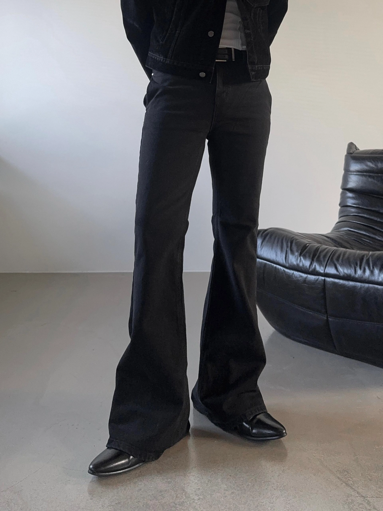 - 以堅固耐用的棉質布料製成的喇叭牛仔褲