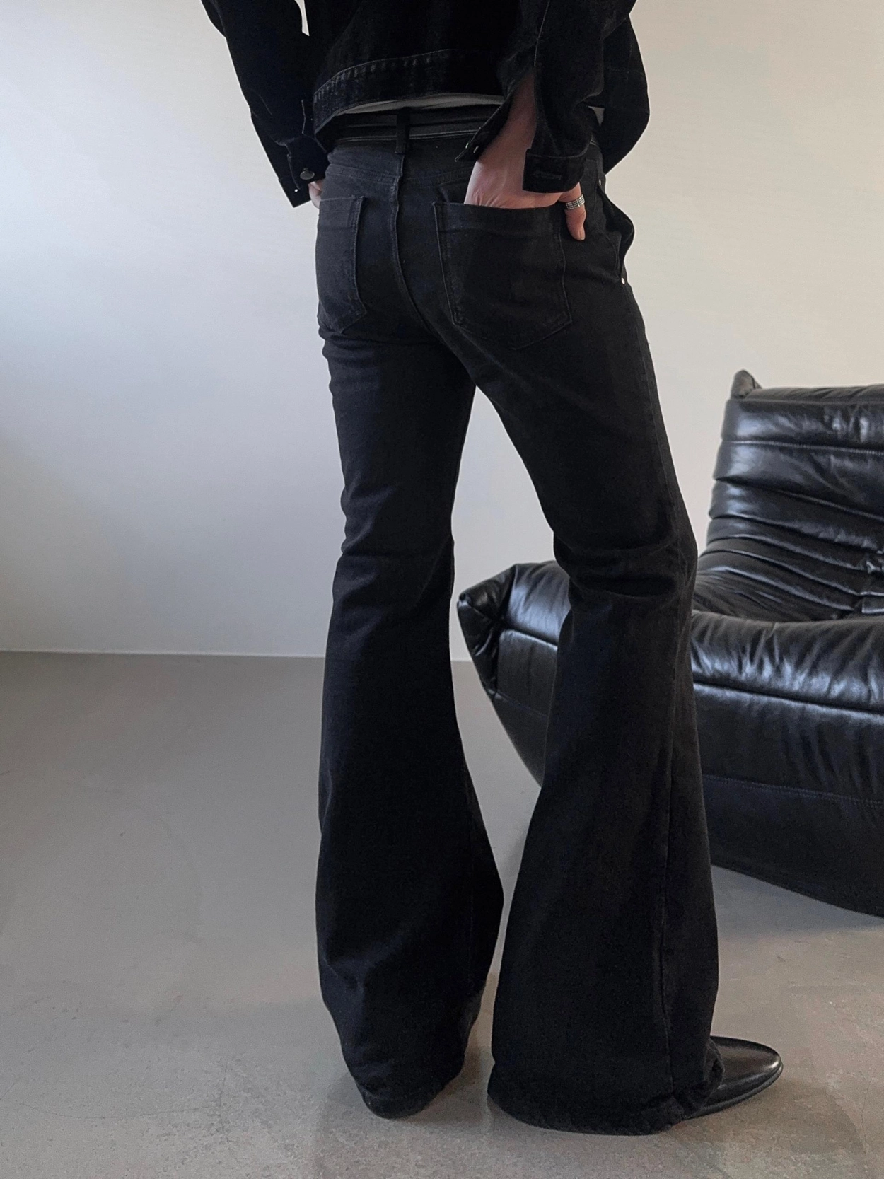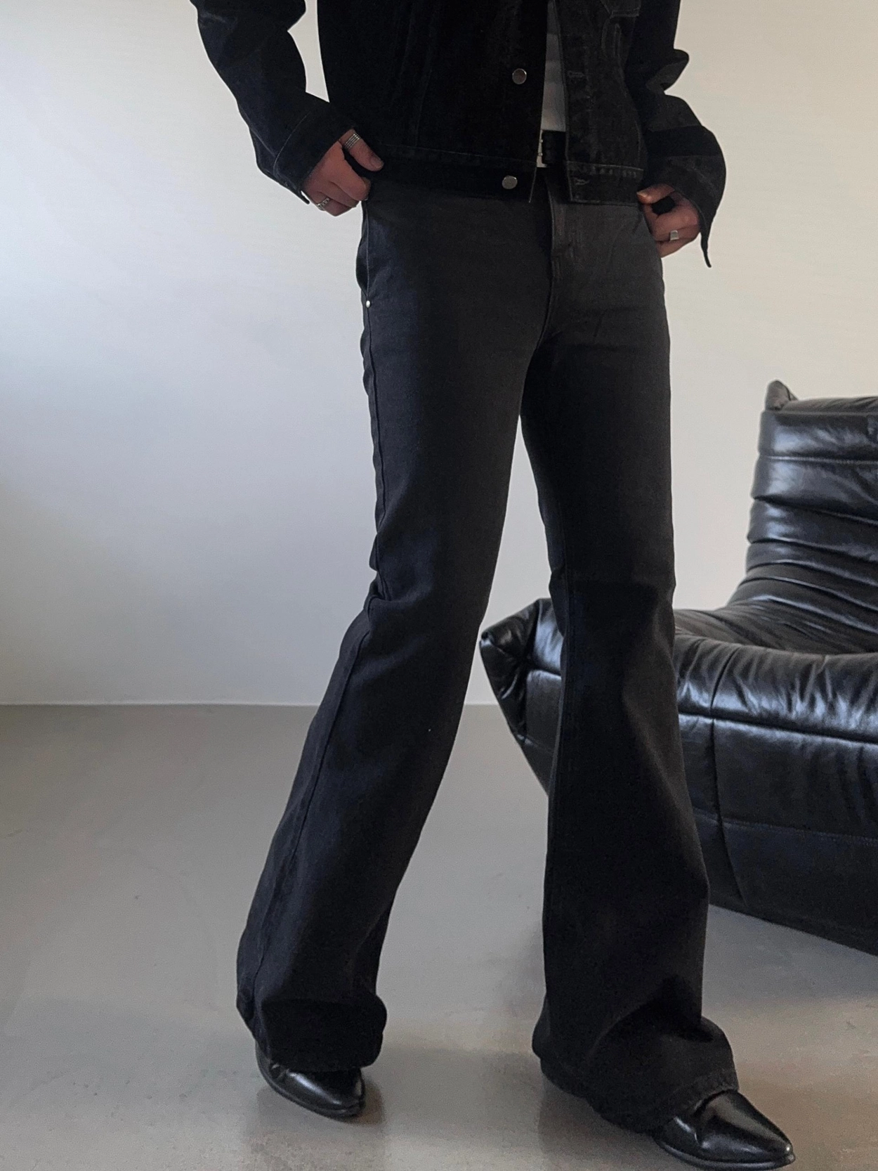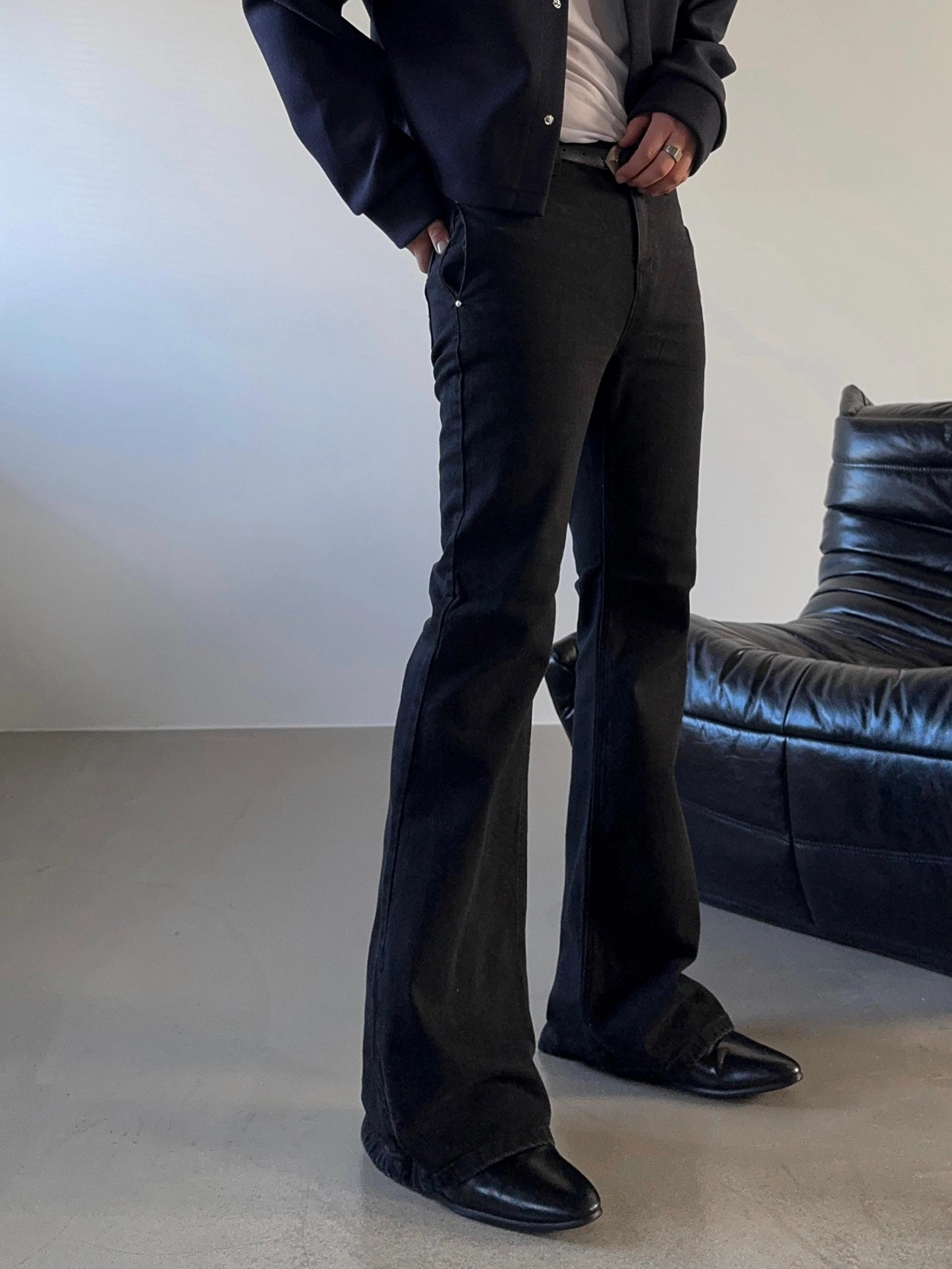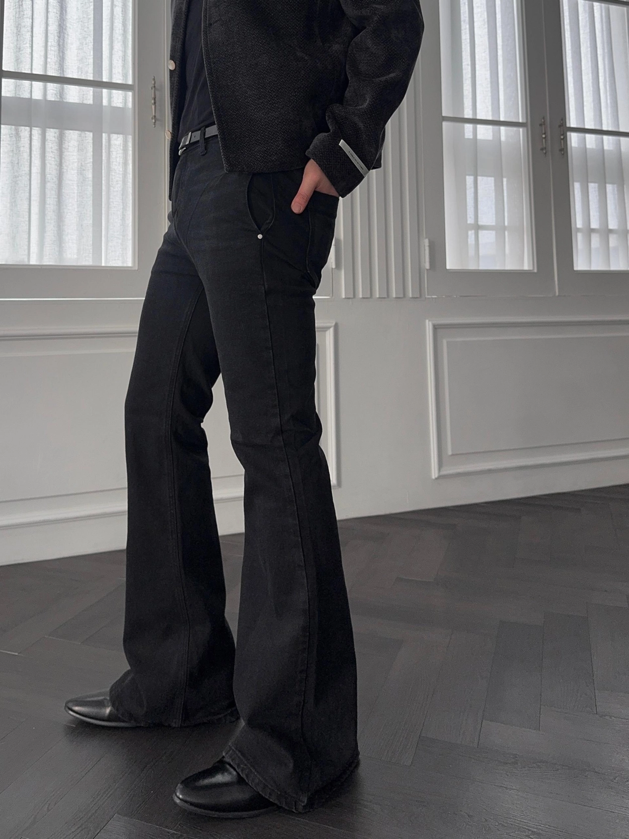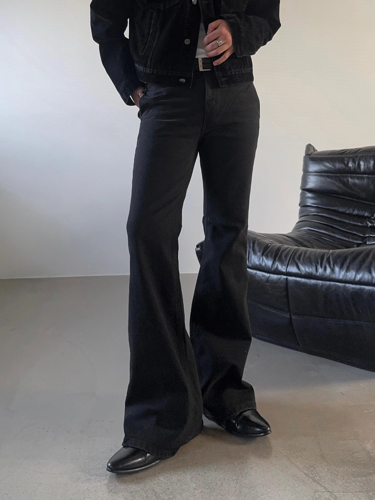 - 以堅固耐用的棉質布料製成的喇叭牛仔褲