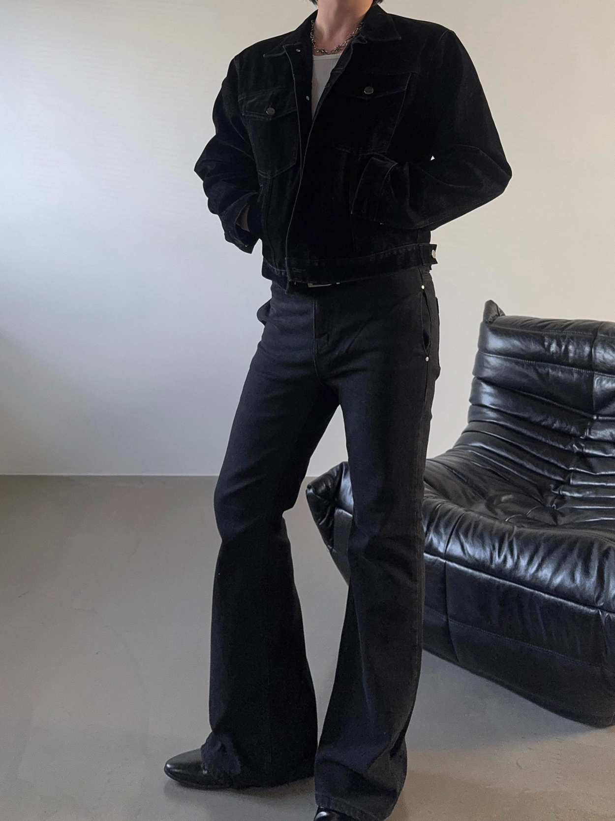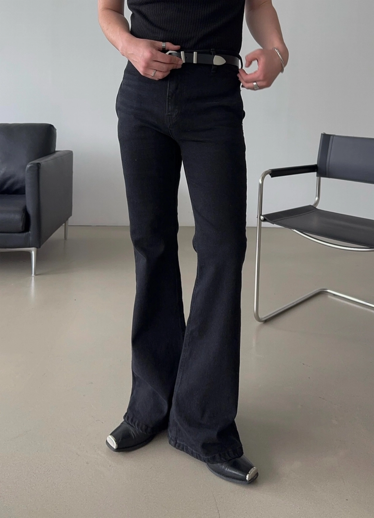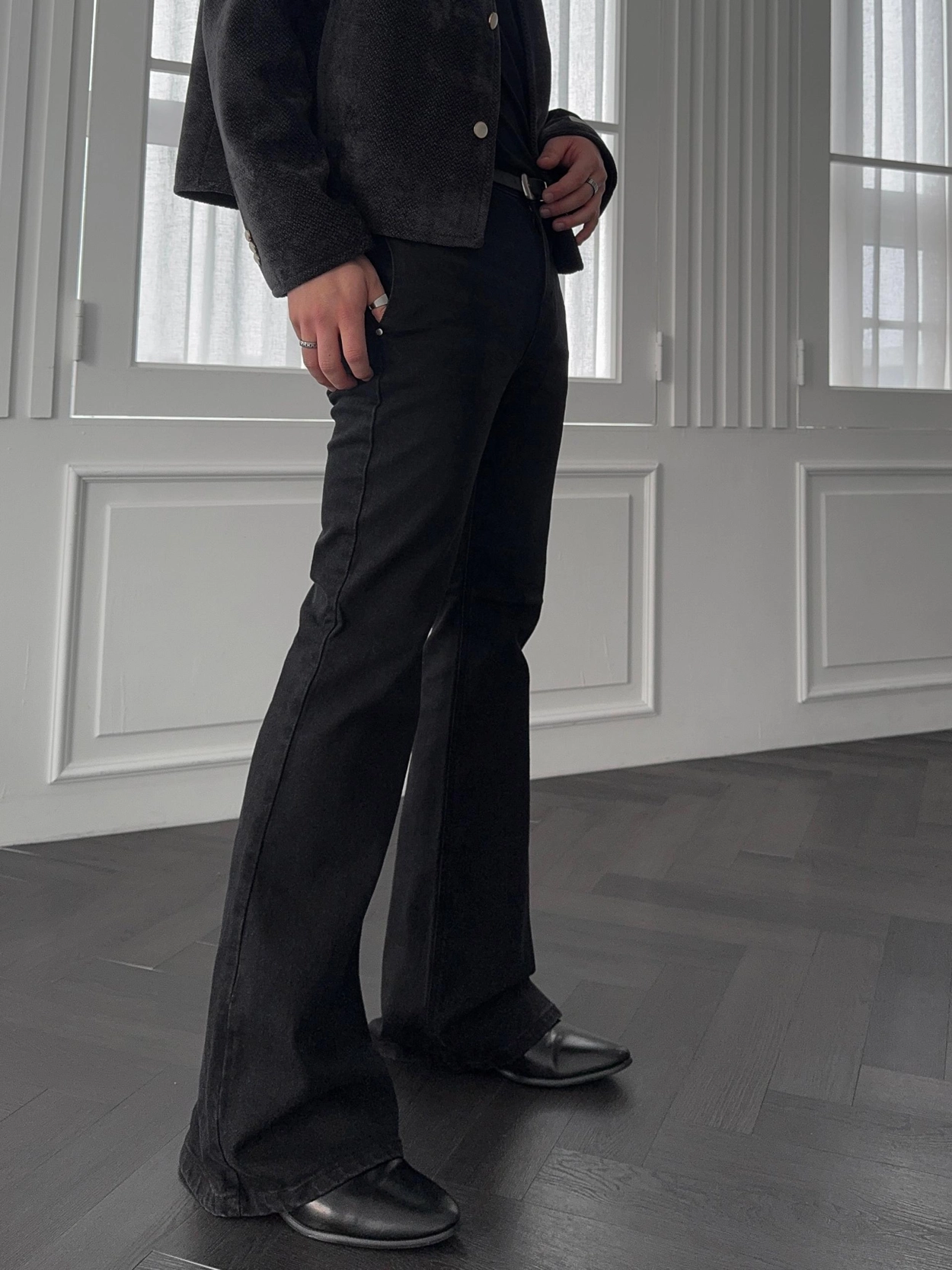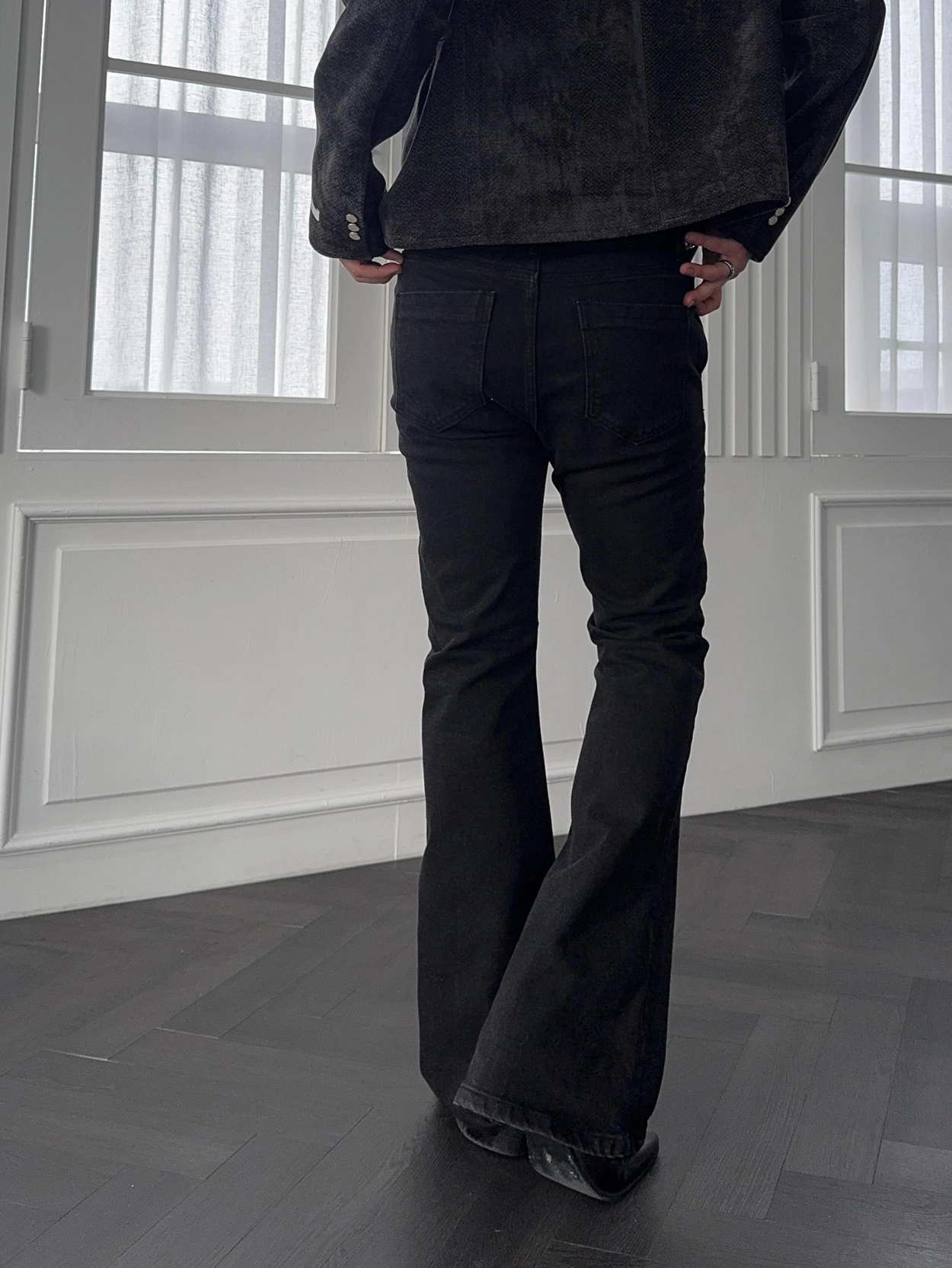 - 以堅固耐用的棉質布料製成的喇叭牛仔褲