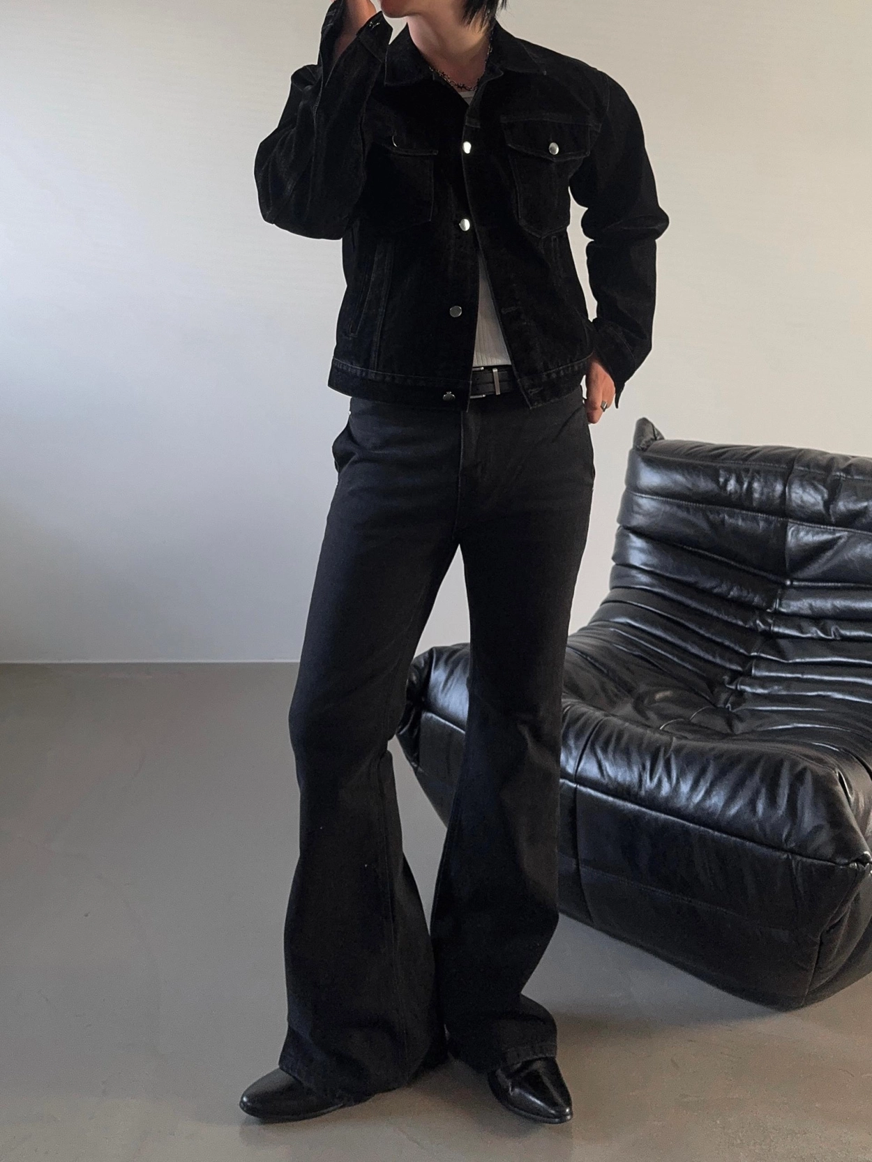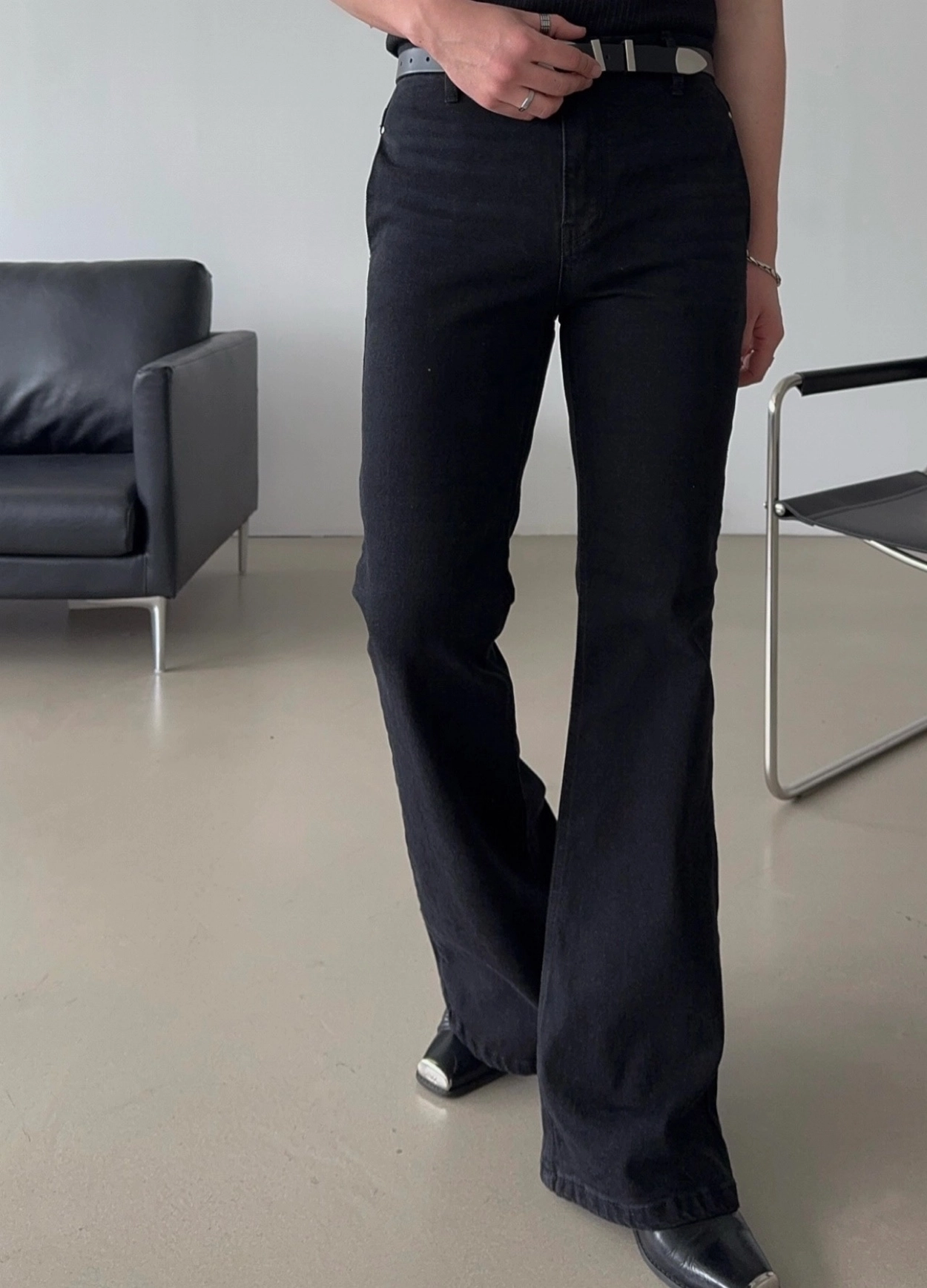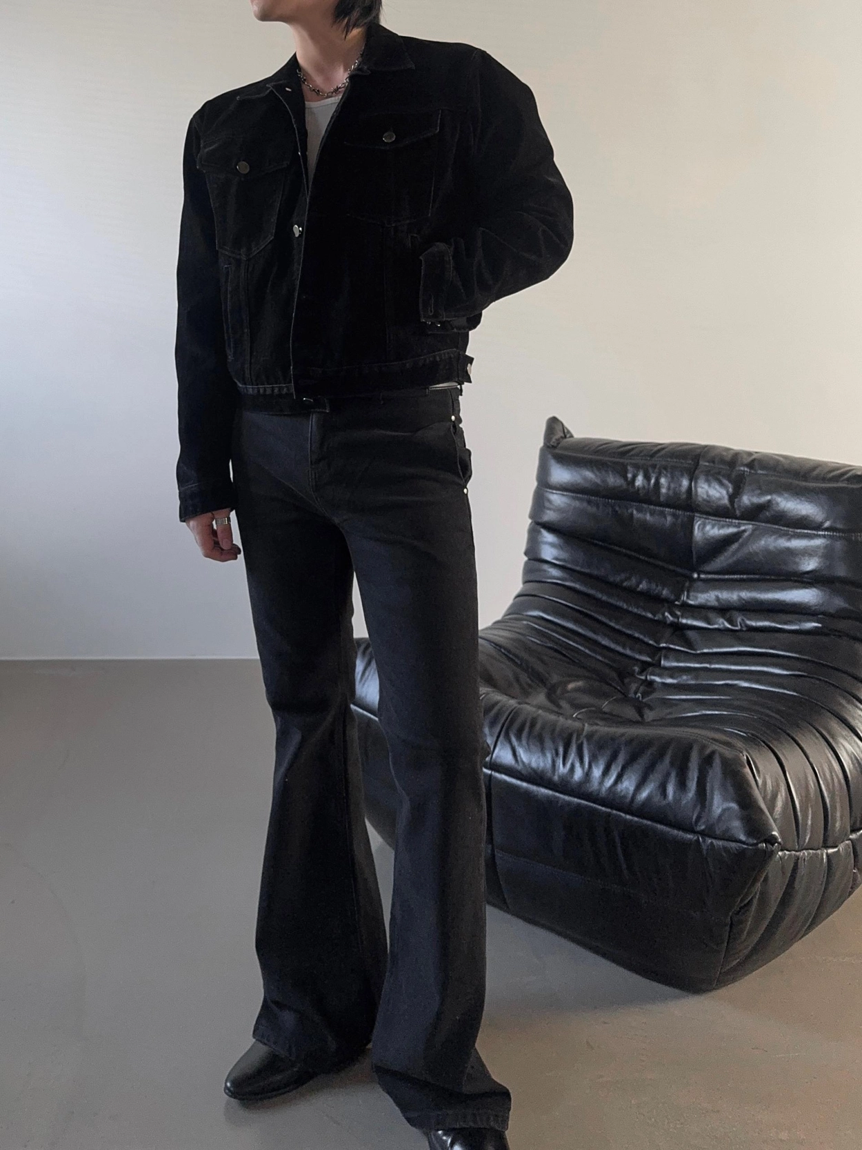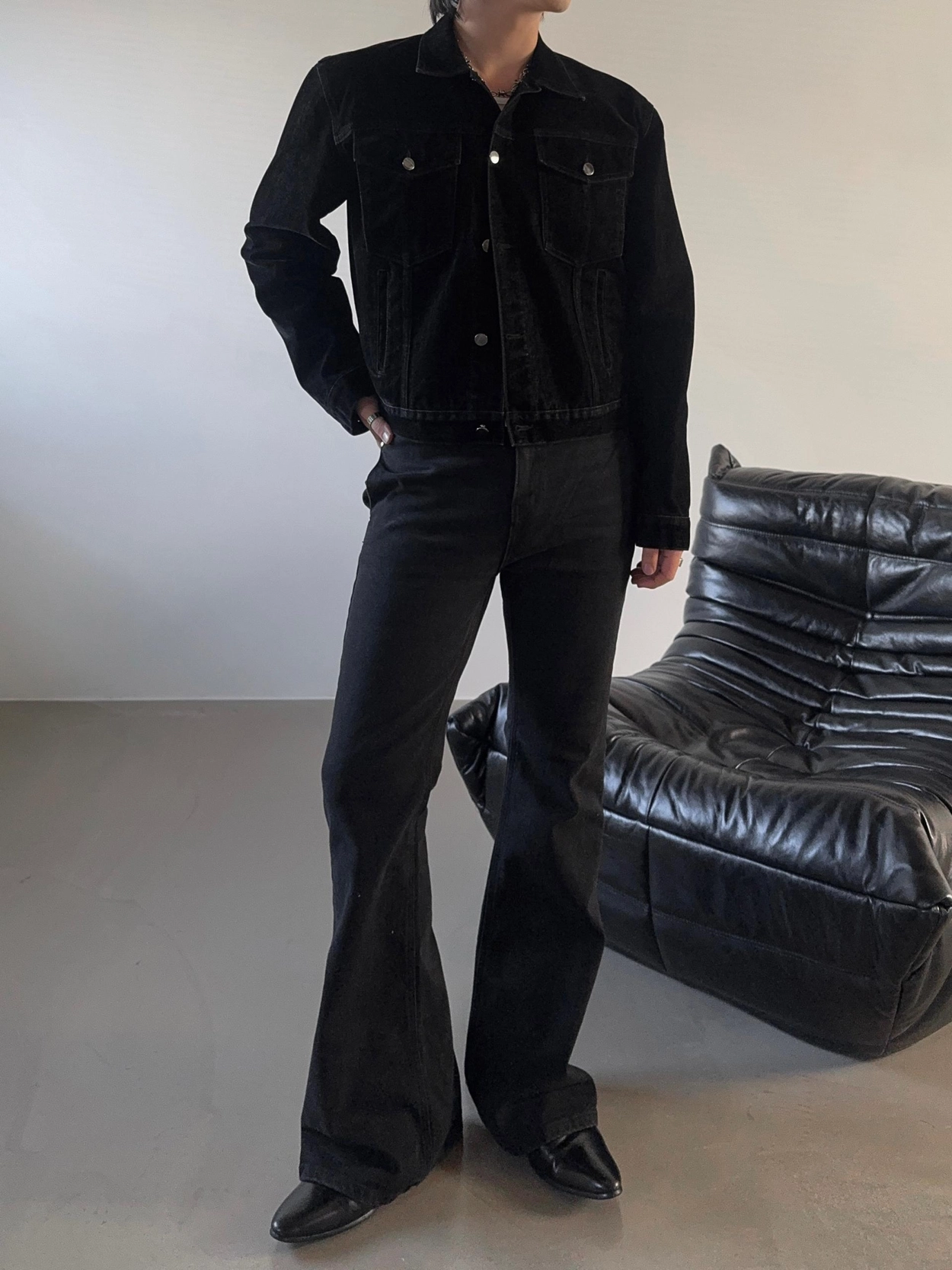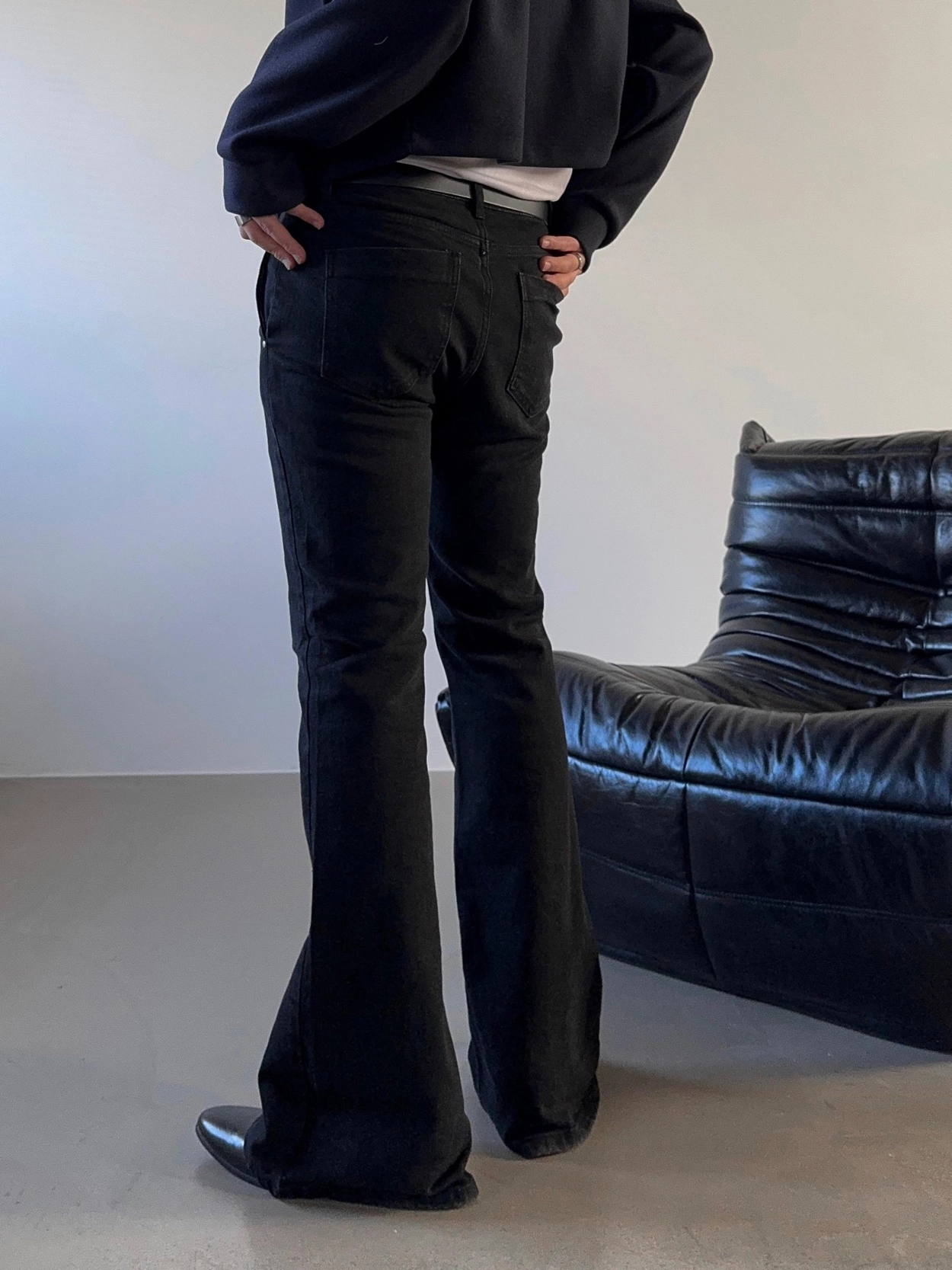 - 以堅固耐用的棉質布料製成的喇叭牛仔褲