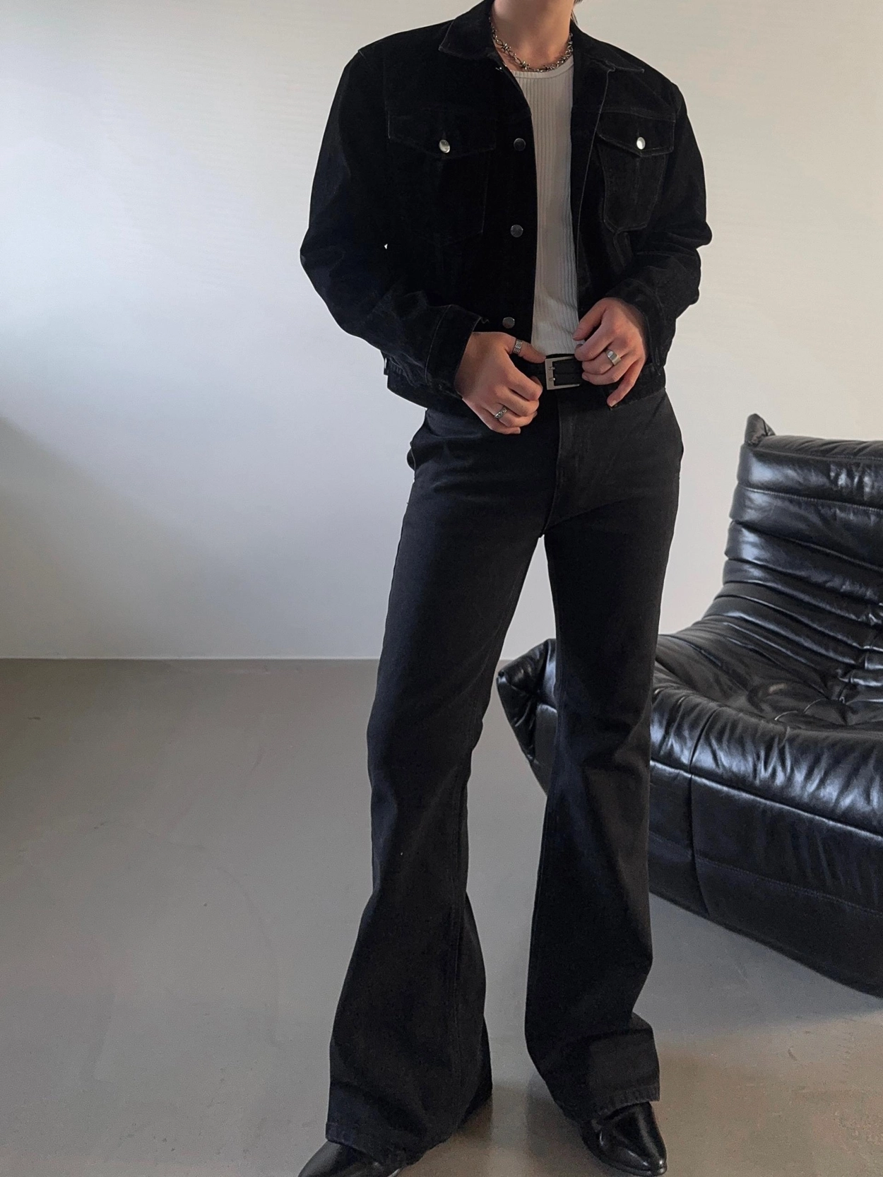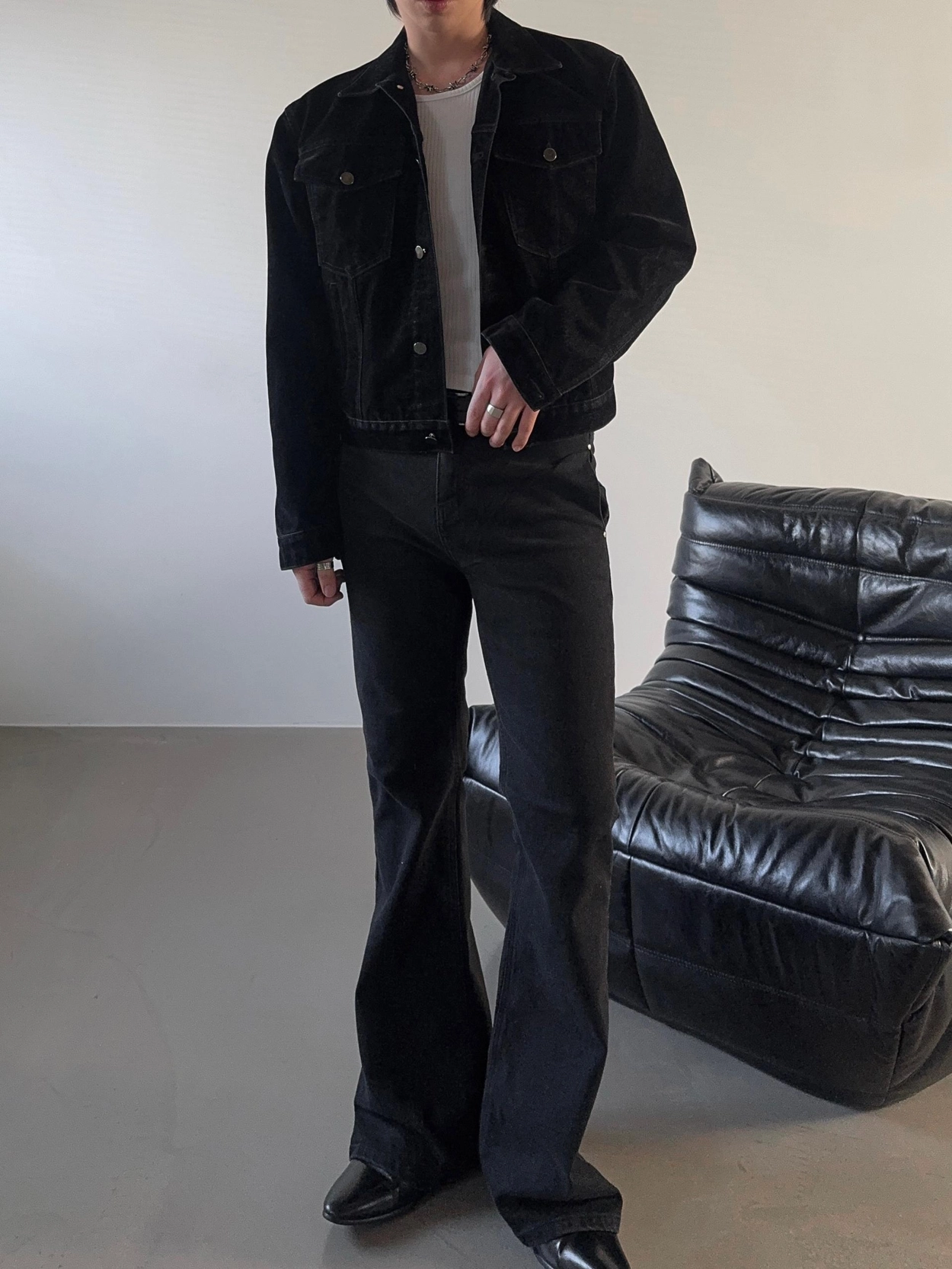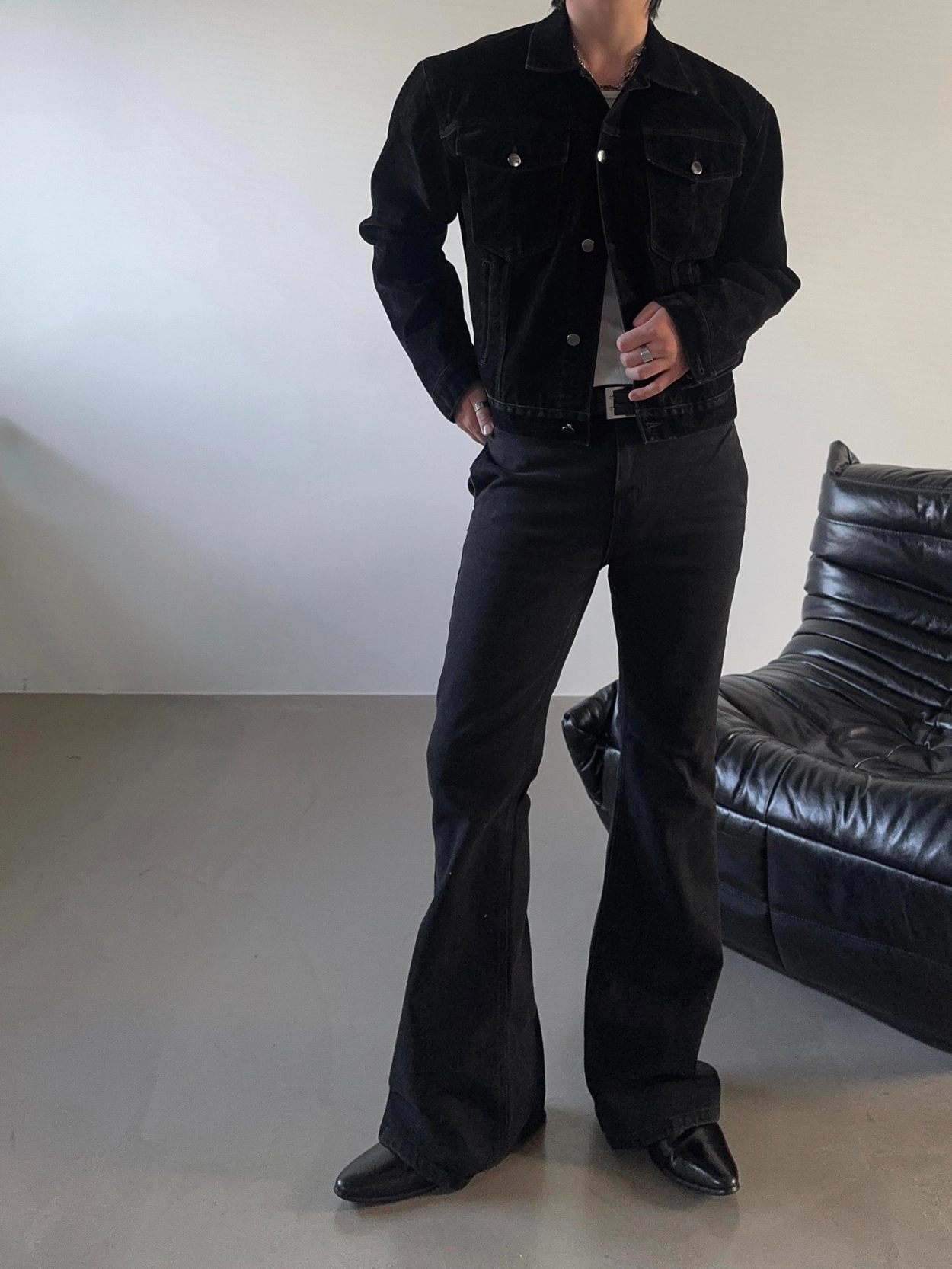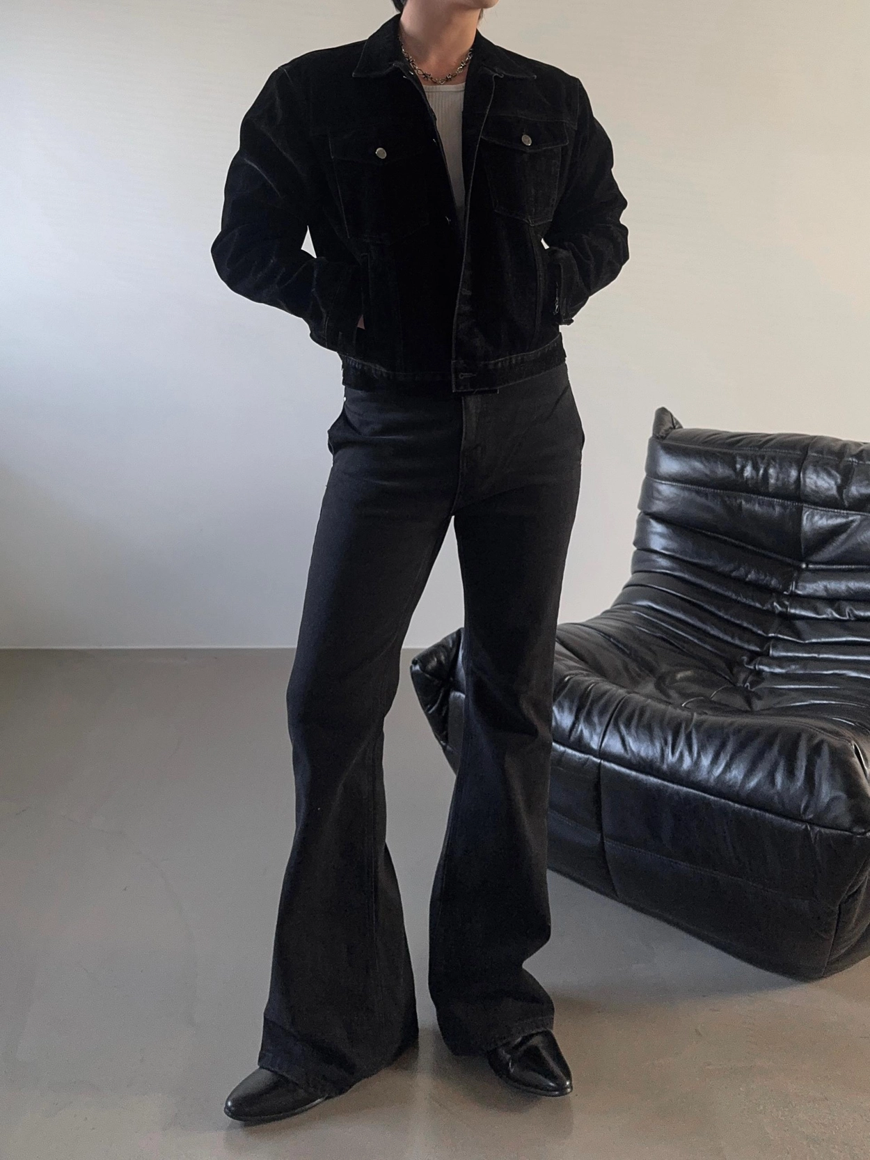 - 以堅固耐用的棉質布料製成的喇叭牛仔褲