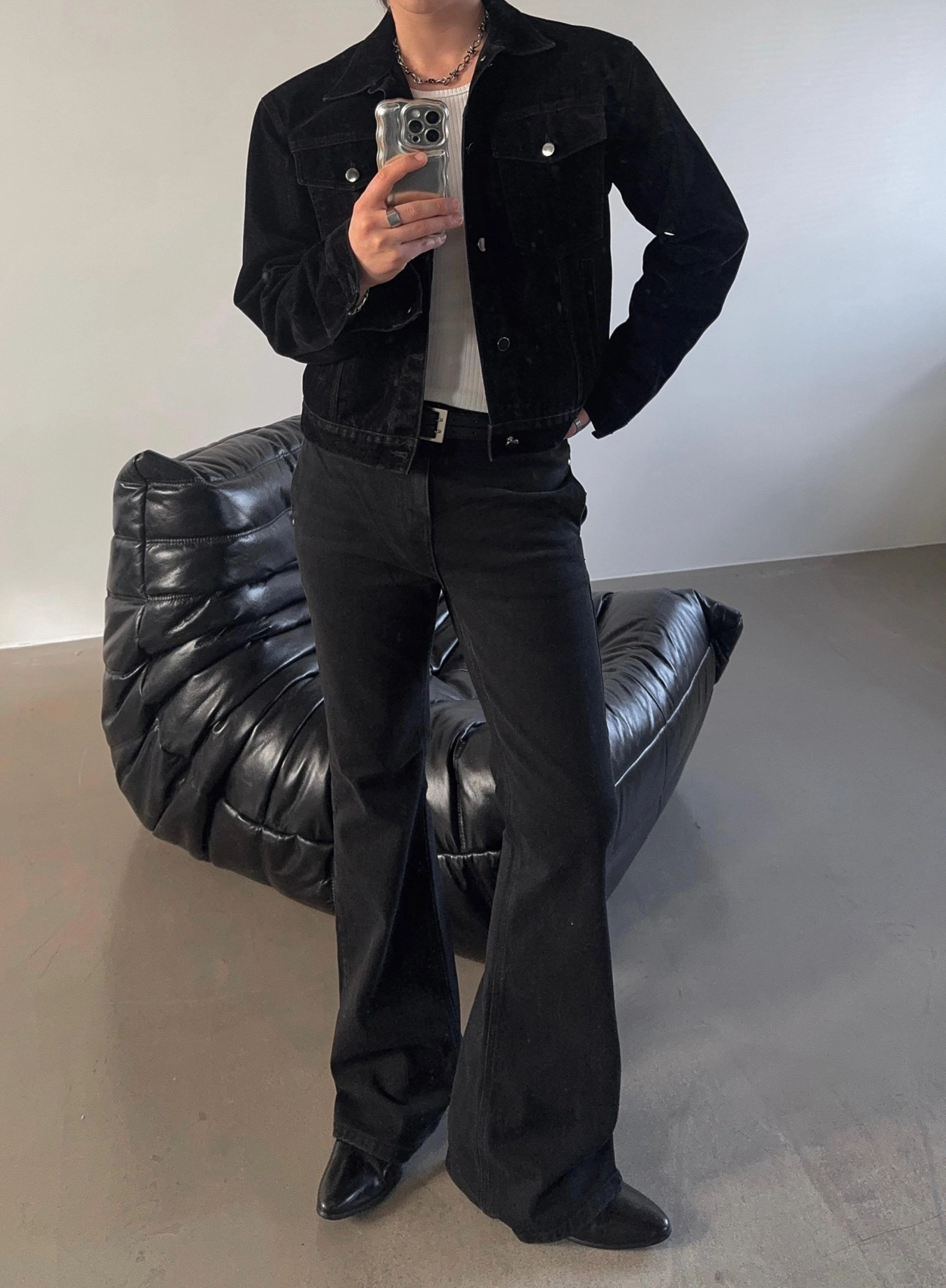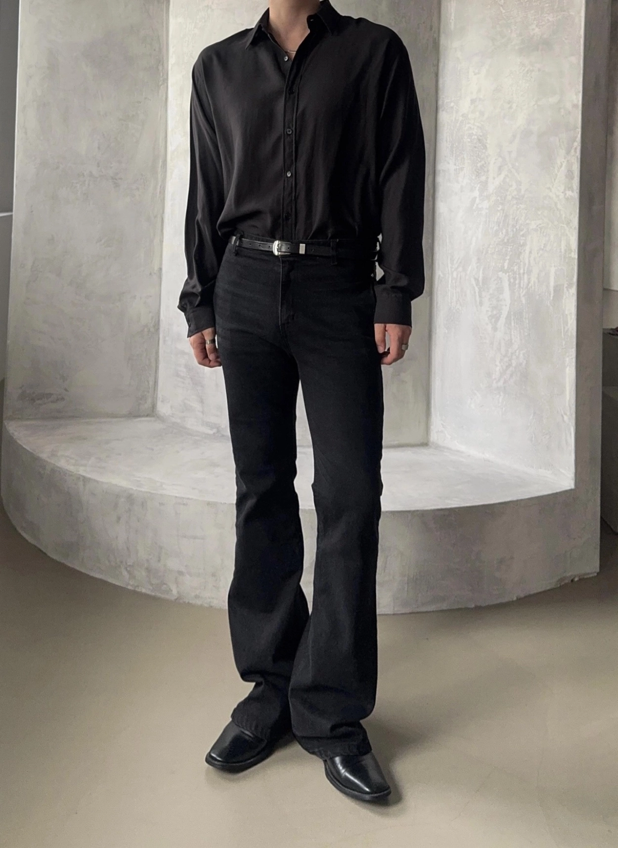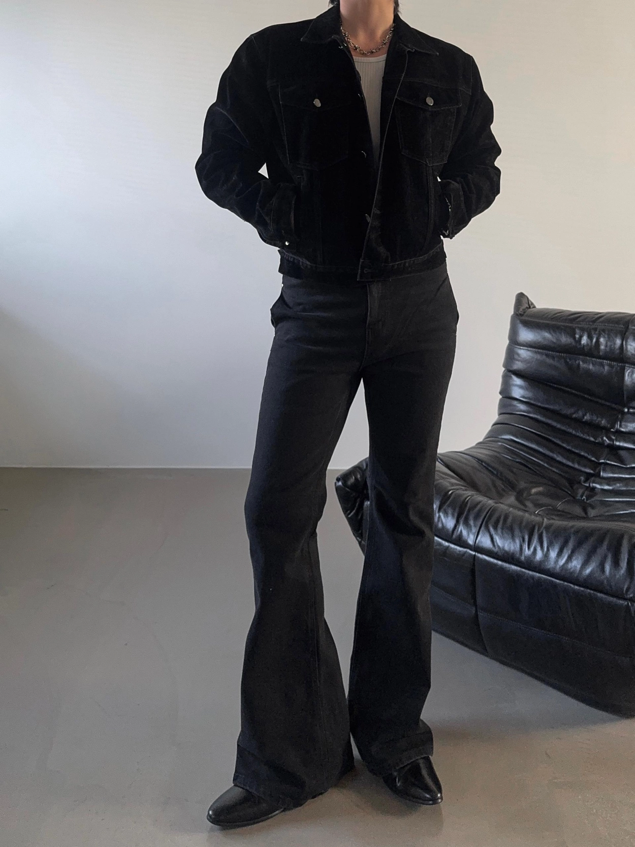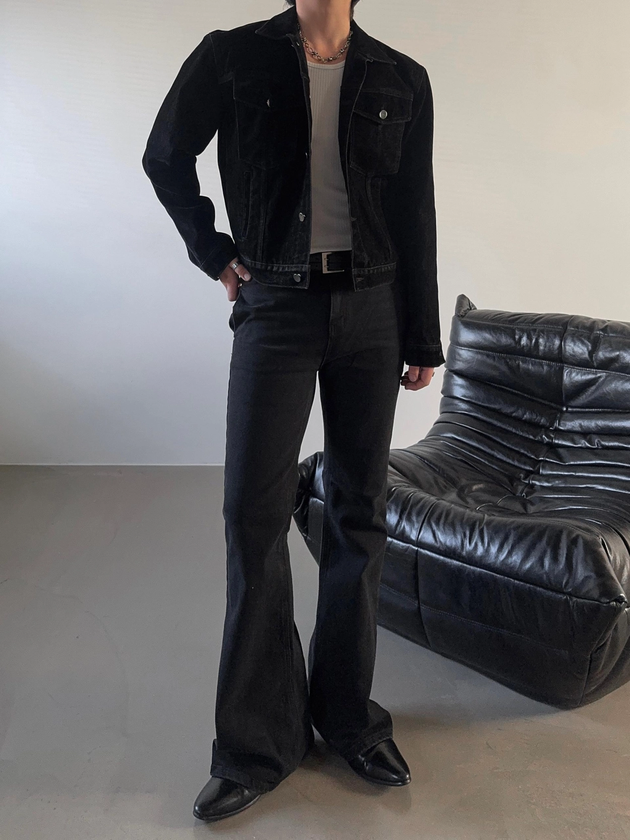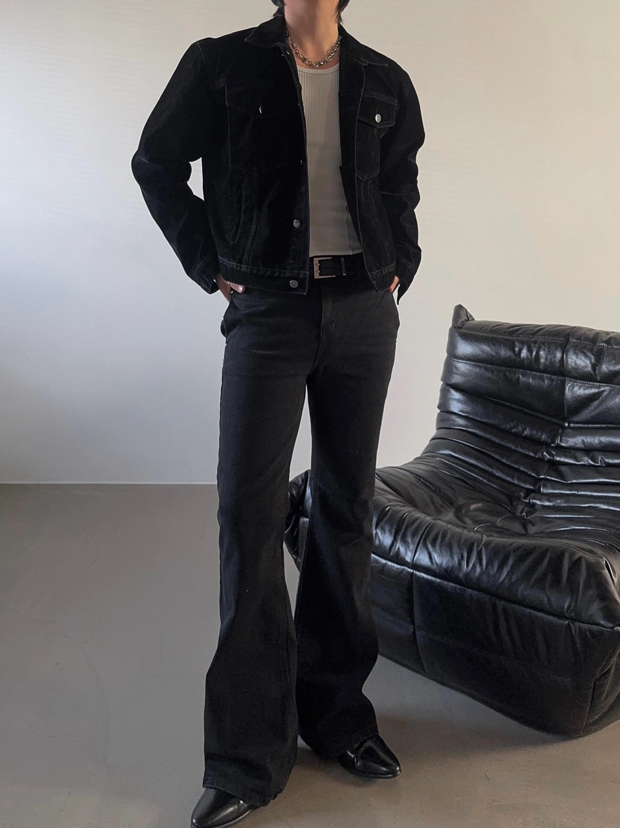 - 以堅固耐用的棉質布料製成的喇叭牛仔褲
