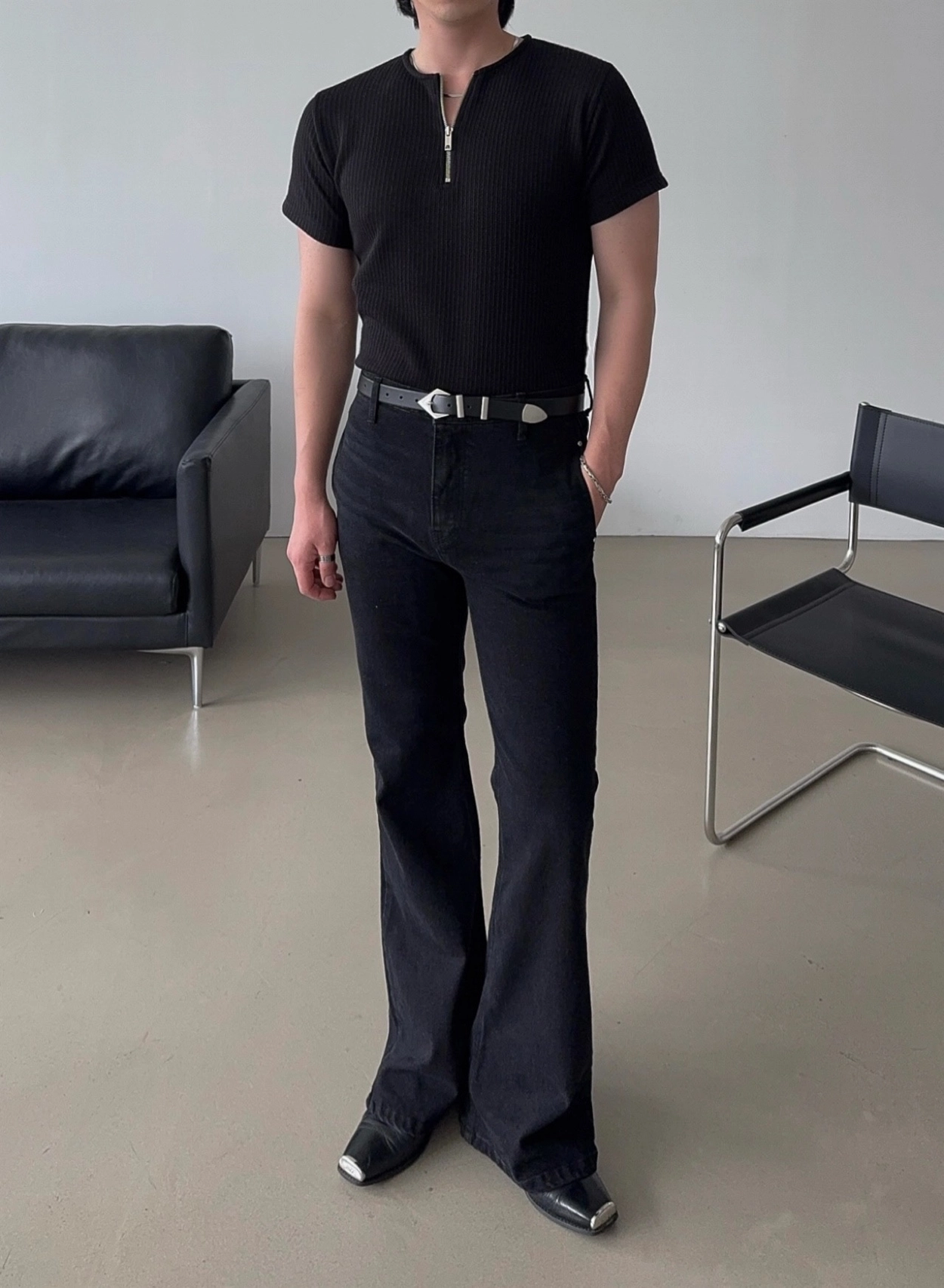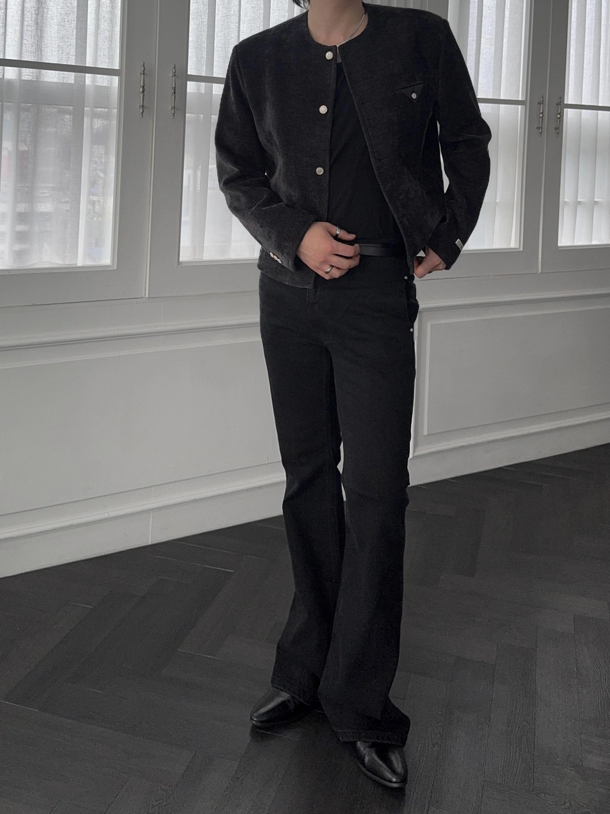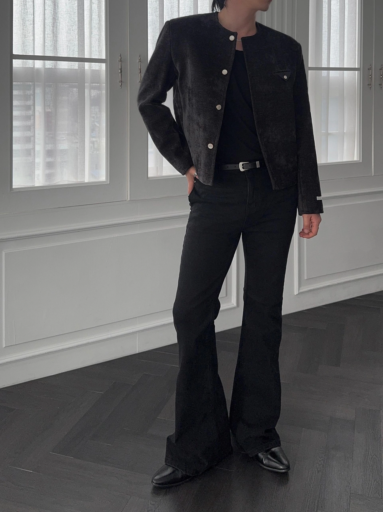 - 加長褲長,拉長腿部線條