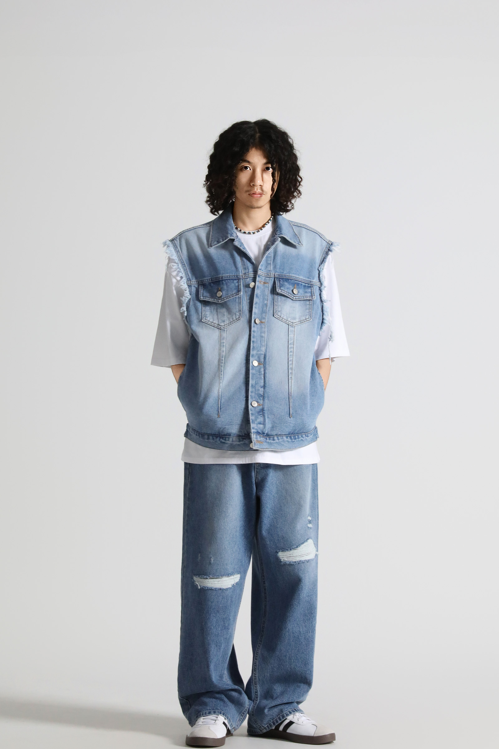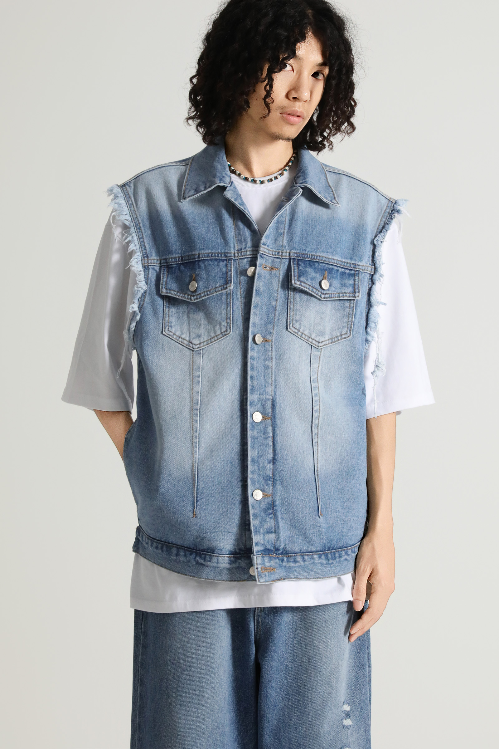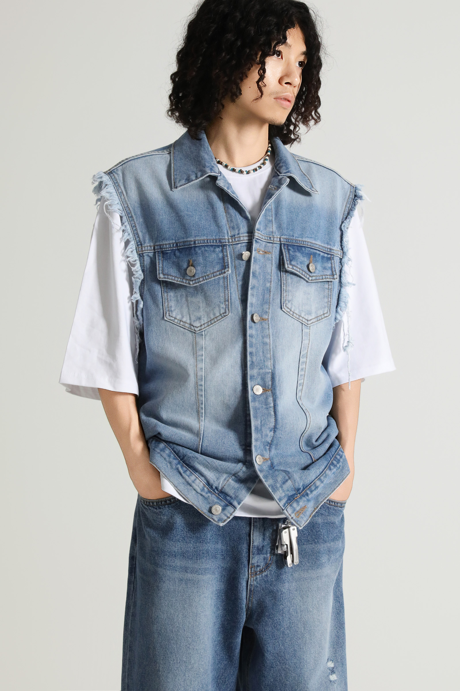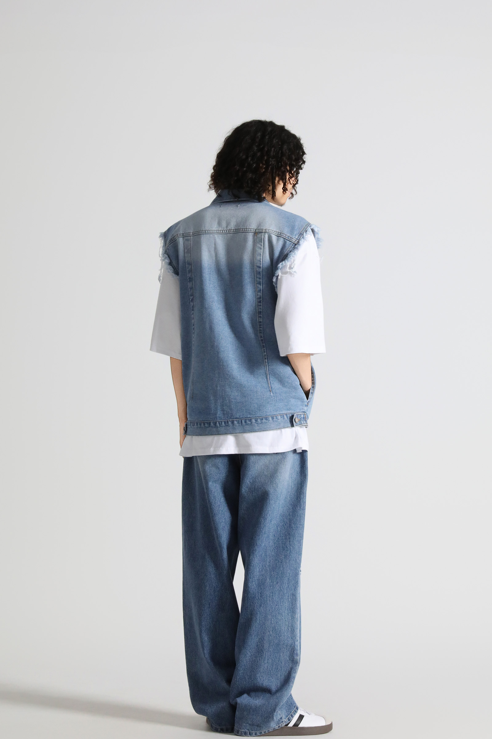 毛邊袖孔和褪色水洗工藝賦予其街頭風和復古氣息。