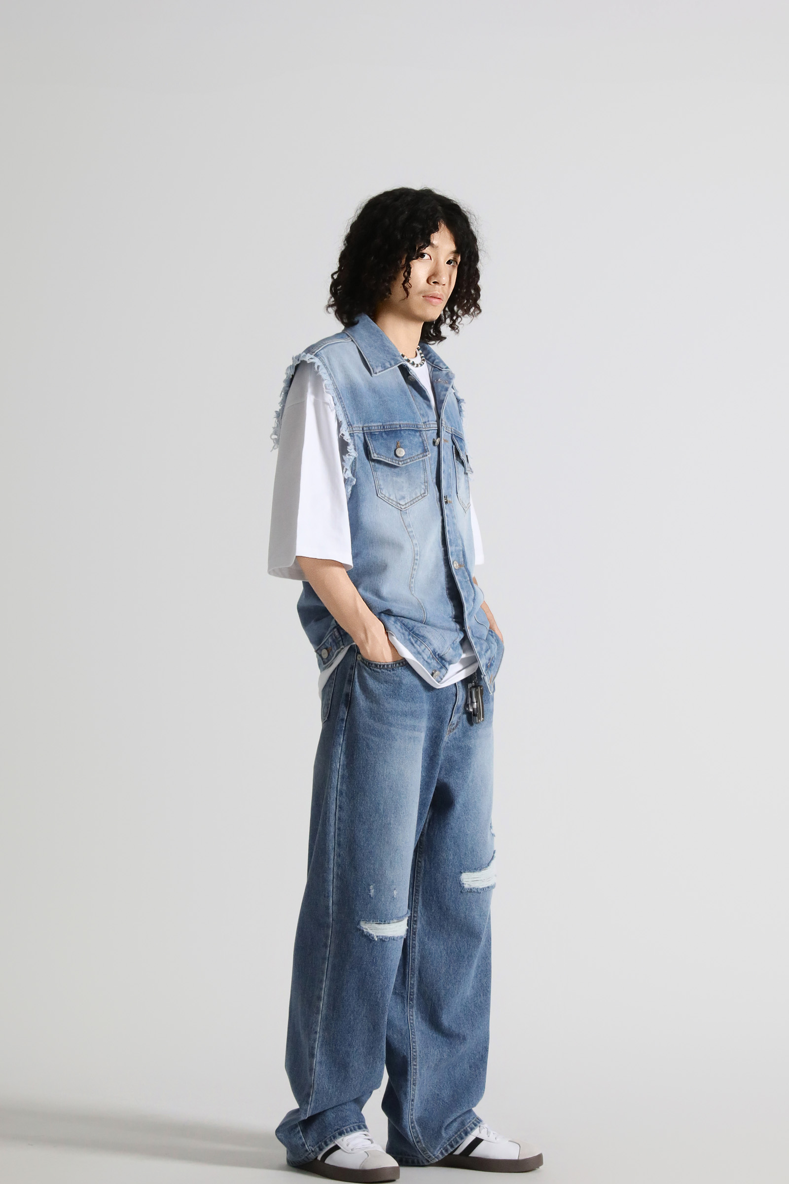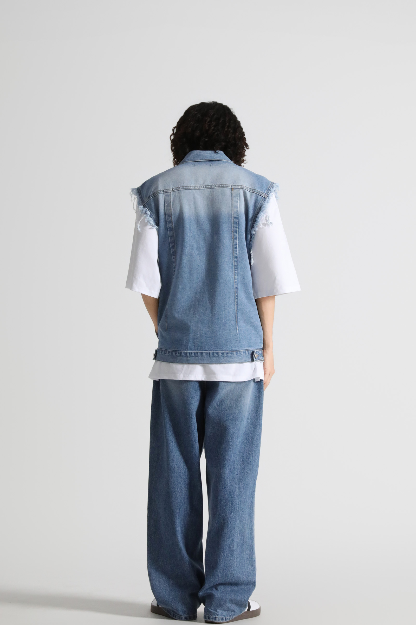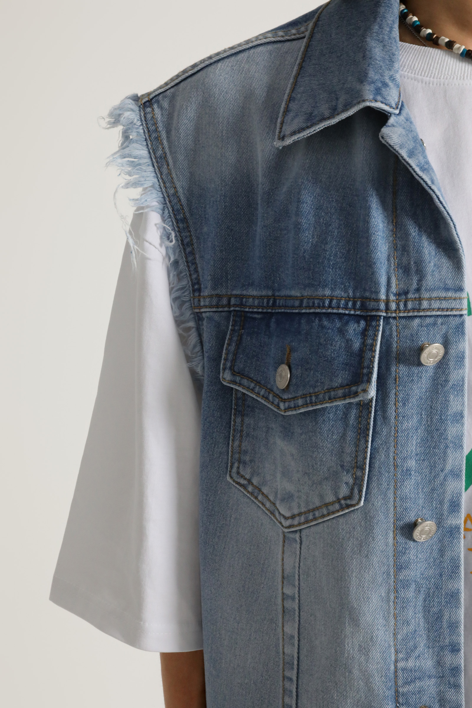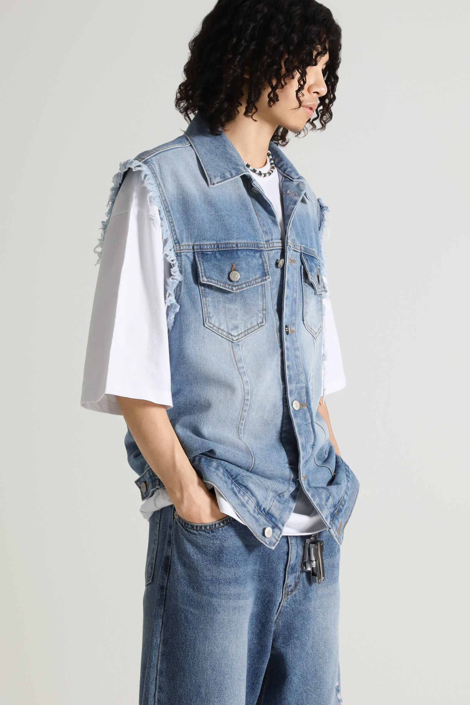 毛邊袖孔和褪色水洗工藝賦予其街頭風和復古氣息。