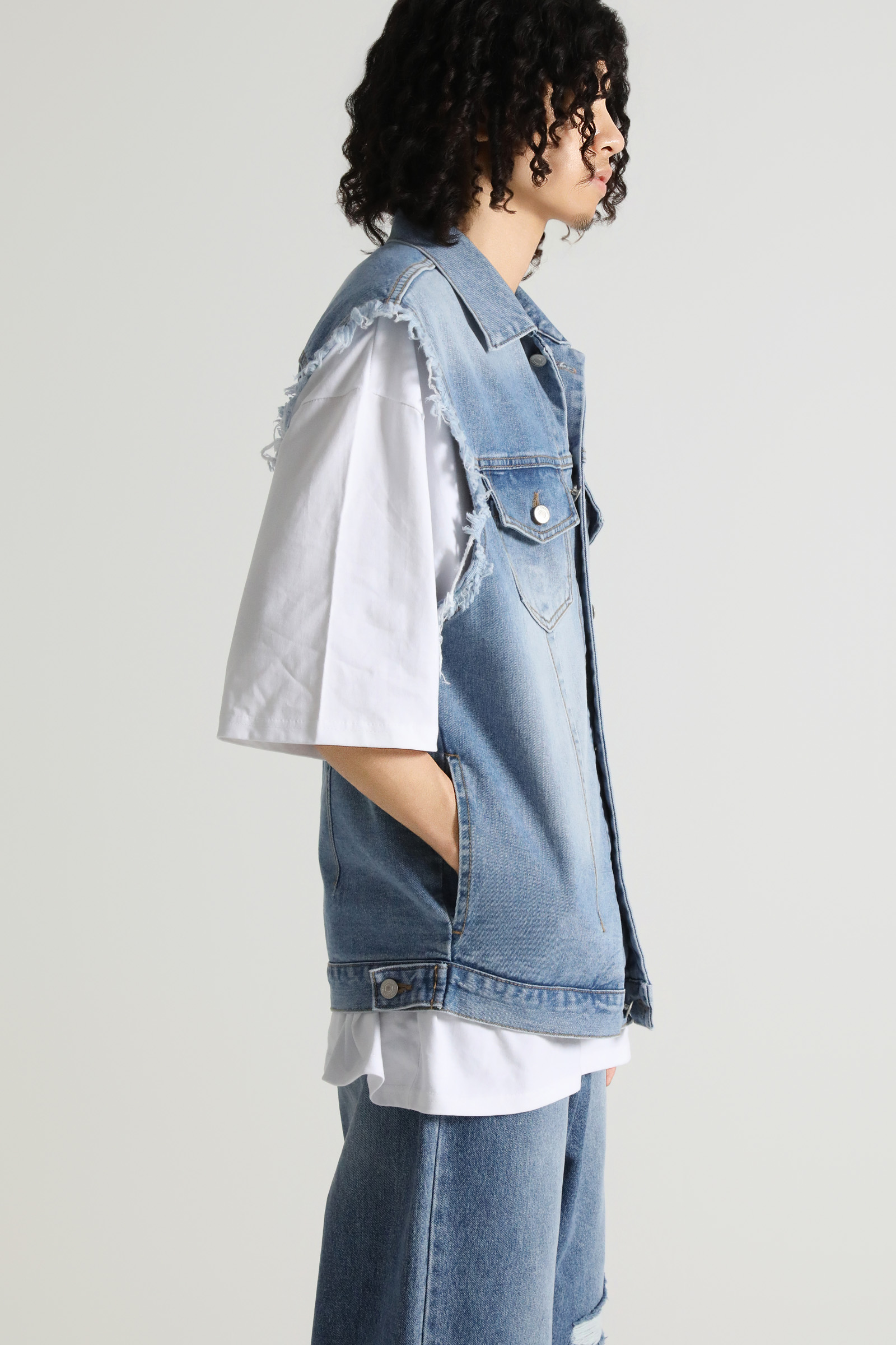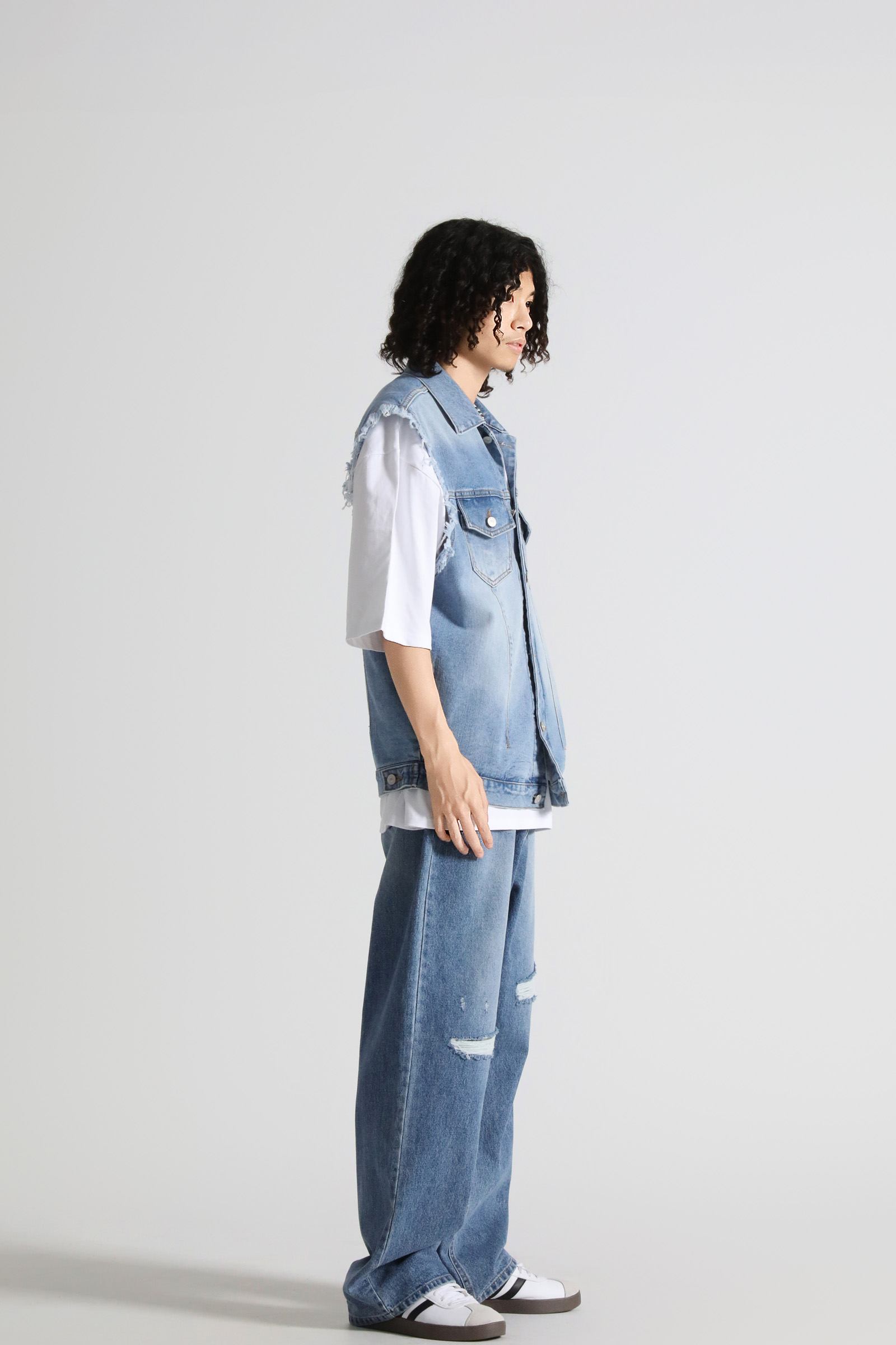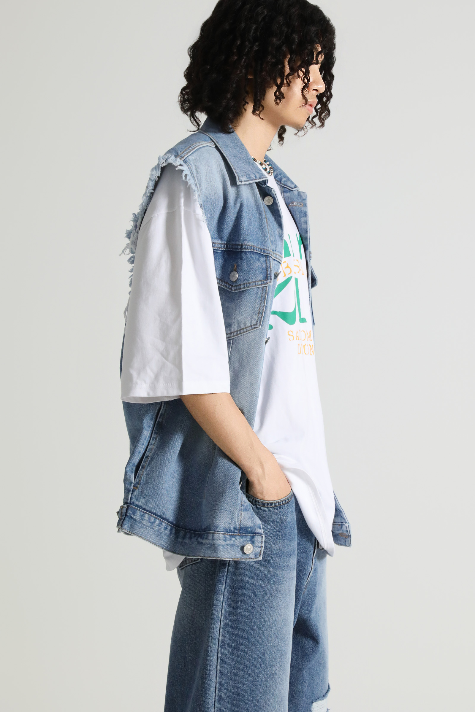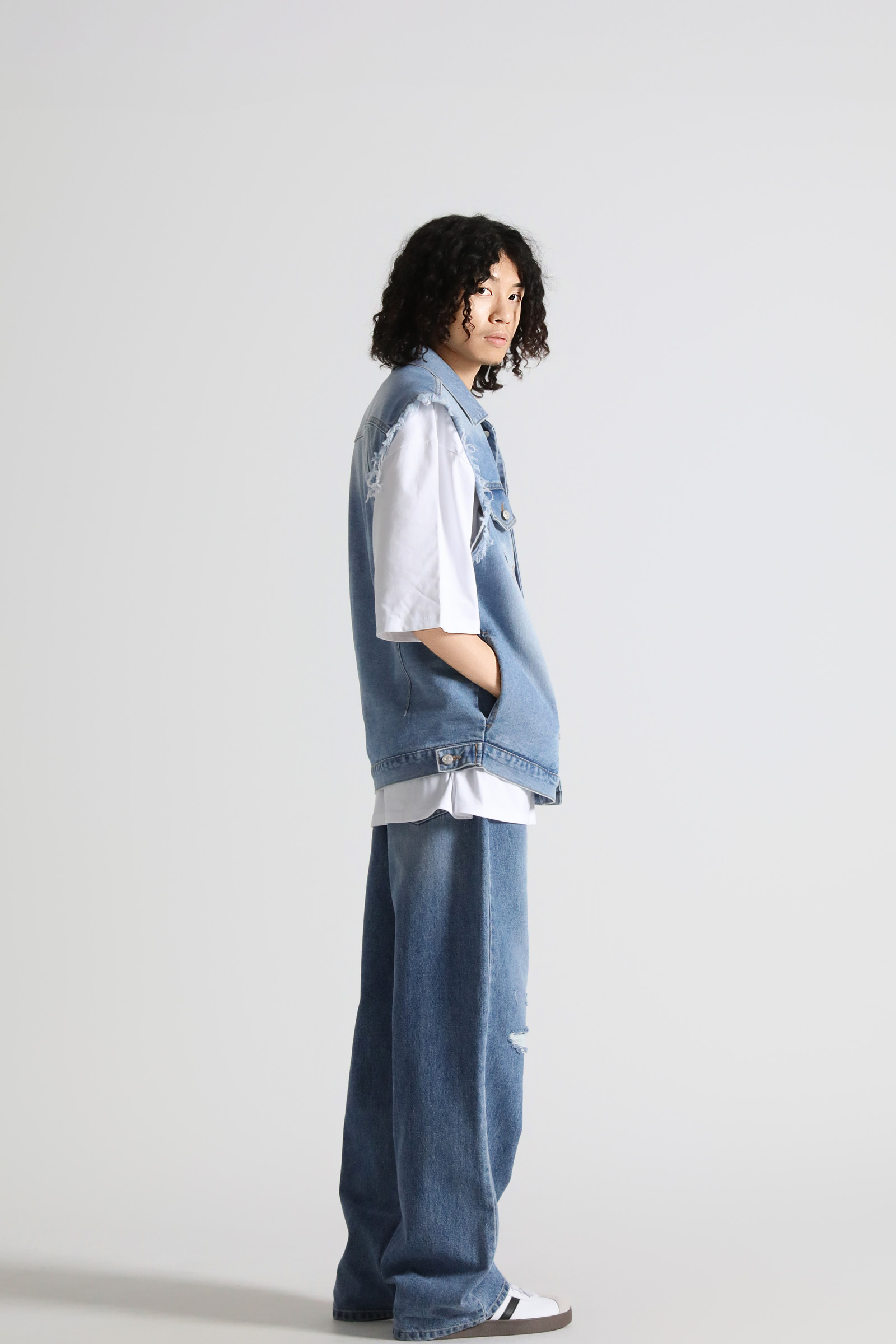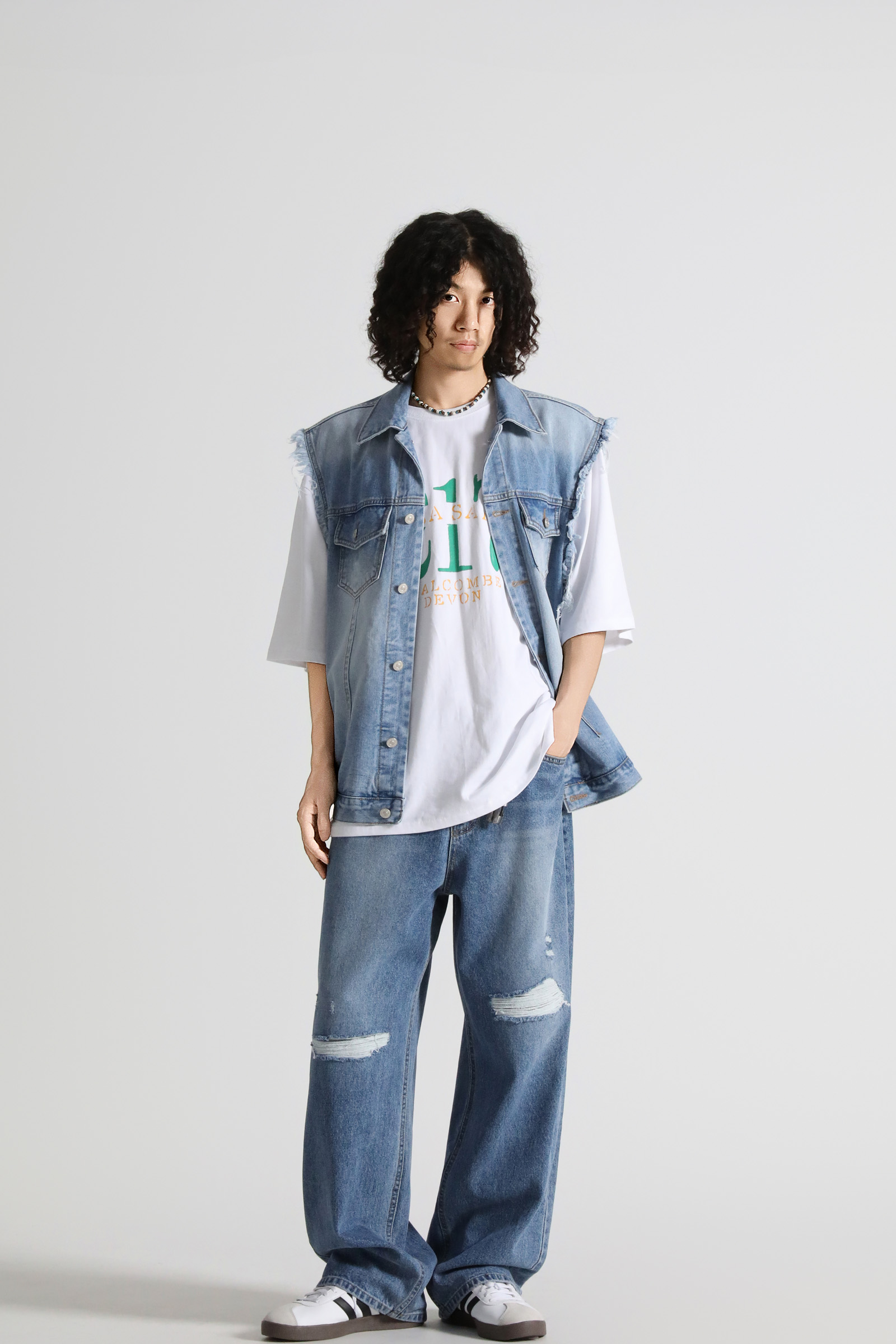 毛邊袖孔和褪色水洗工藝賦予其街頭風和復古氣息。