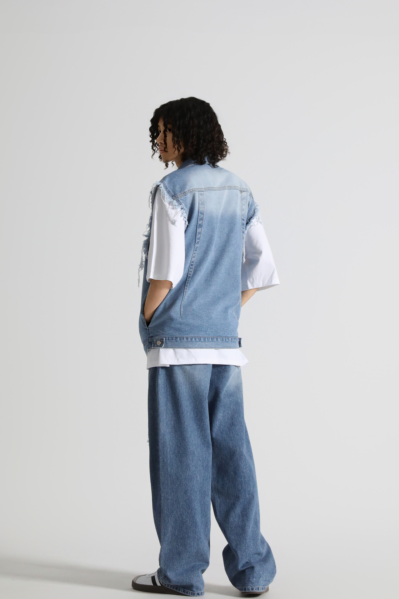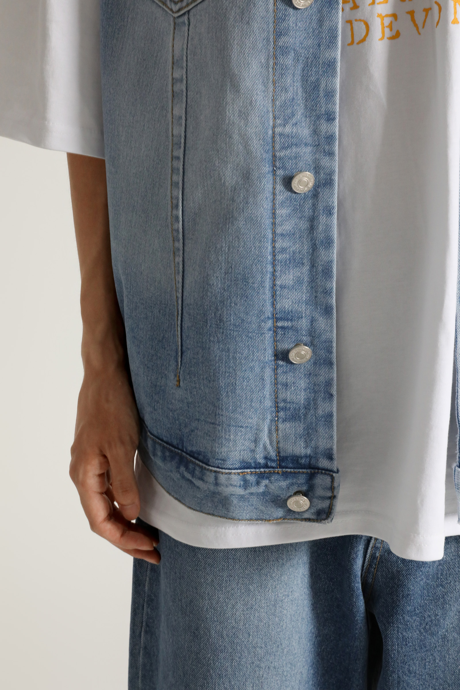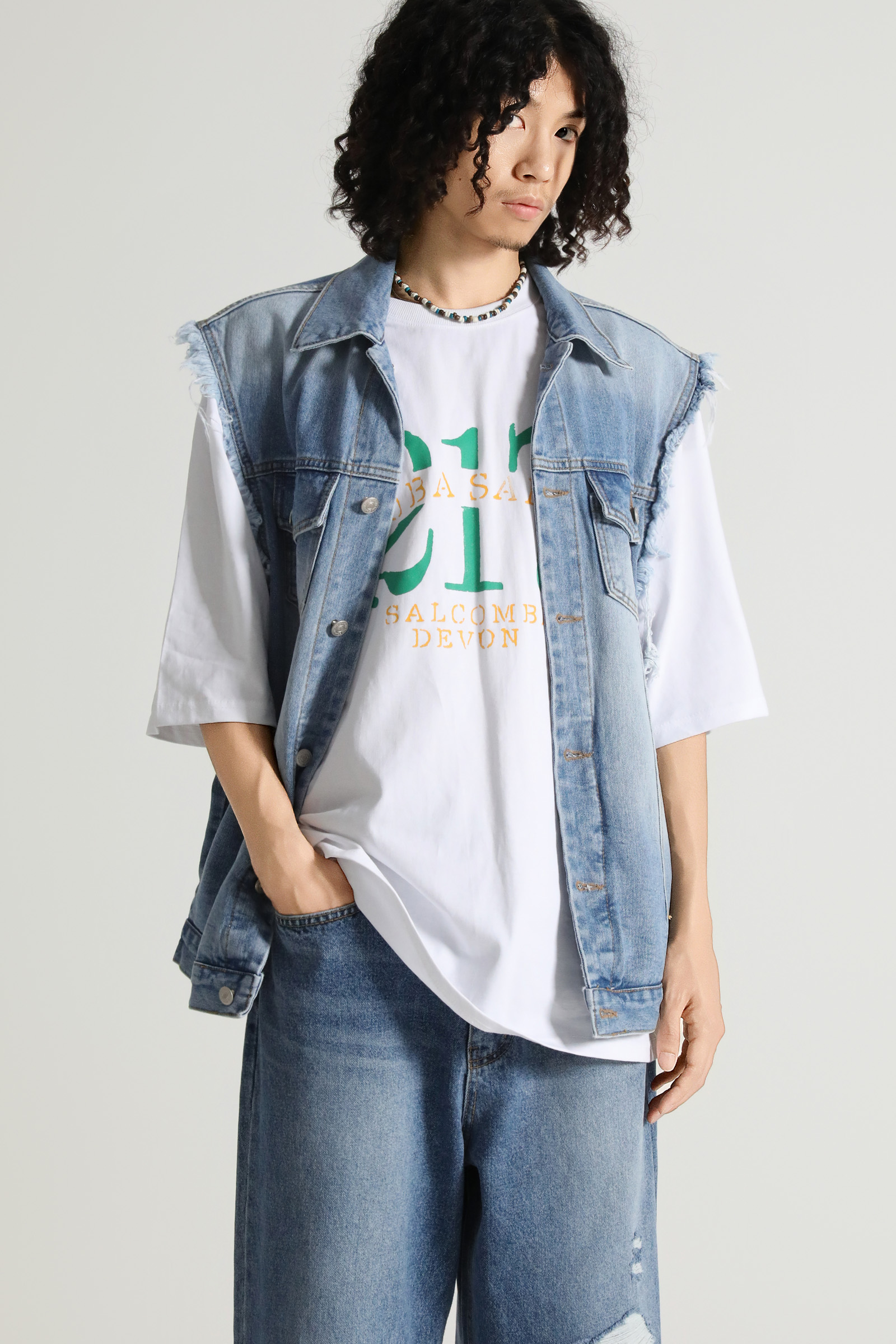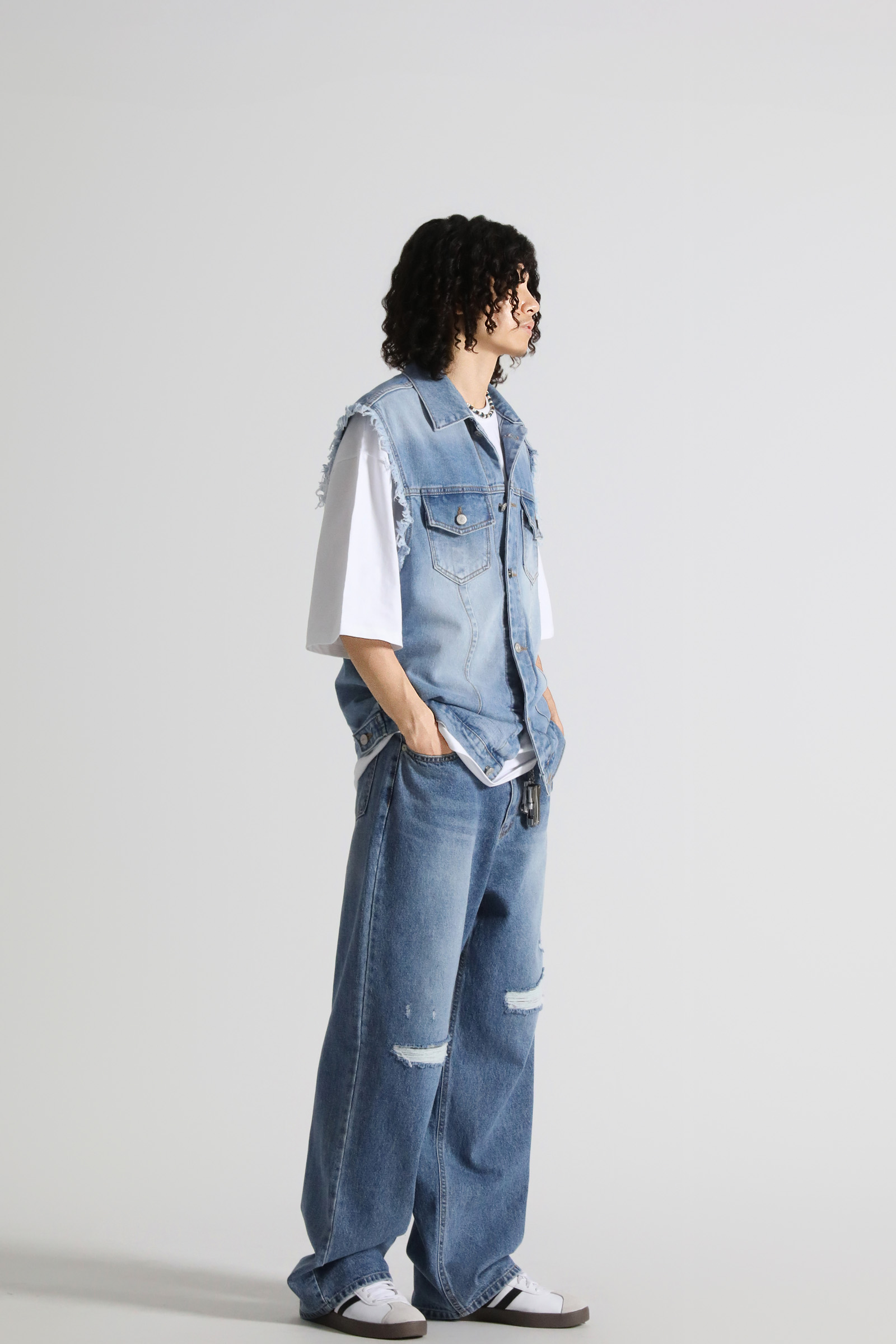 毛邊袖孔和褪色水洗工藝賦予其街頭風和復古氣息。