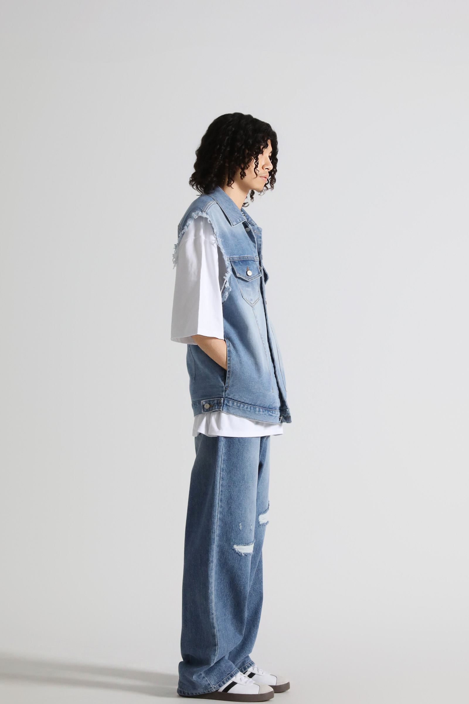 這款牛仔背心易於套穿,可輕鬆搭配無袖或短袖上衣。