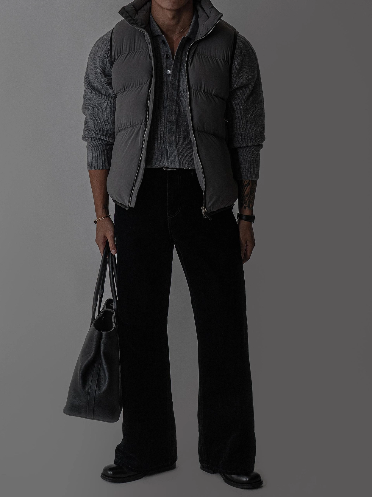 下裝 - ikkei PRODUCT 天鵝絨闊腿牛仔褲