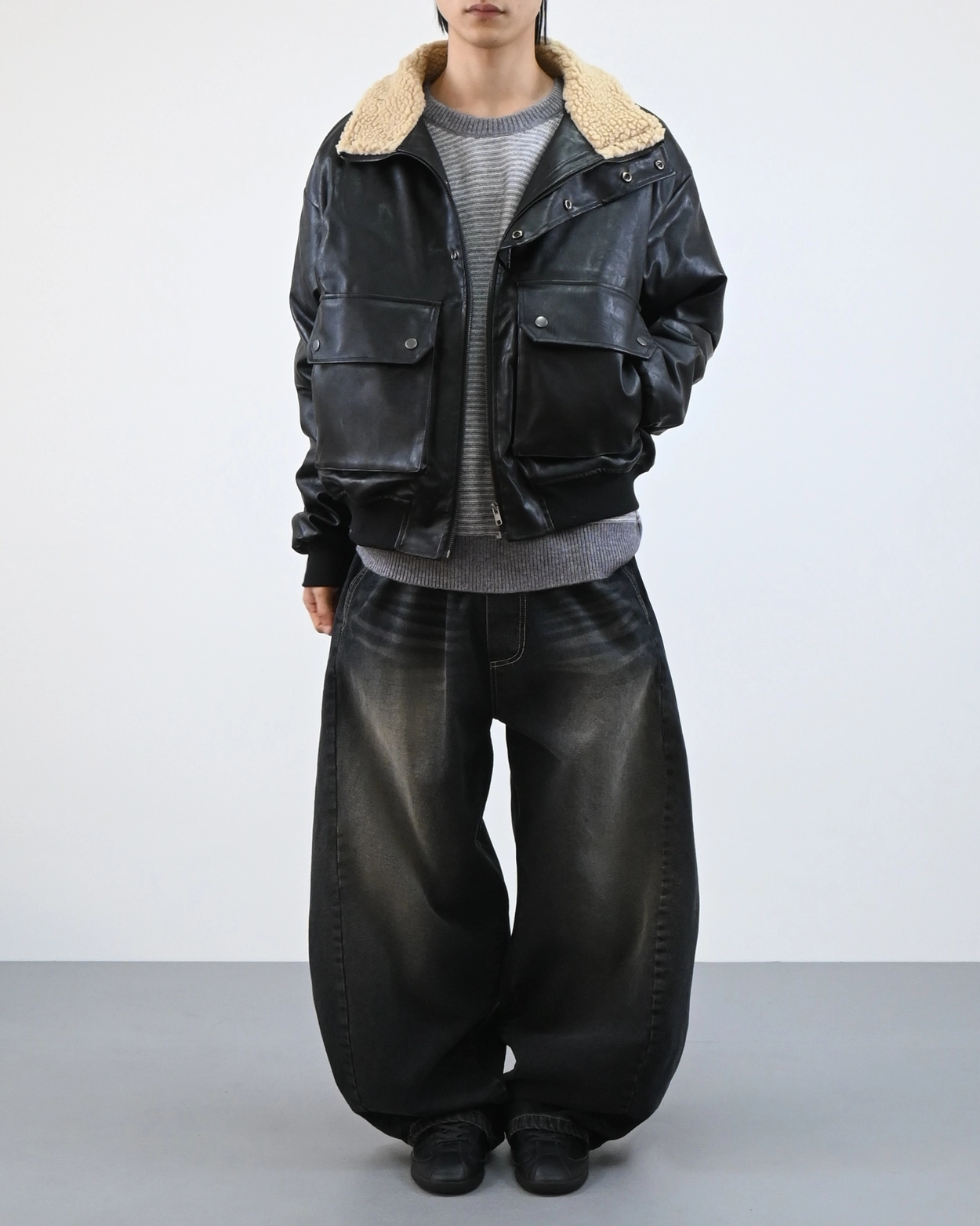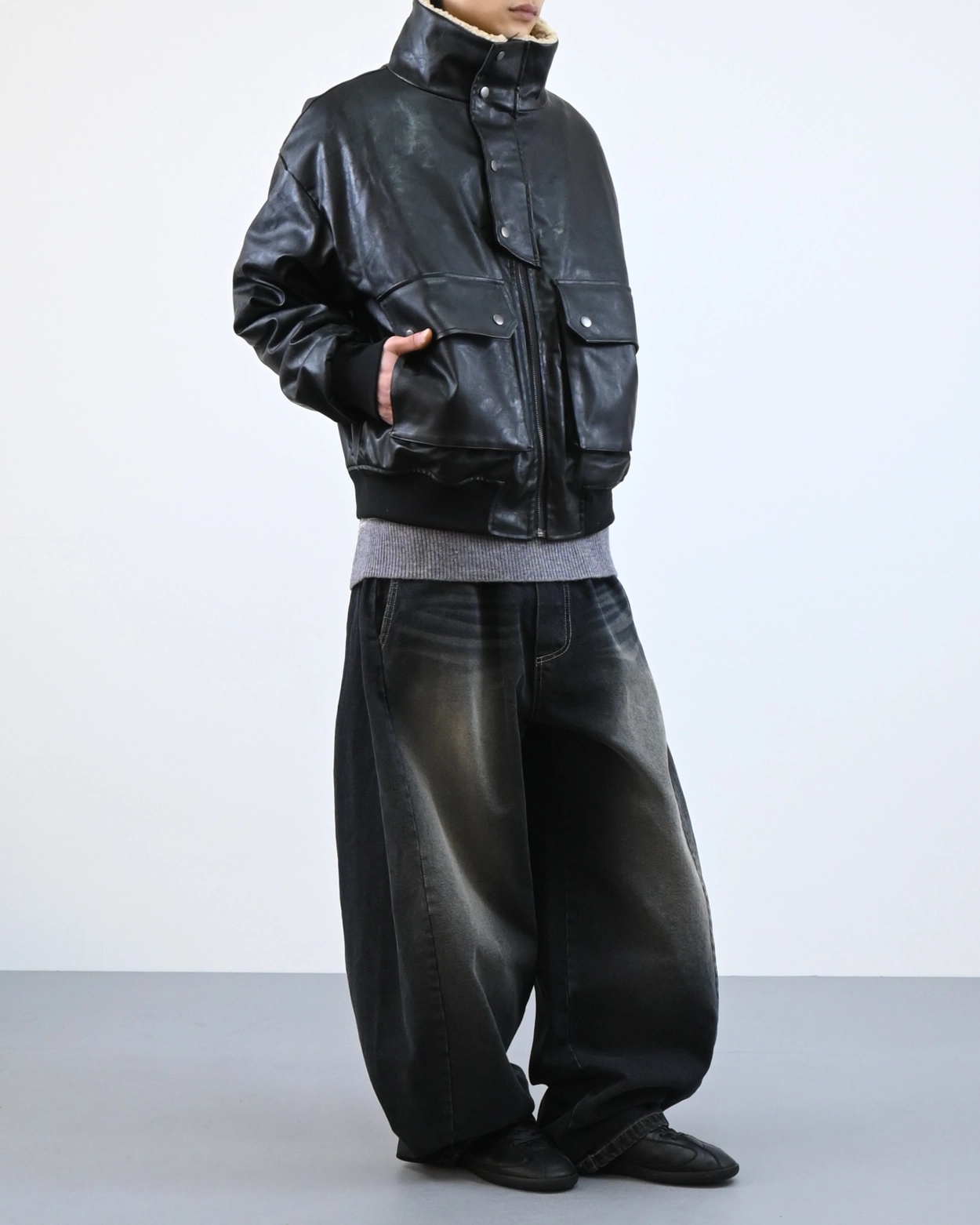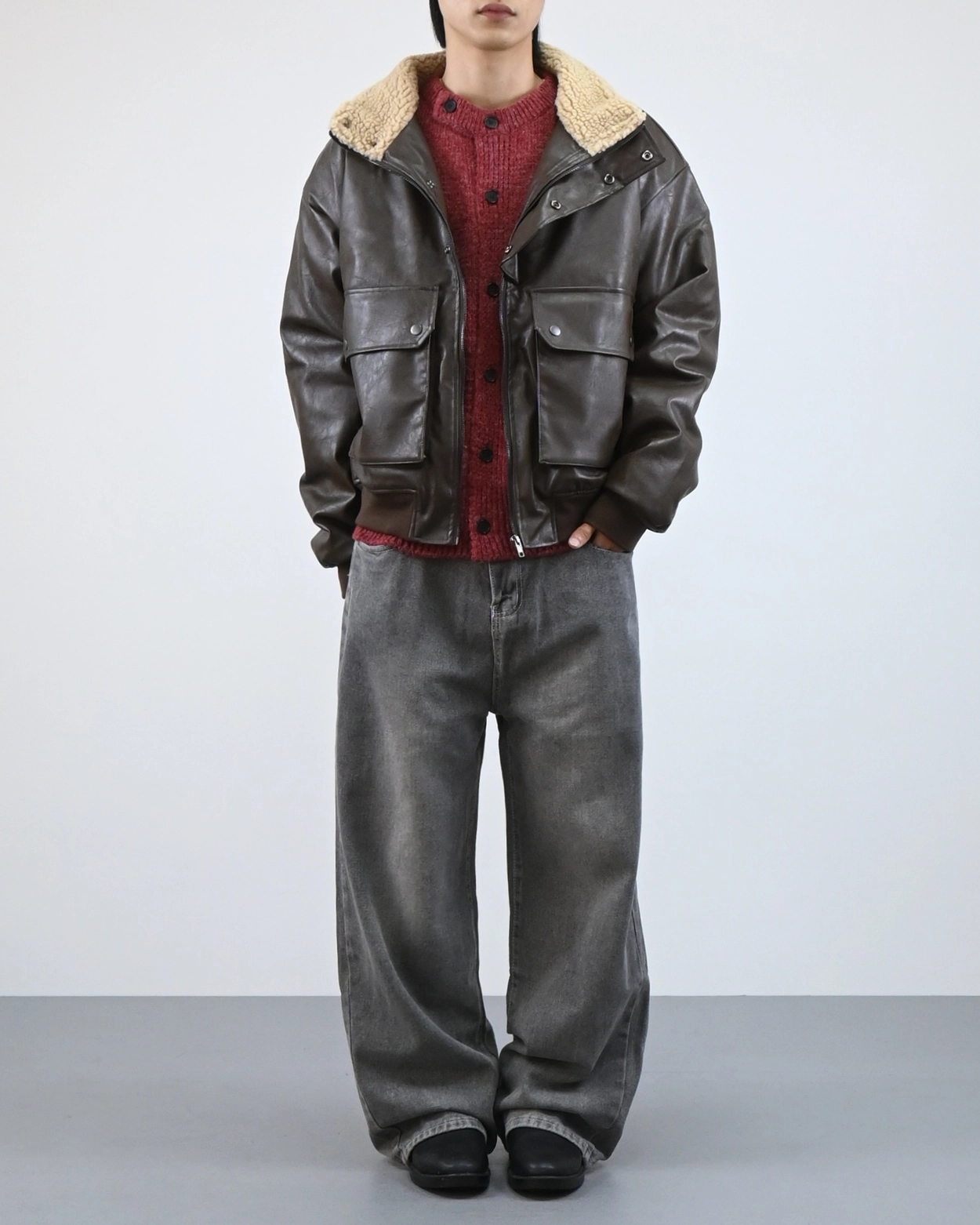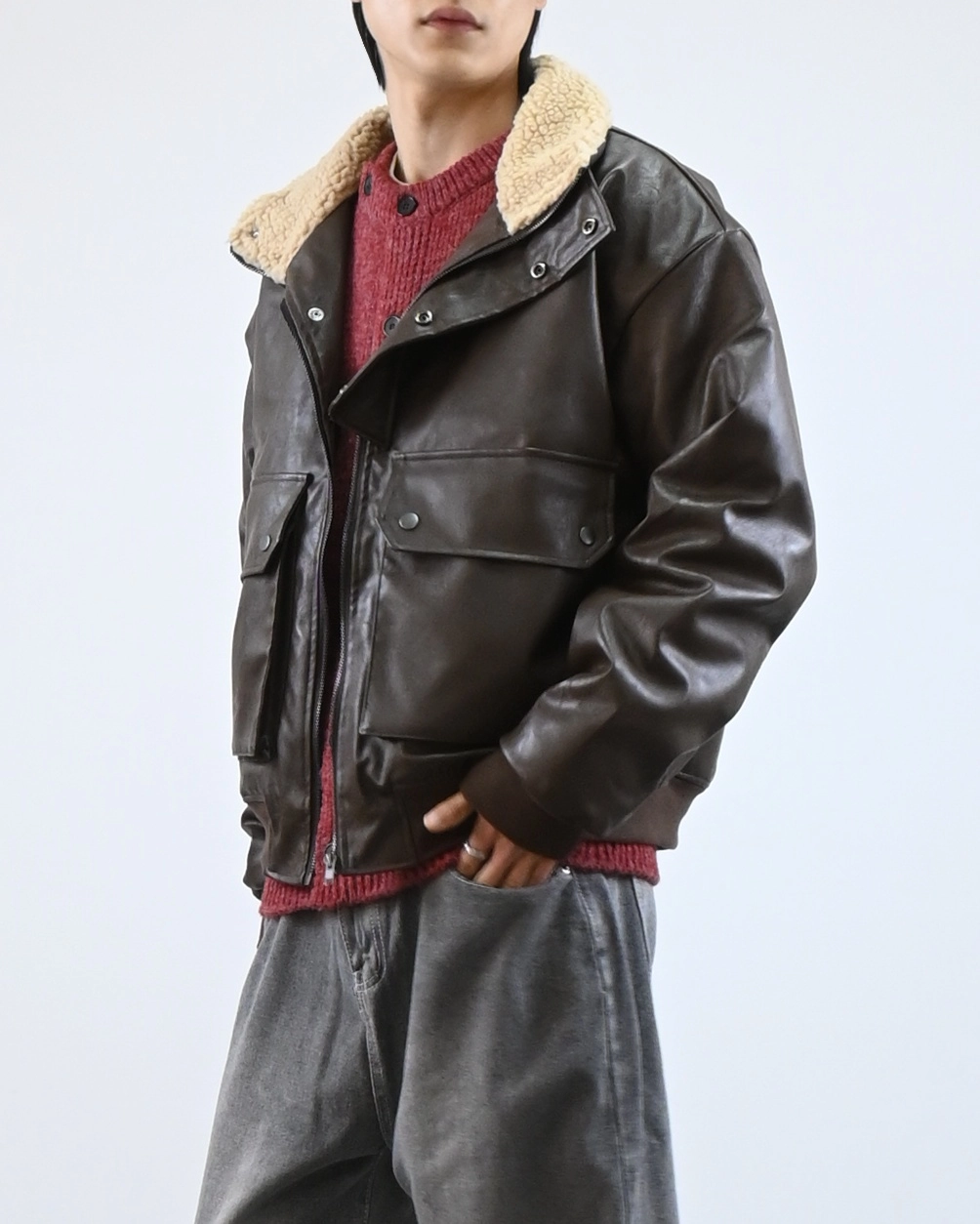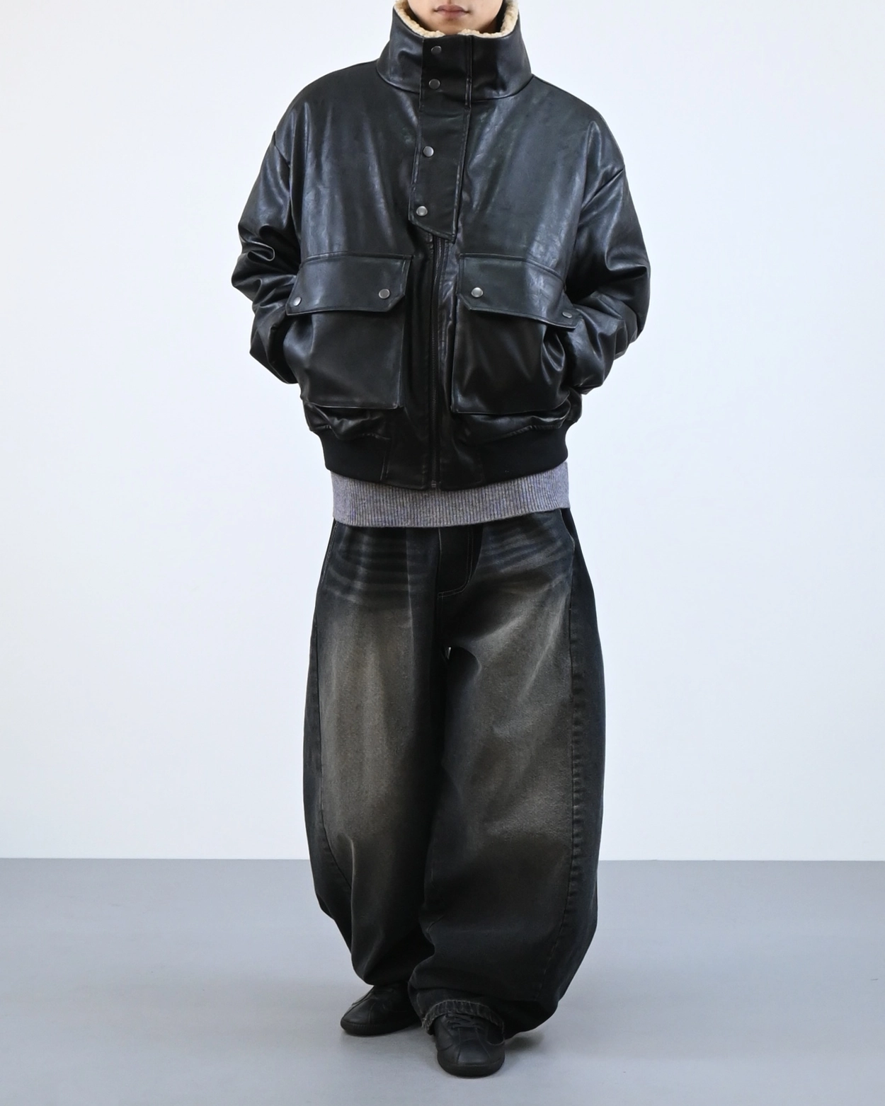 外套採用寬鬆版型設計,方便疊穿冬季毛衣。