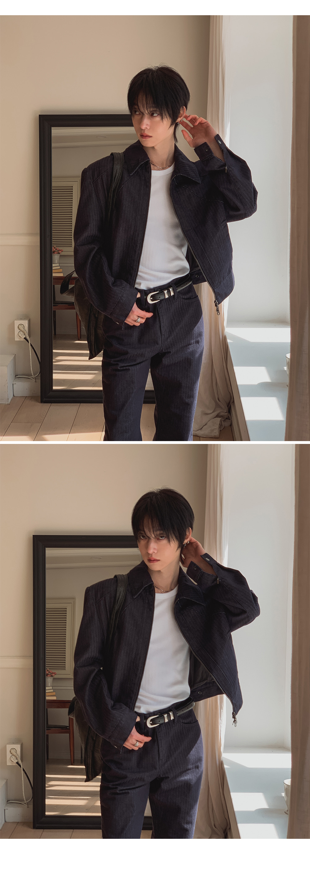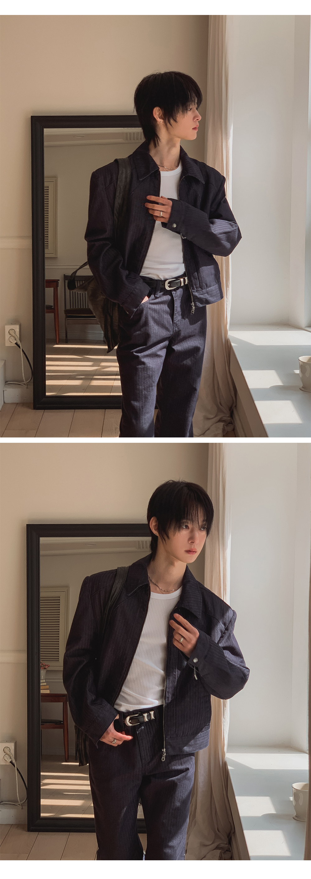 ✔ 立體斜紋織法融合了牛仔的粗獷優雅與經典氣質。