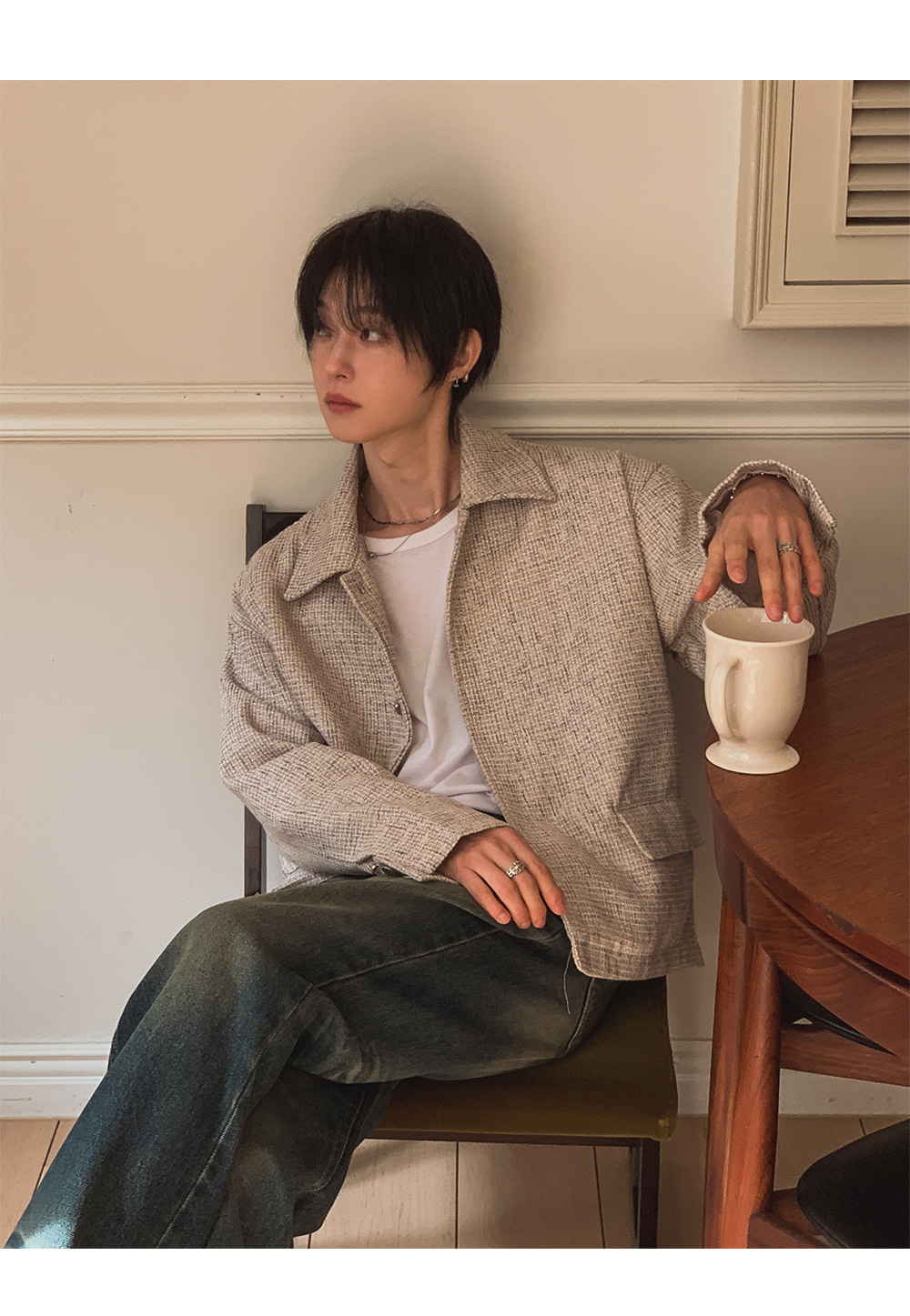 - 簡約的領口設計,方便搭配內搭,打造百變造型