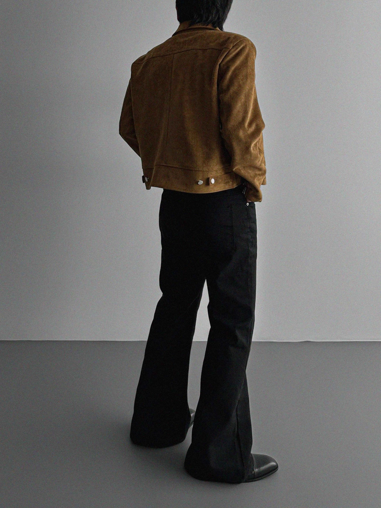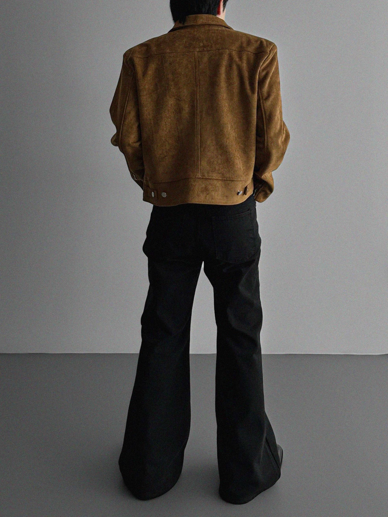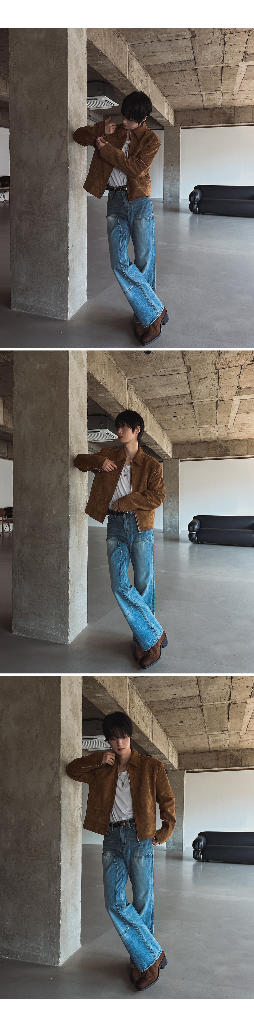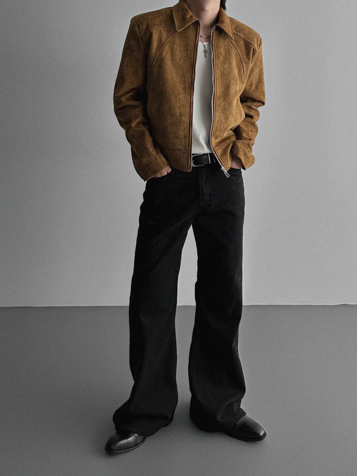 - 這款拉鍊夾克採用麂皮絨布料,營造奢華質感。