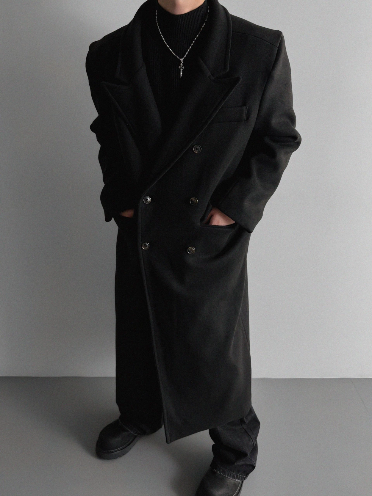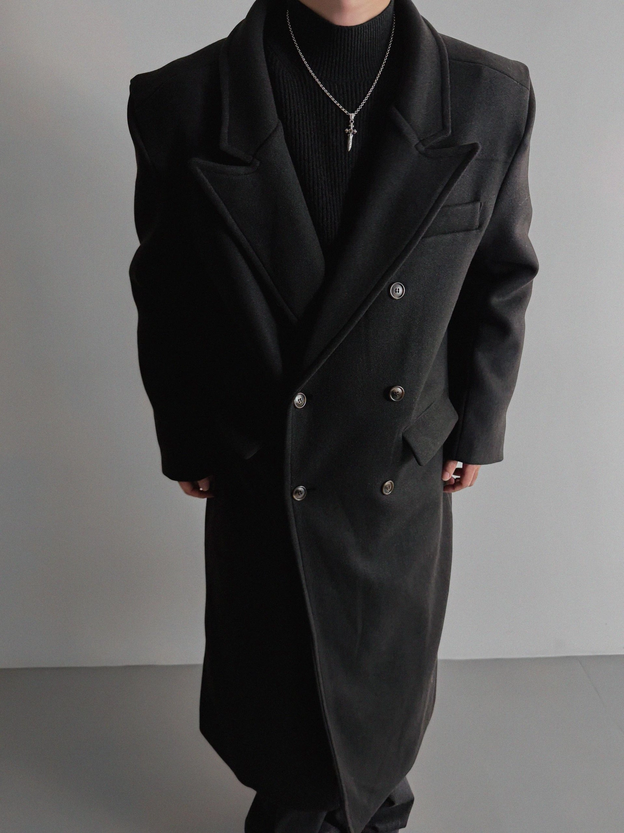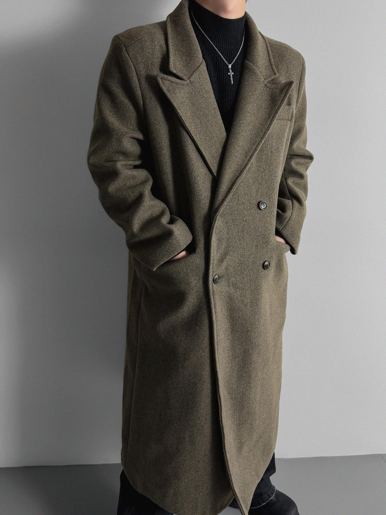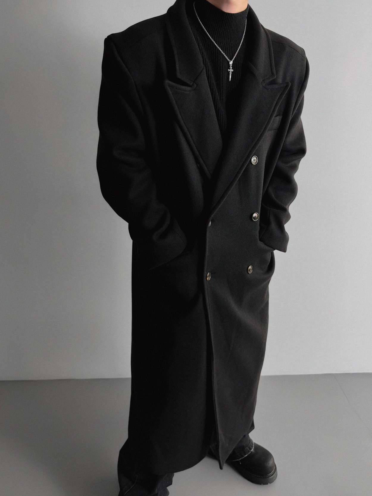 - 厚實長版大衣