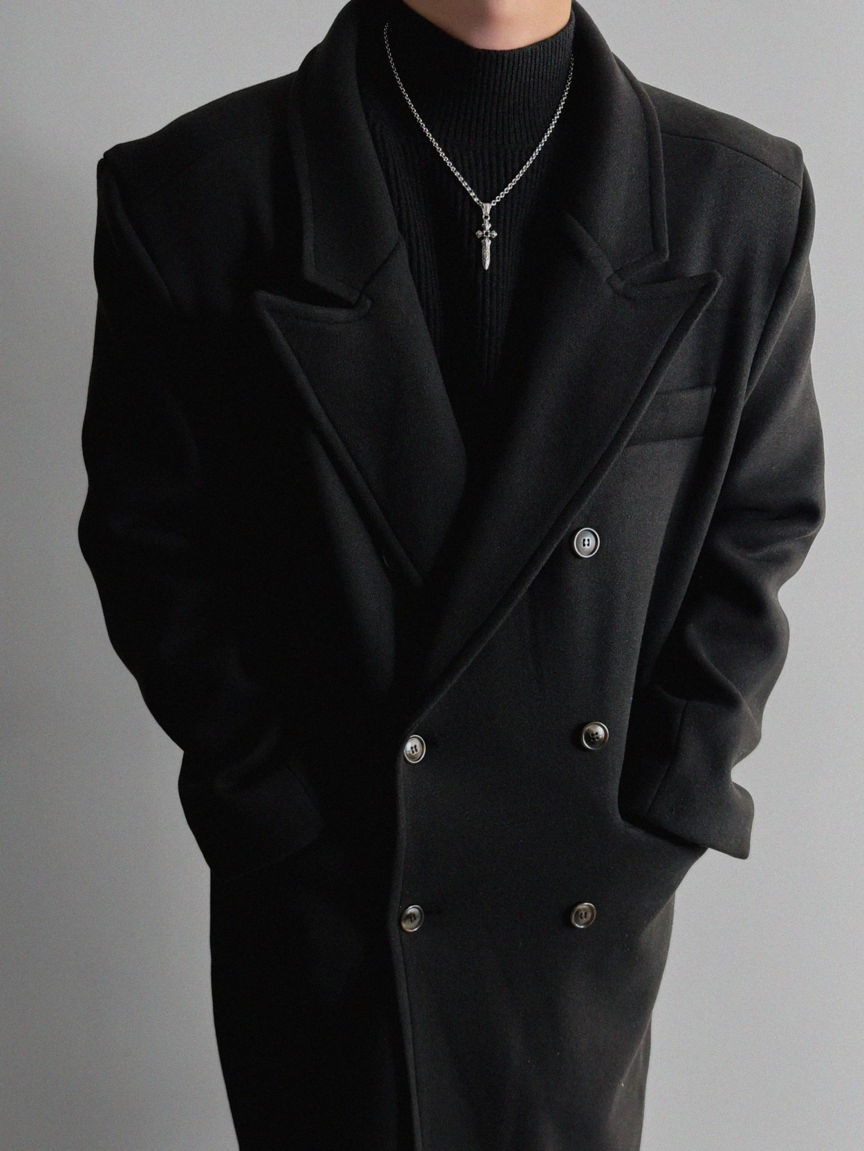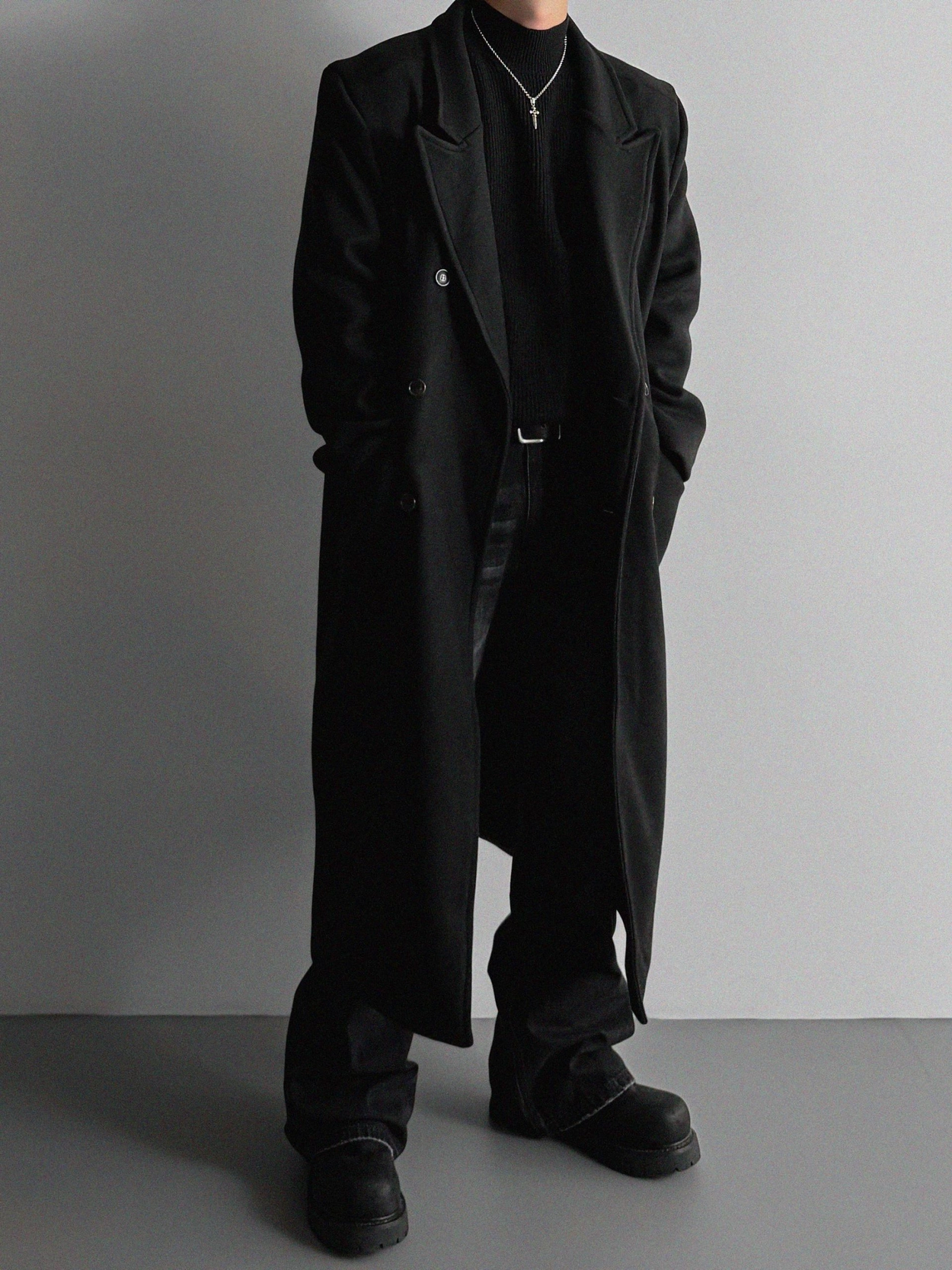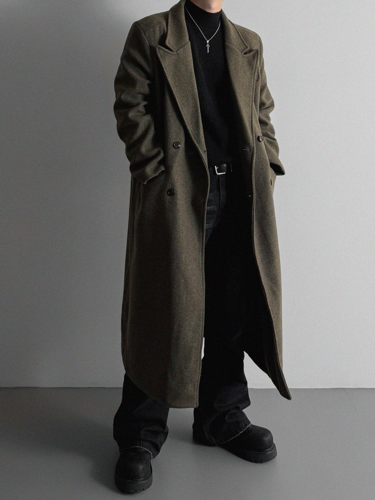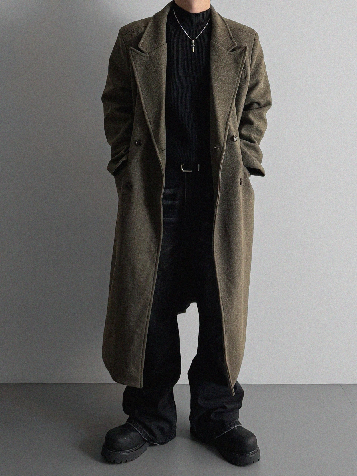 - 厚實長版大衣