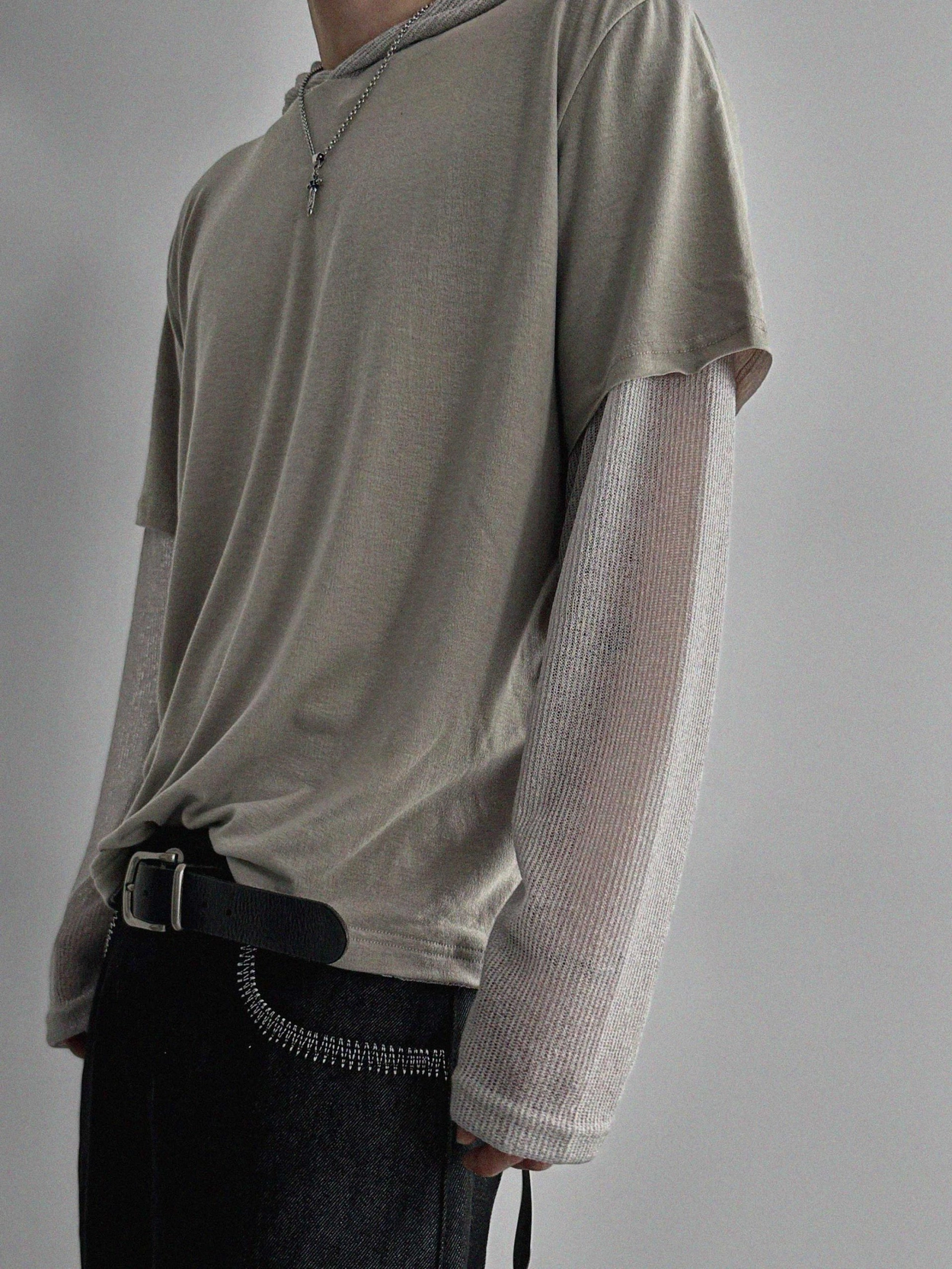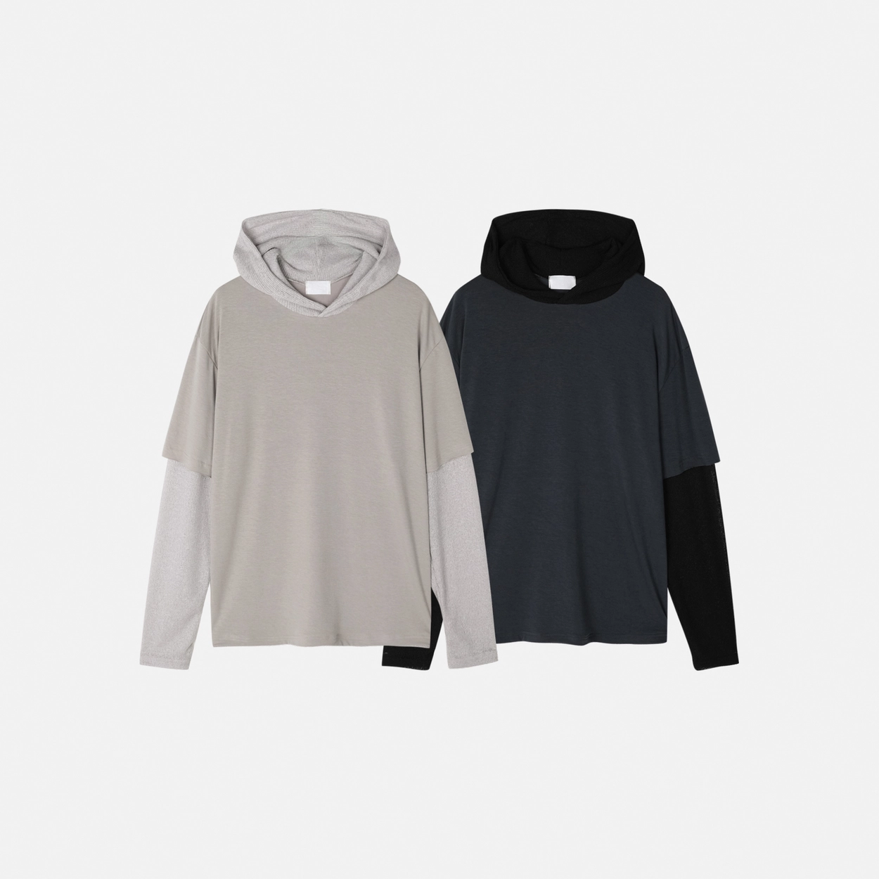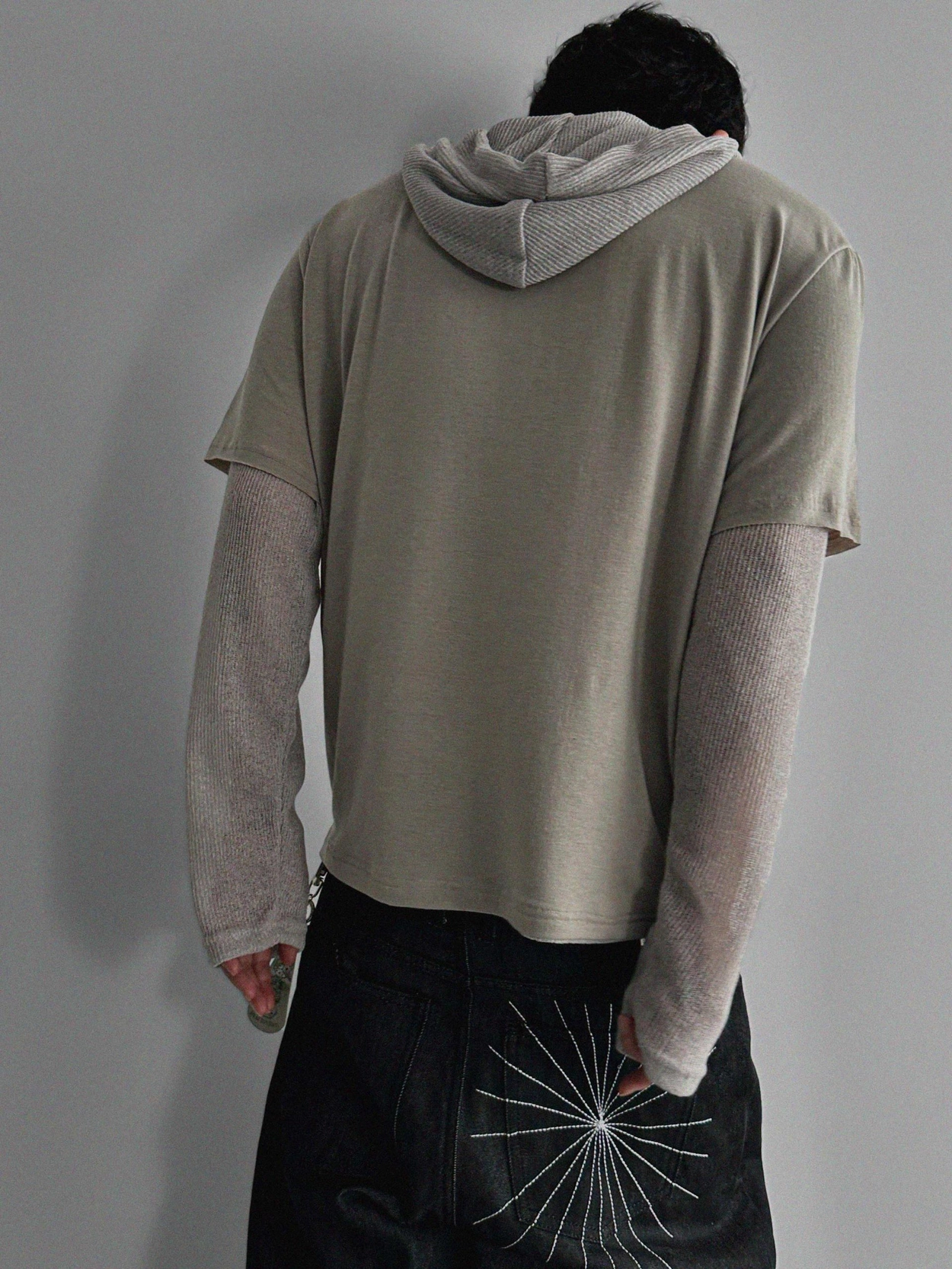 - 袖子、帽子和下擺飾有薄針織層疊裝飾