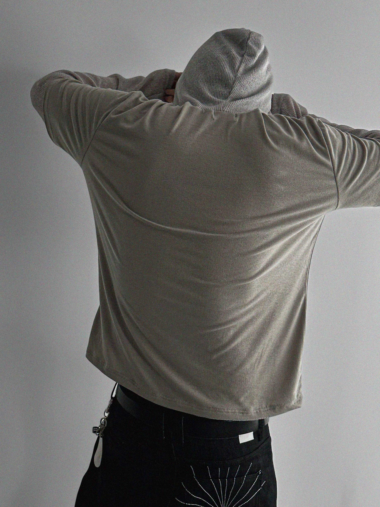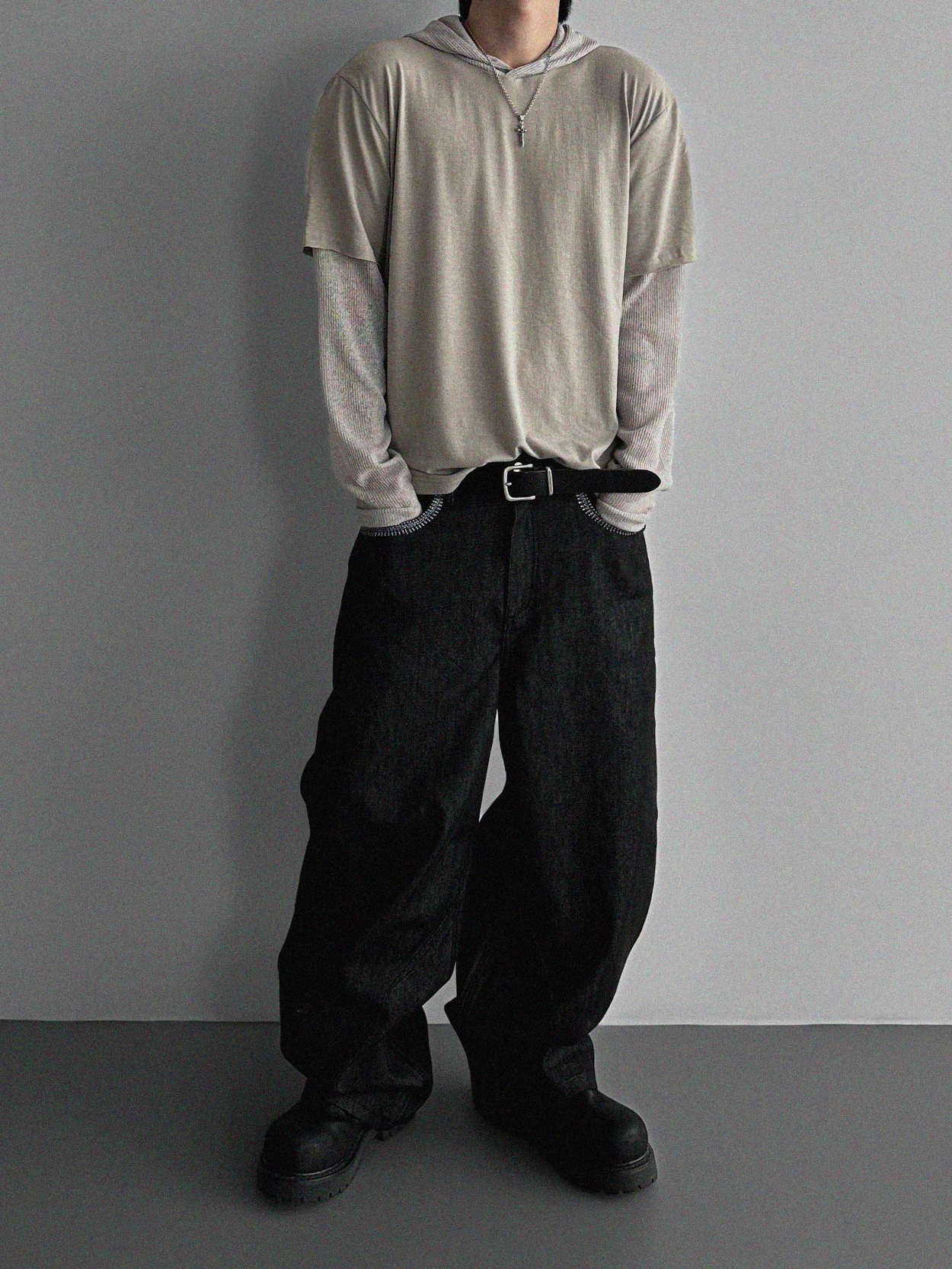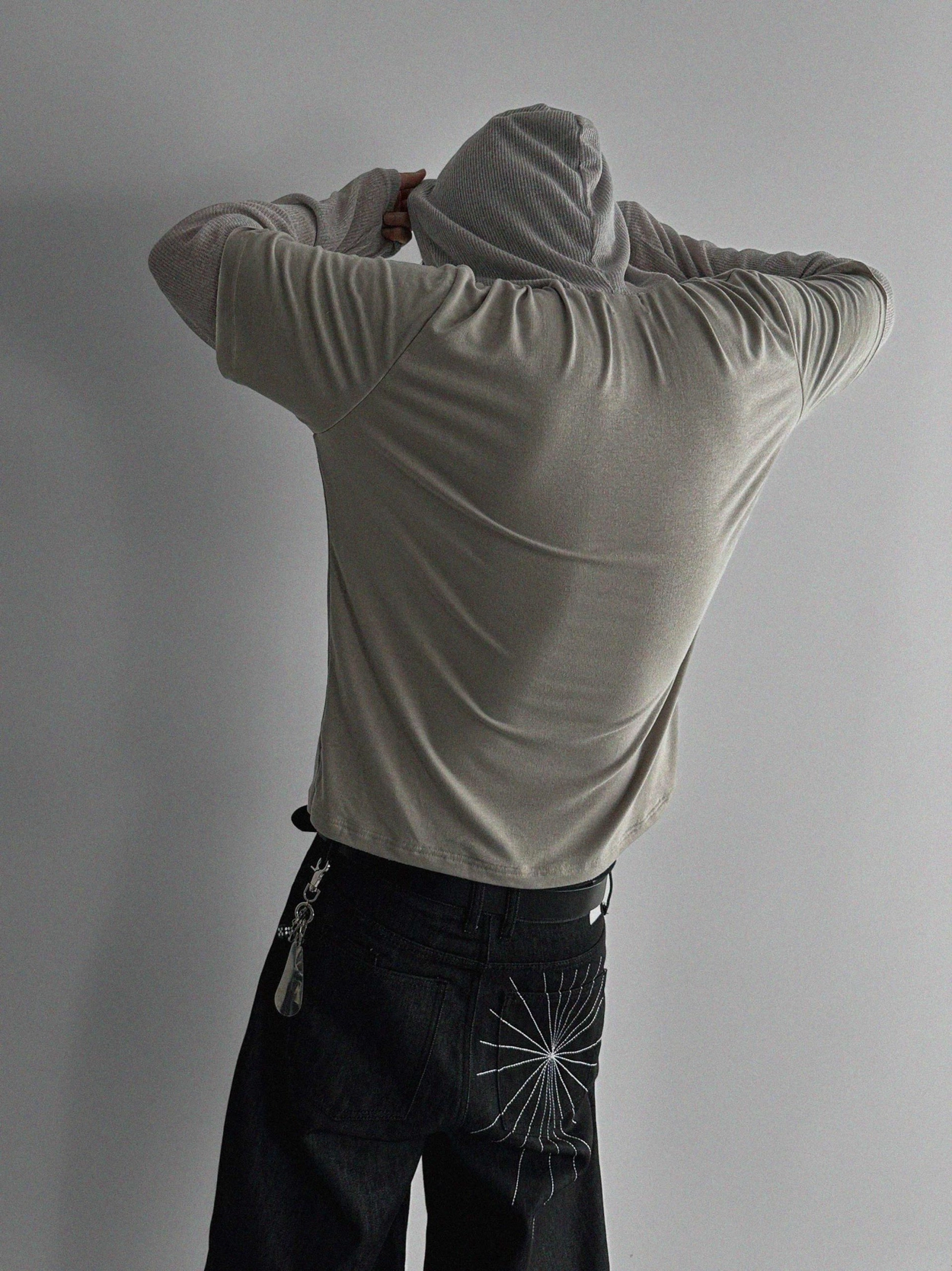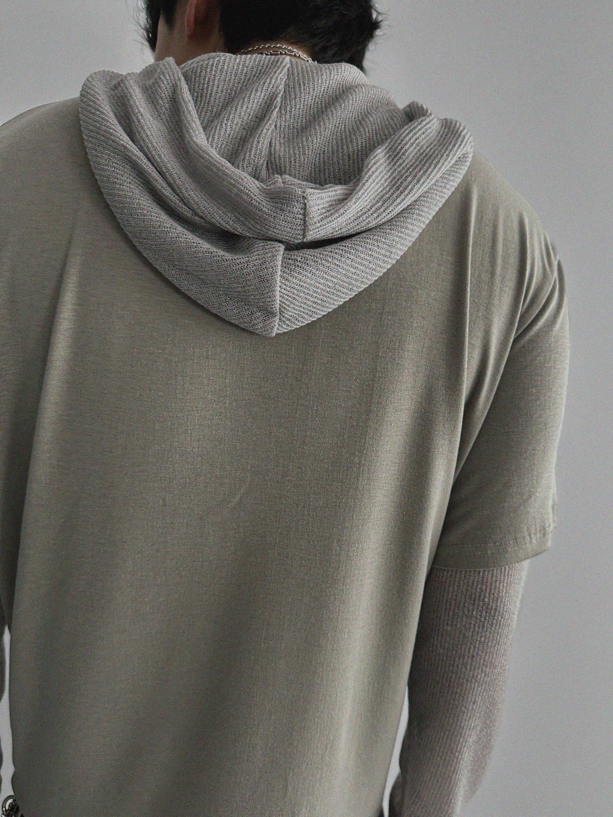 - 袖子、帽子和下擺飾有薄針織層疊裝飾