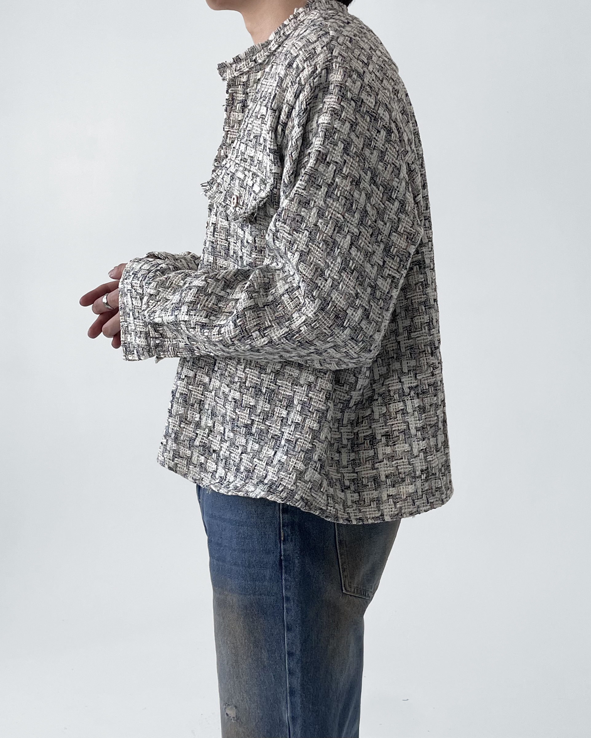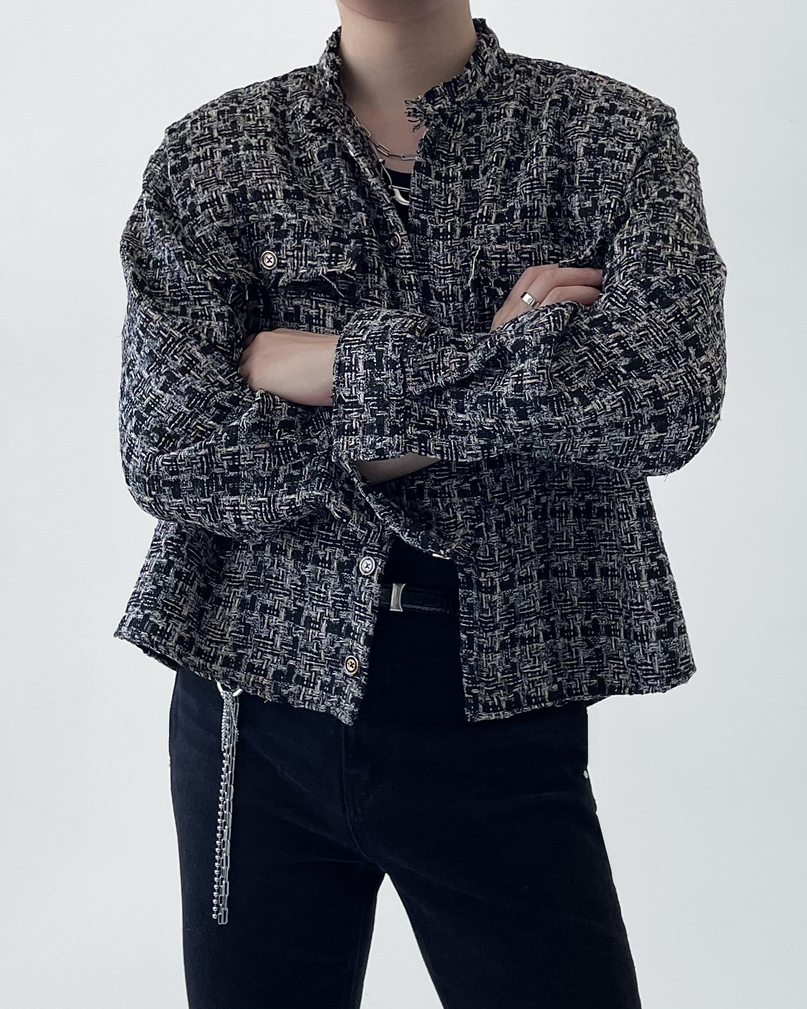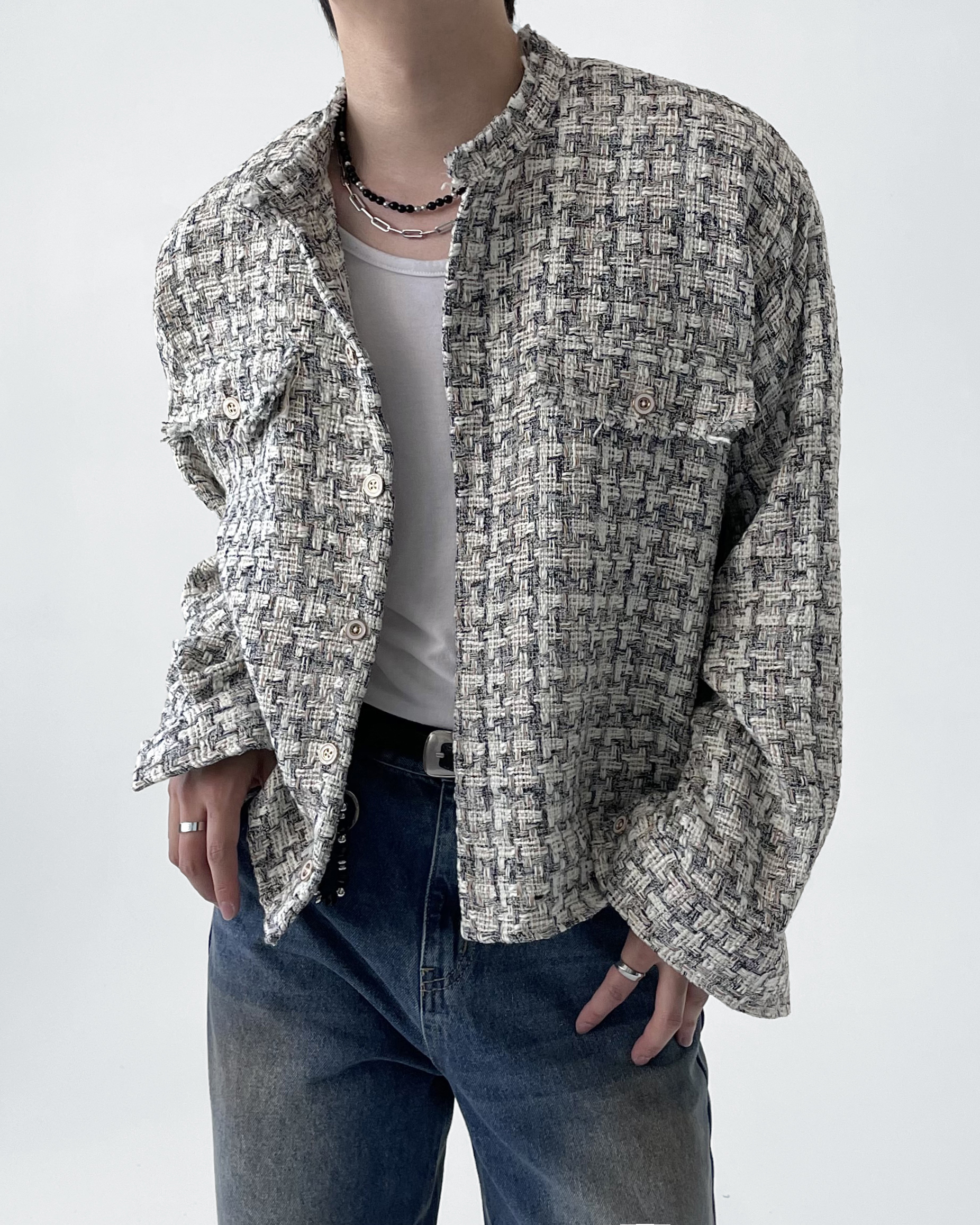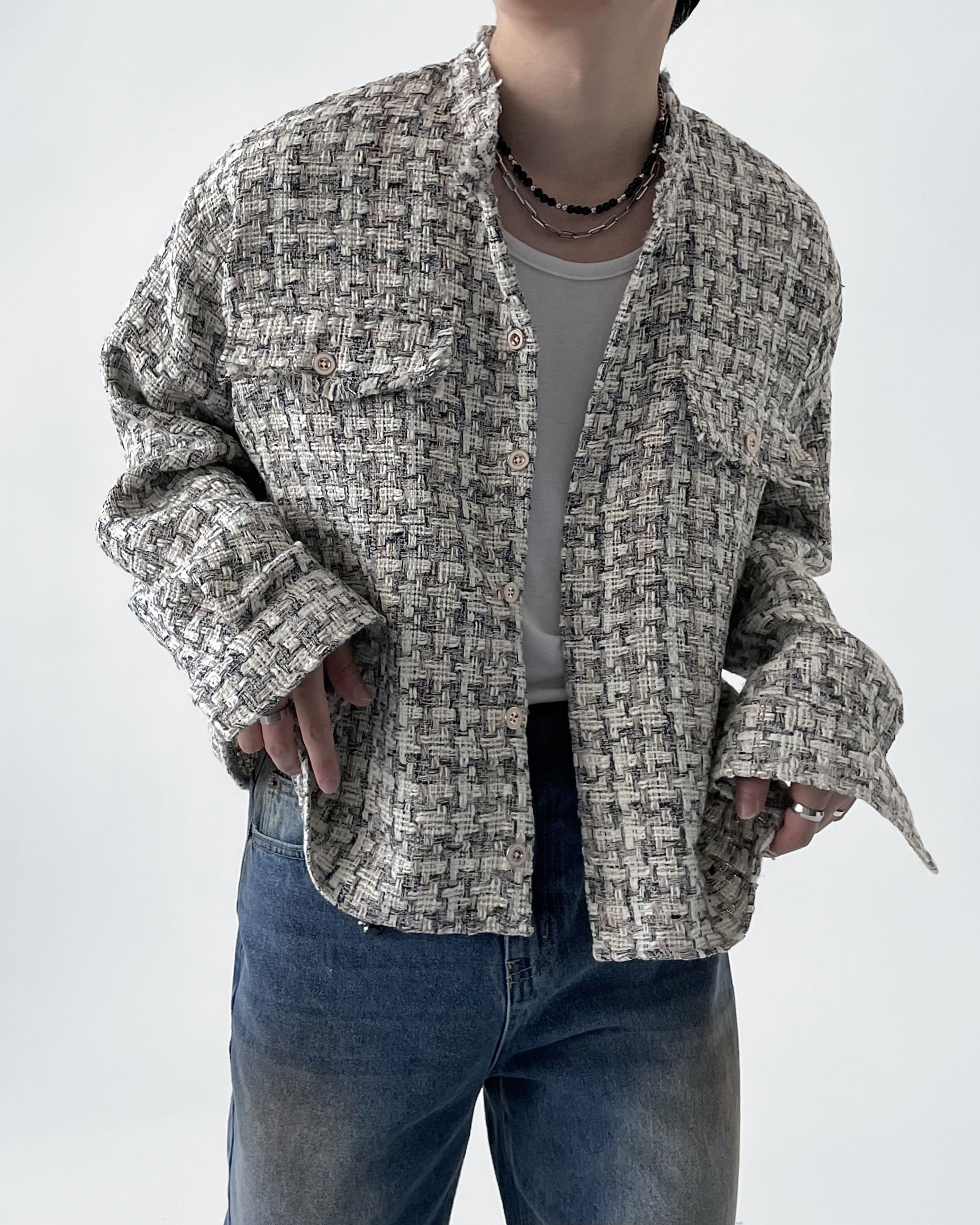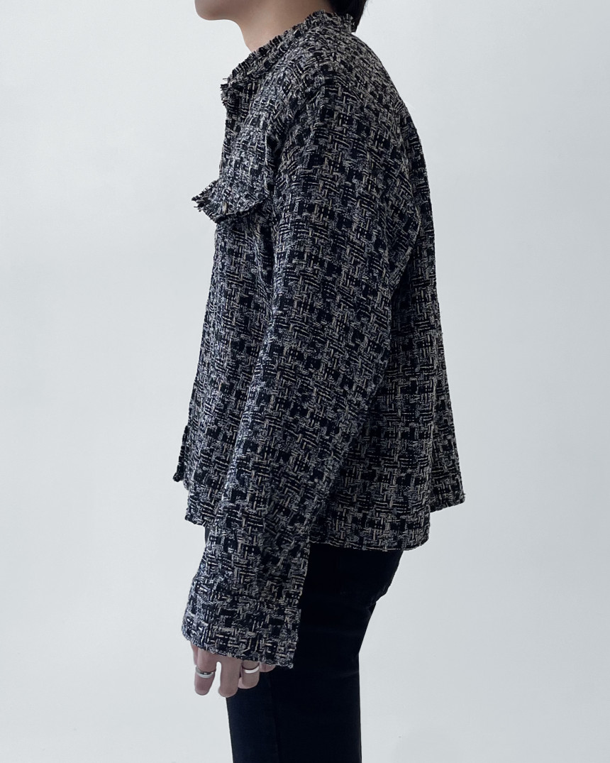 這款粗花呢襯衫外套採用略帶粗糙質感的面料,