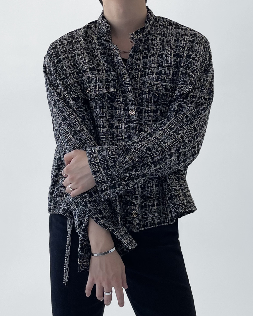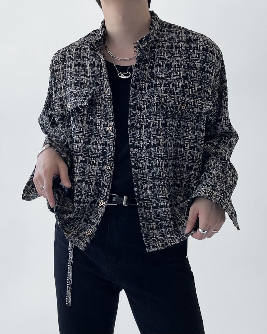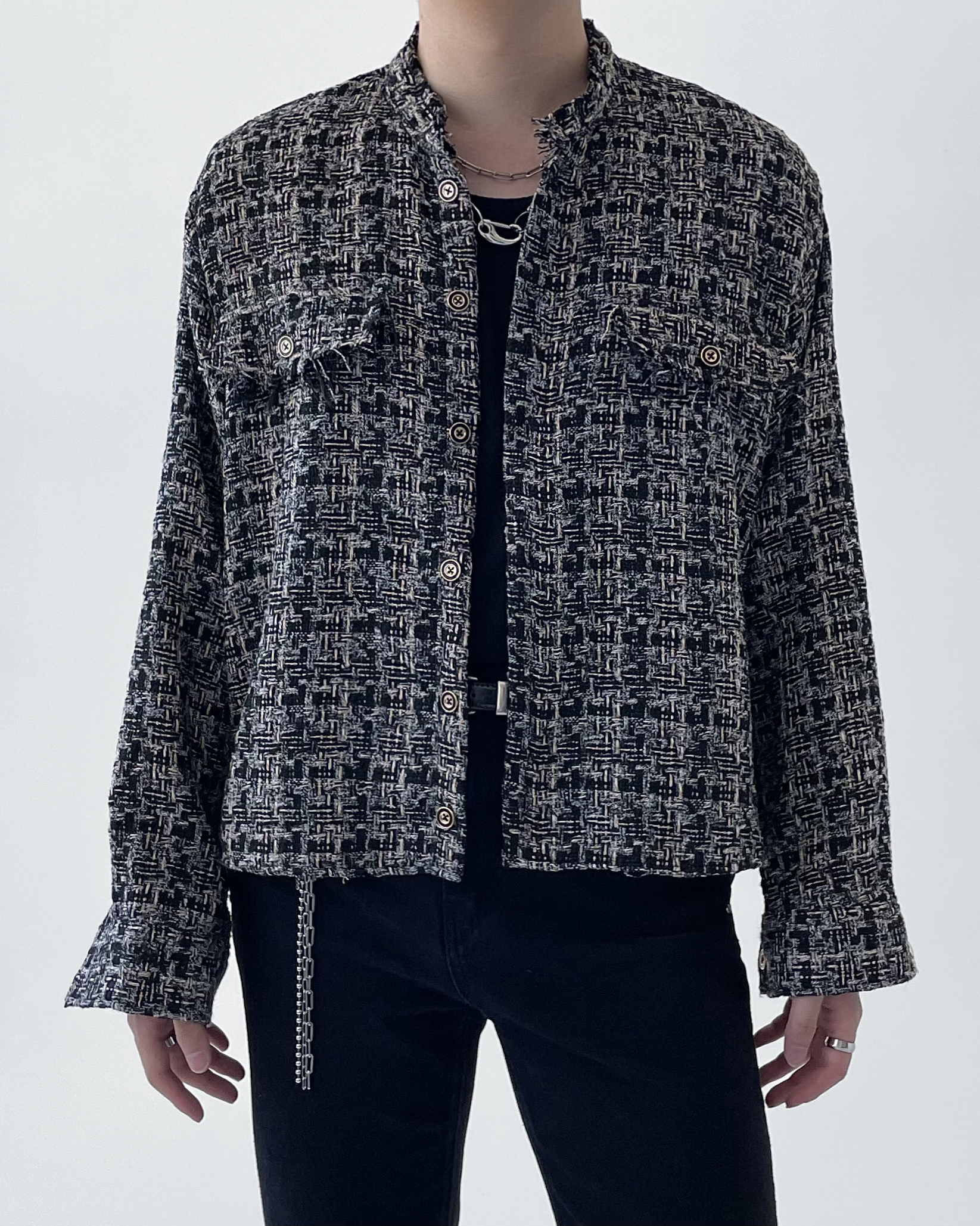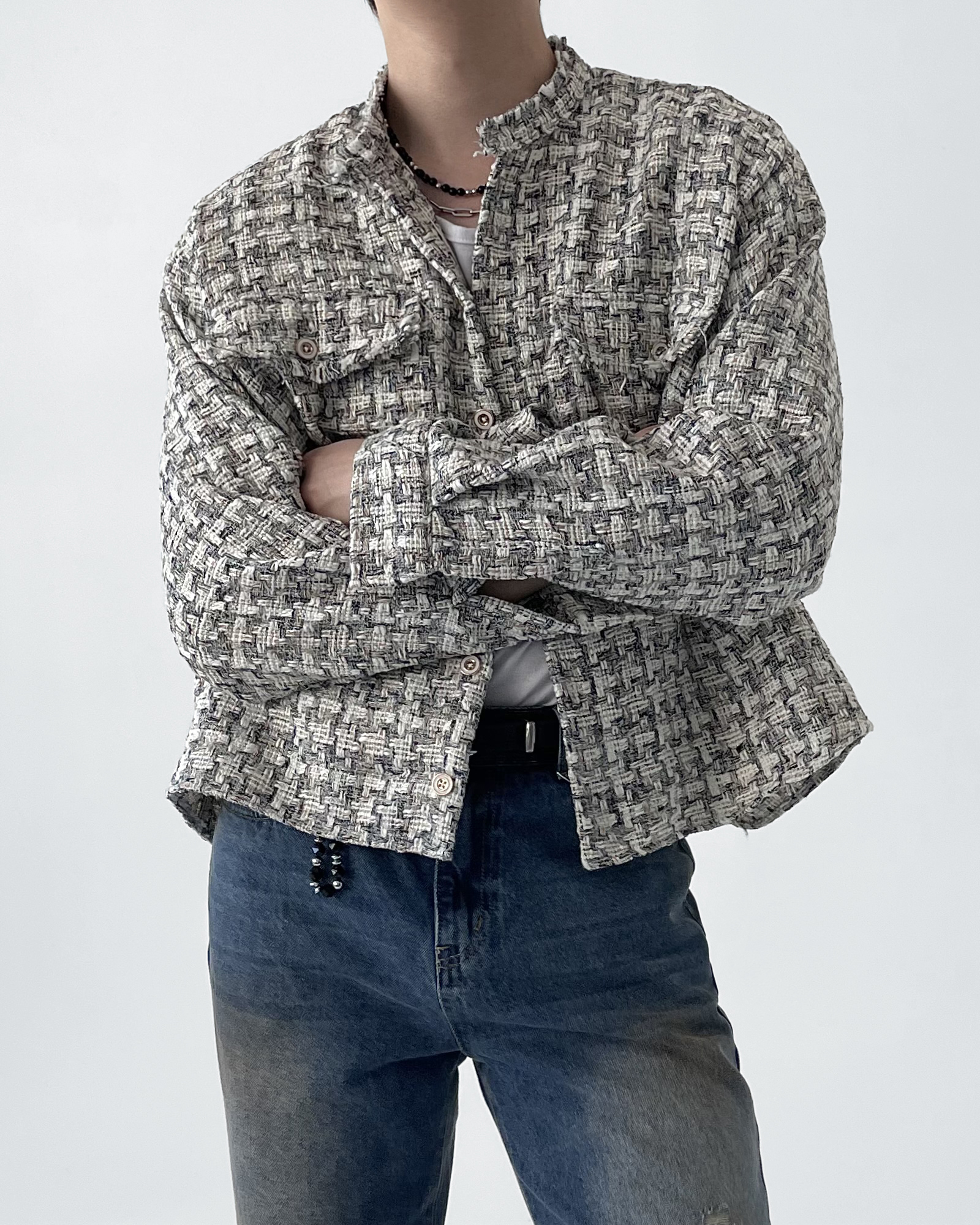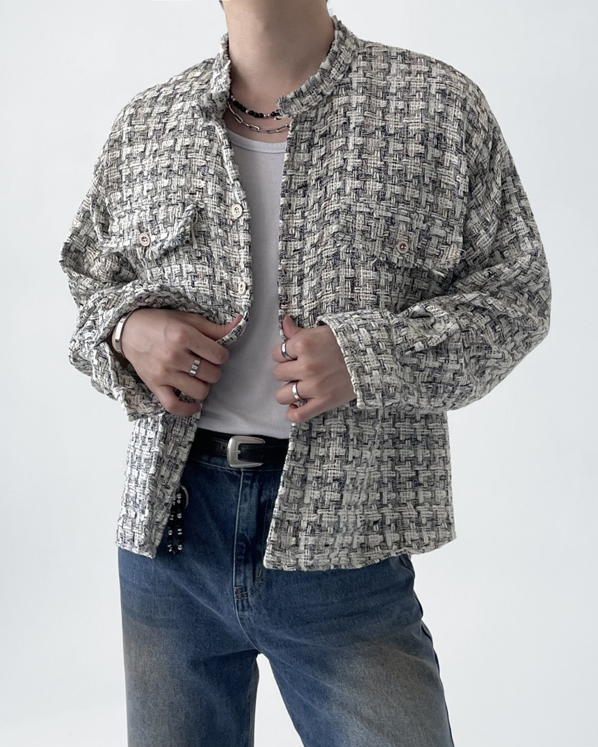 這款粗花呢襯衫外套採用略帶粗糙質感的面料,