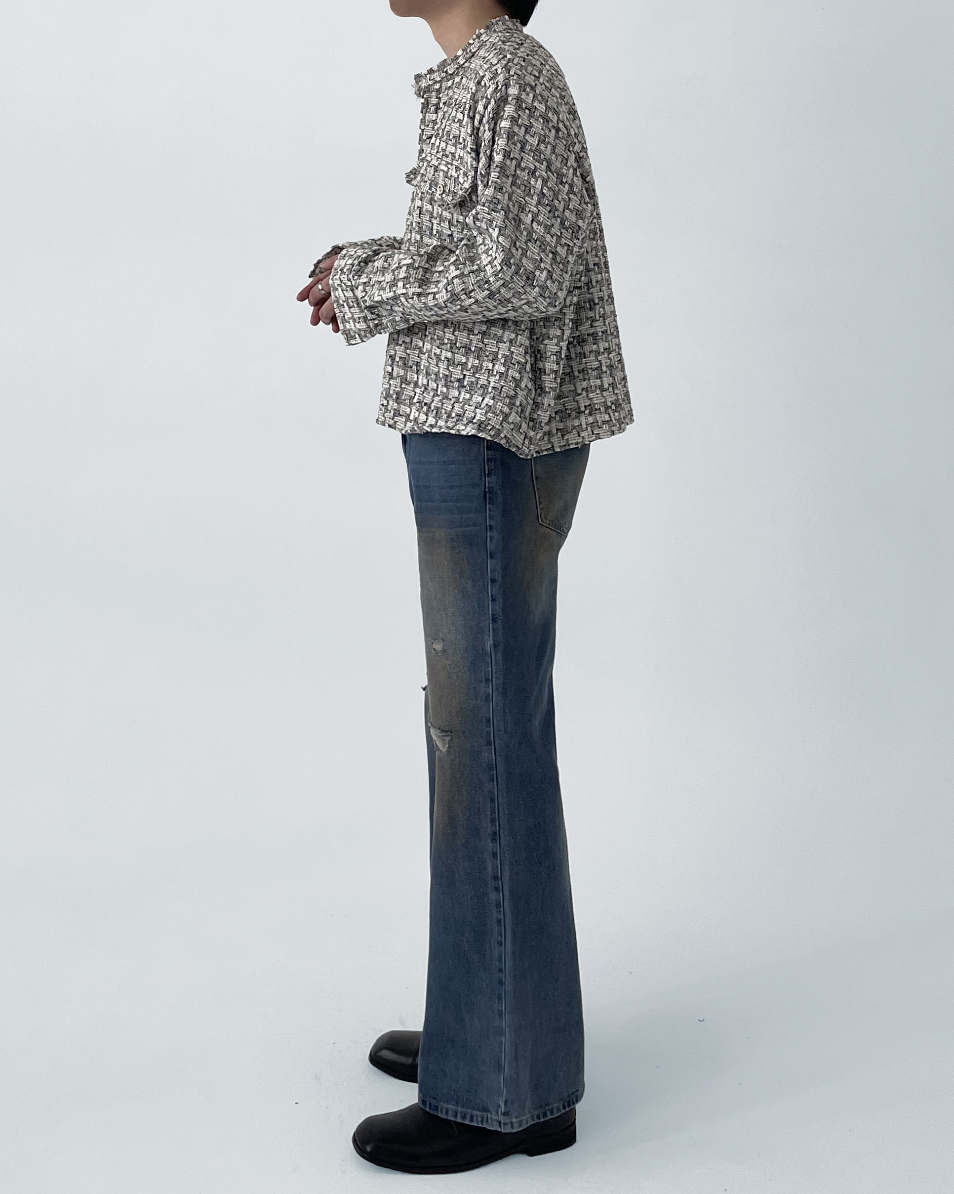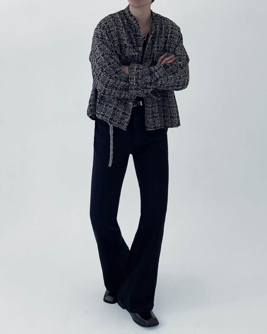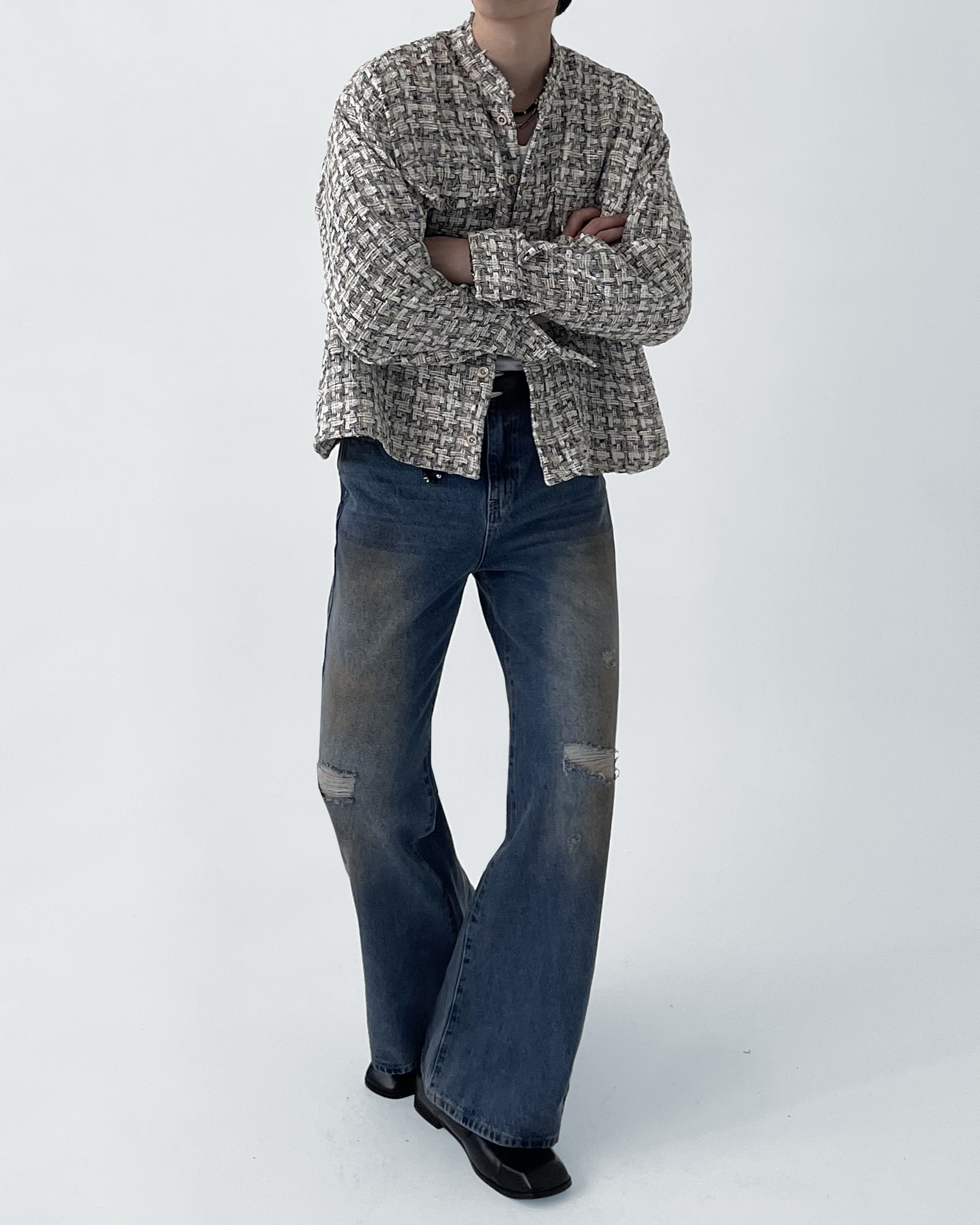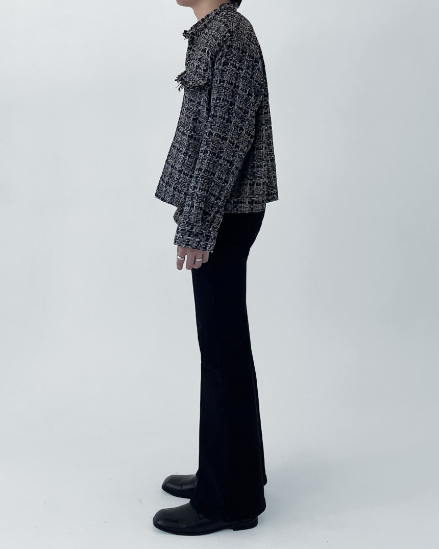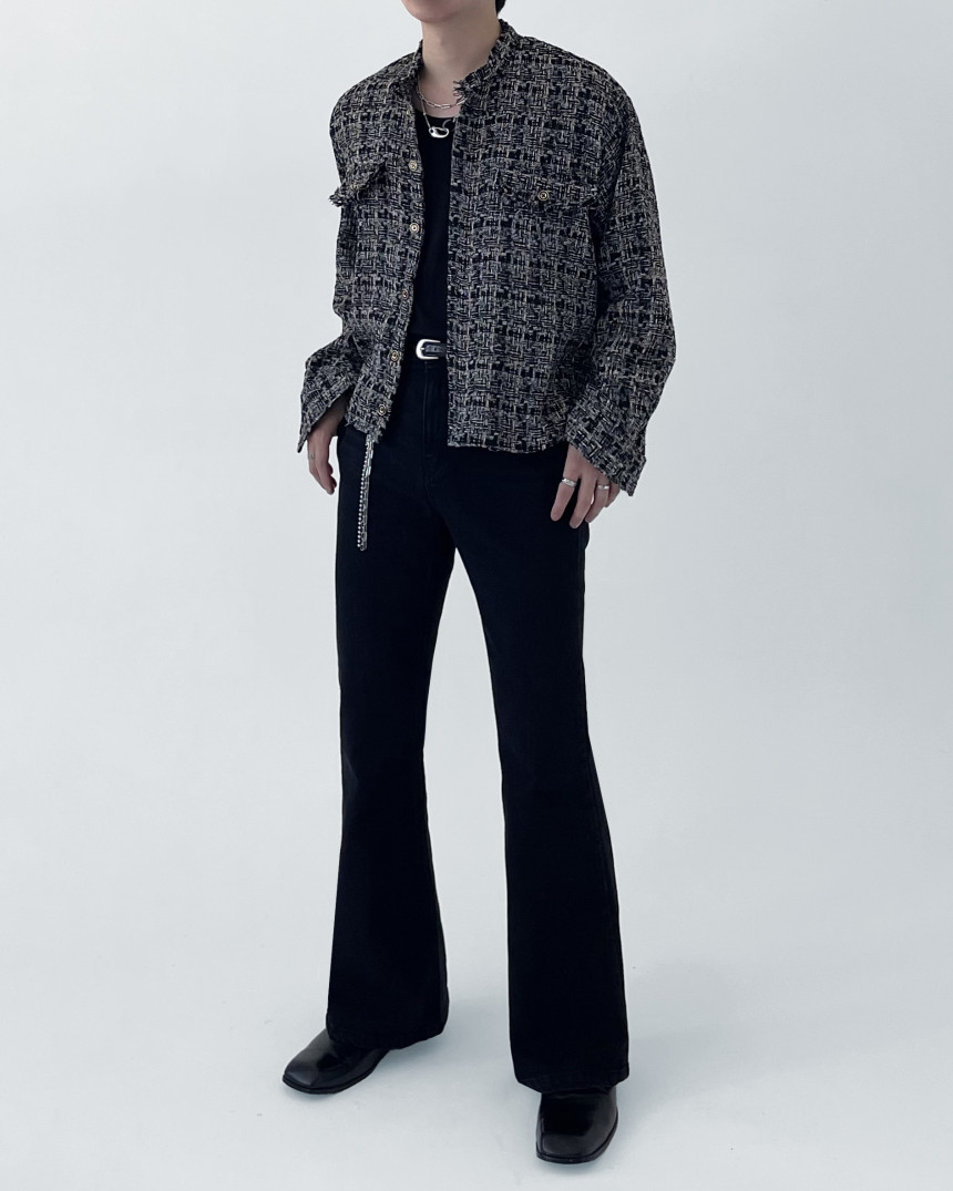 這款粗花呢襯衫外套採用略帶粗糙質感的面料,
