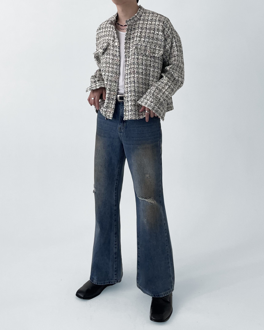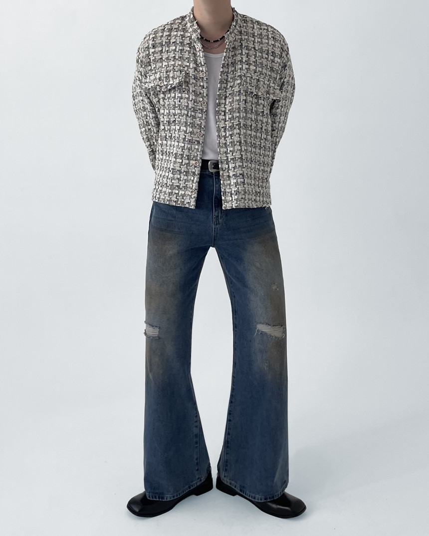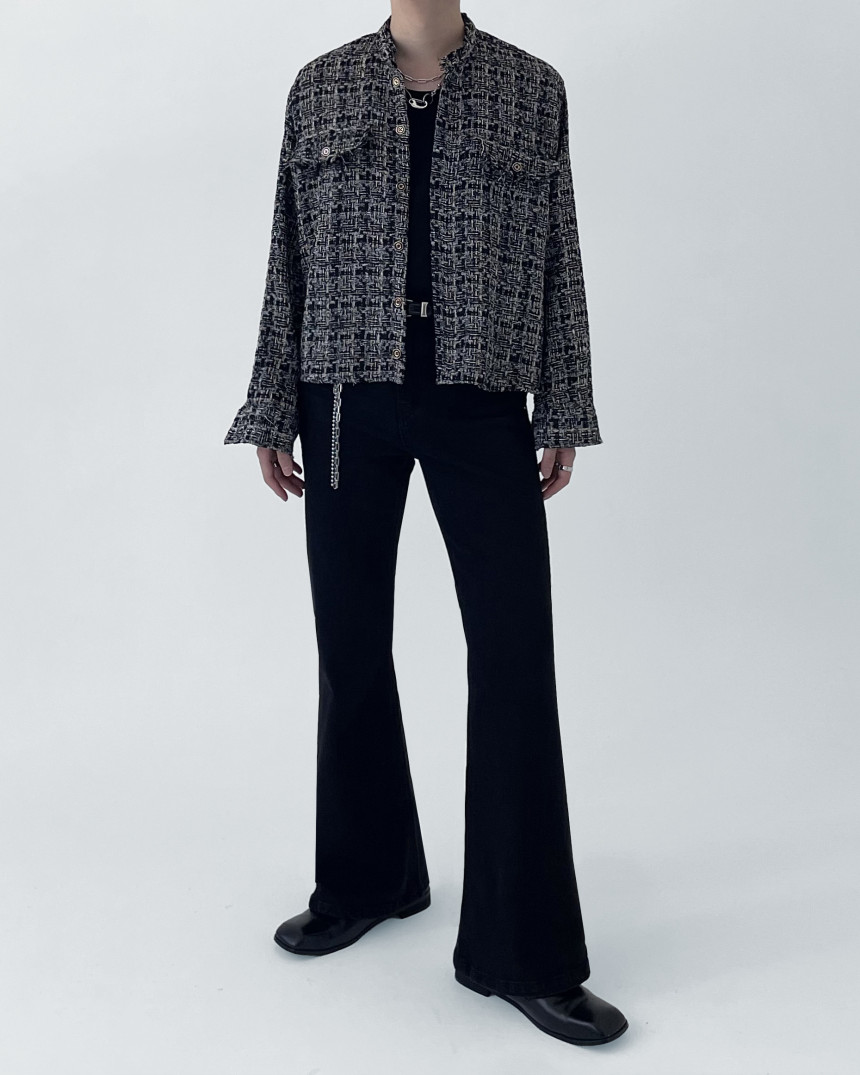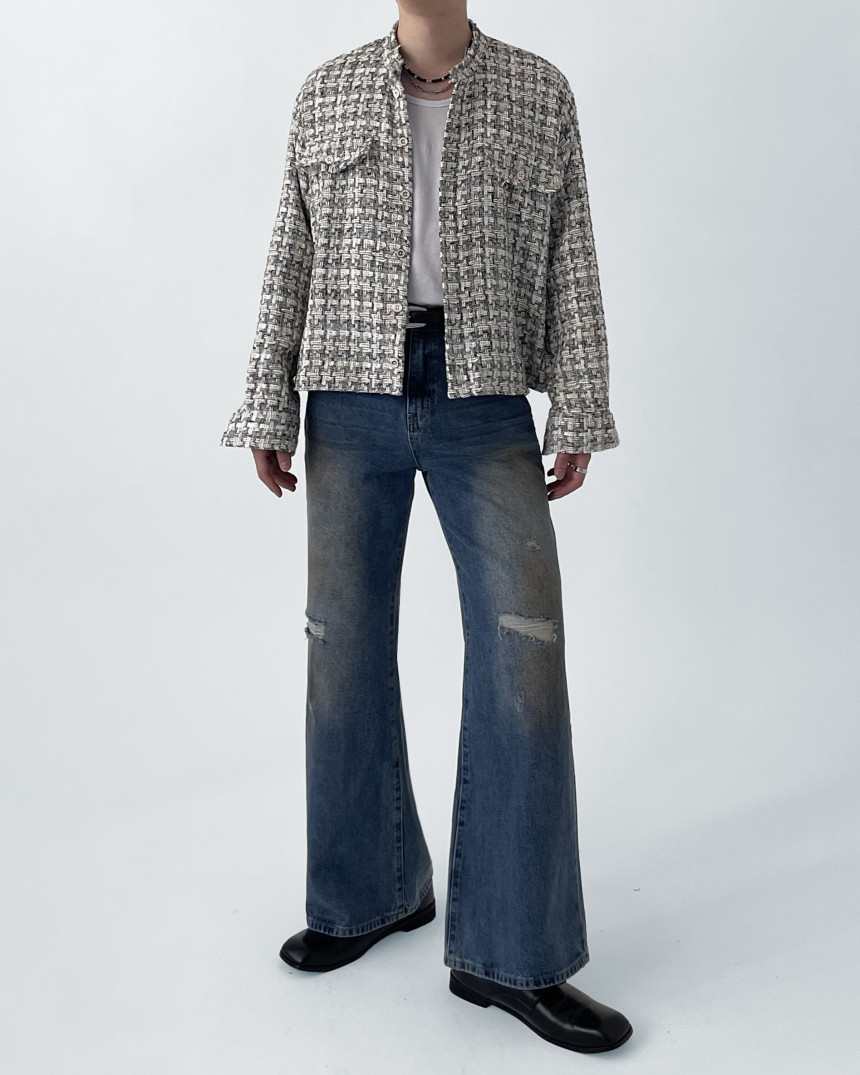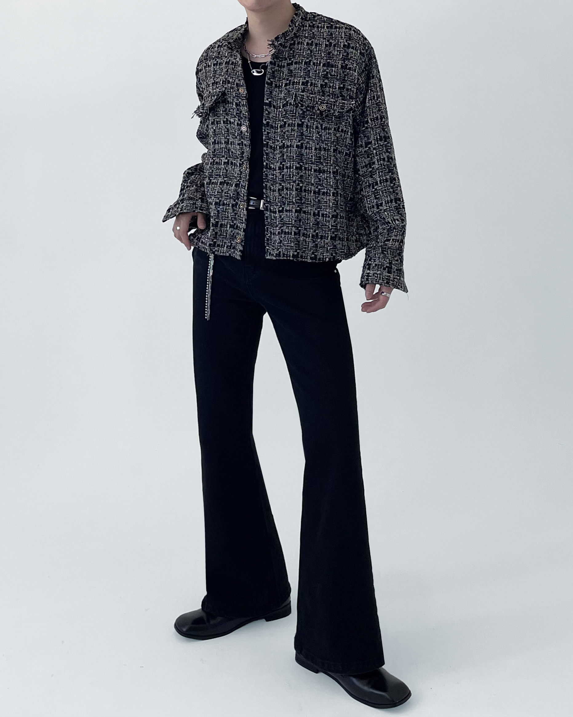 這款粗花呢襯衫外套採用略帶粗糙質感的面料,
