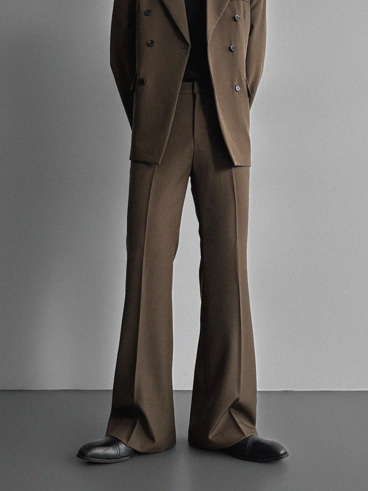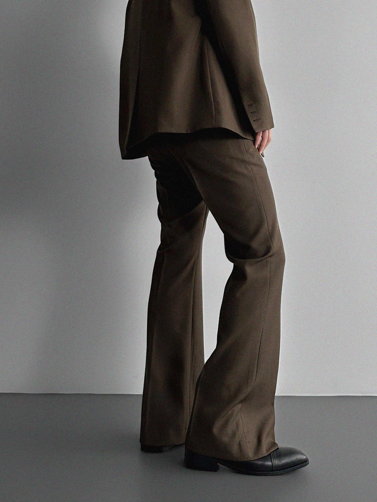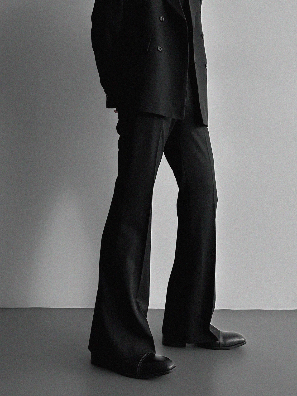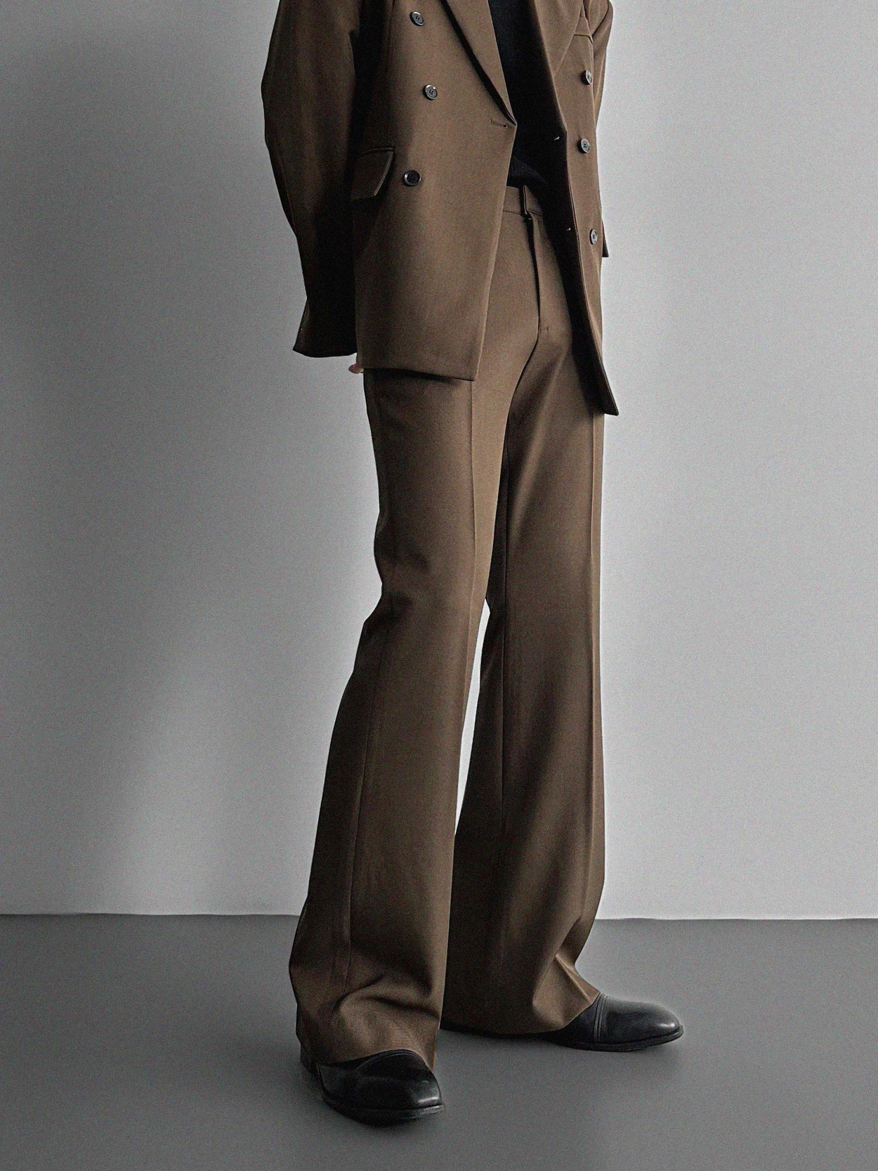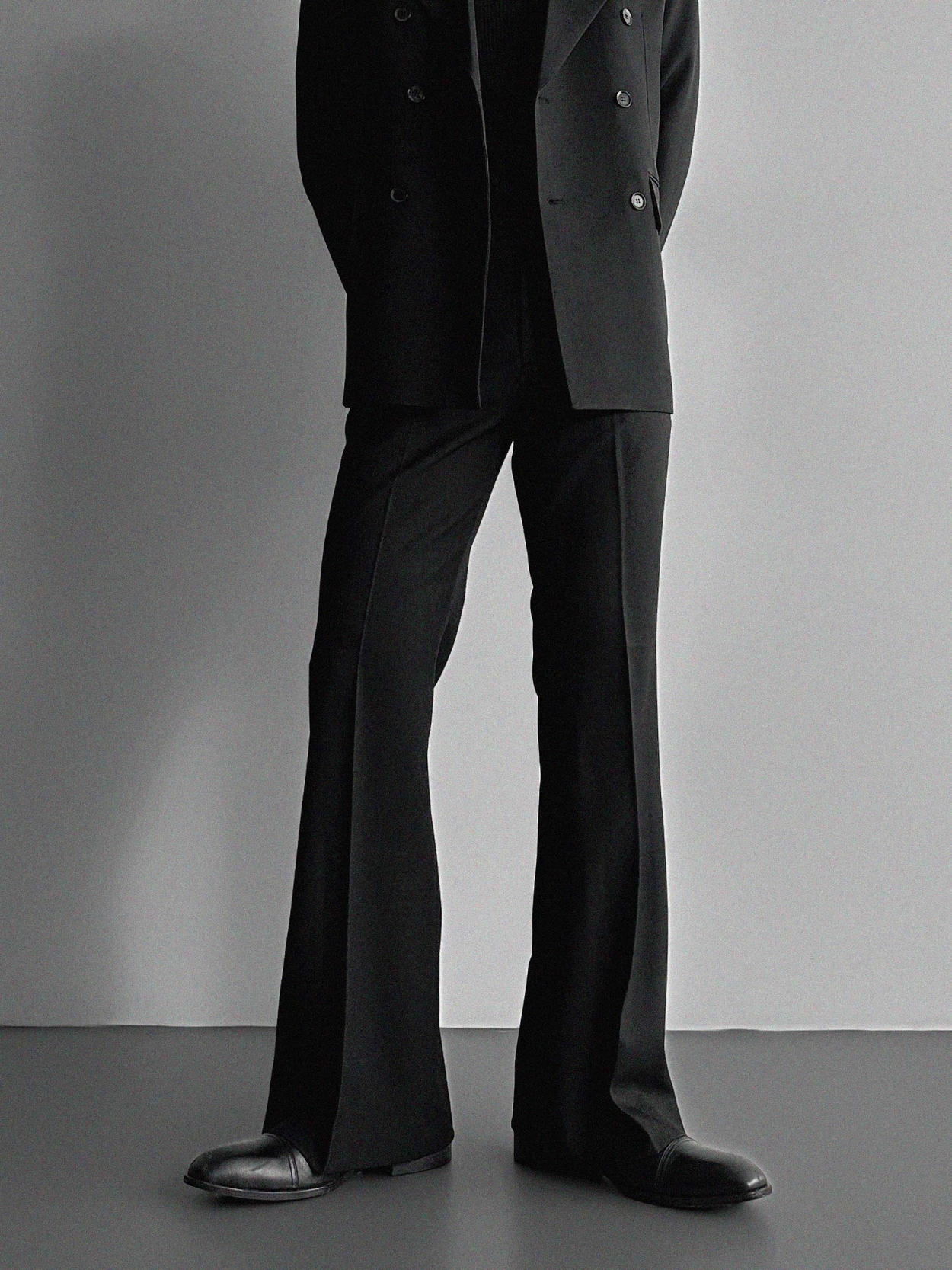 垂墜感極佳;喇叭褲則以俐落挺括的版型拉長腿部線條。