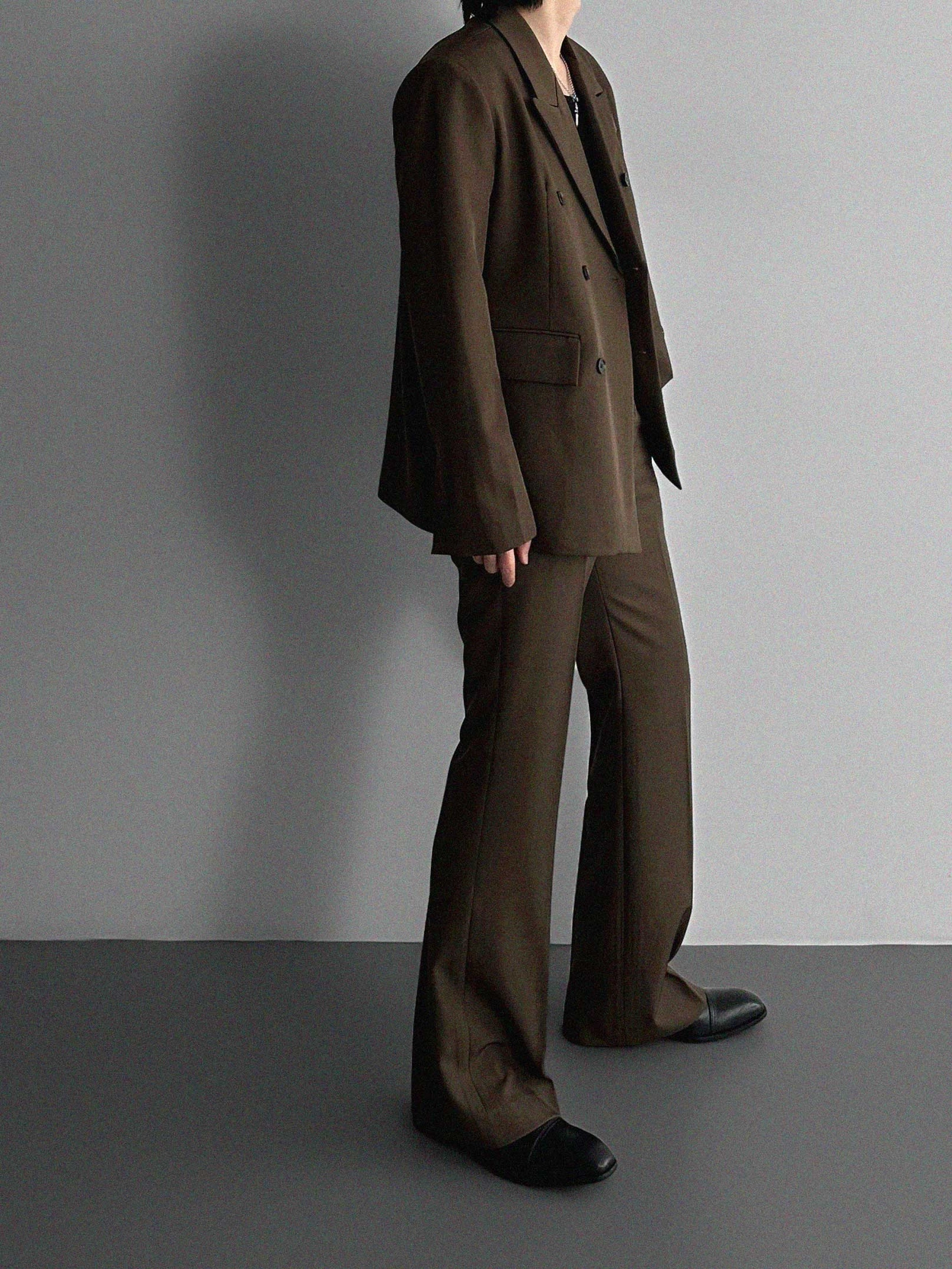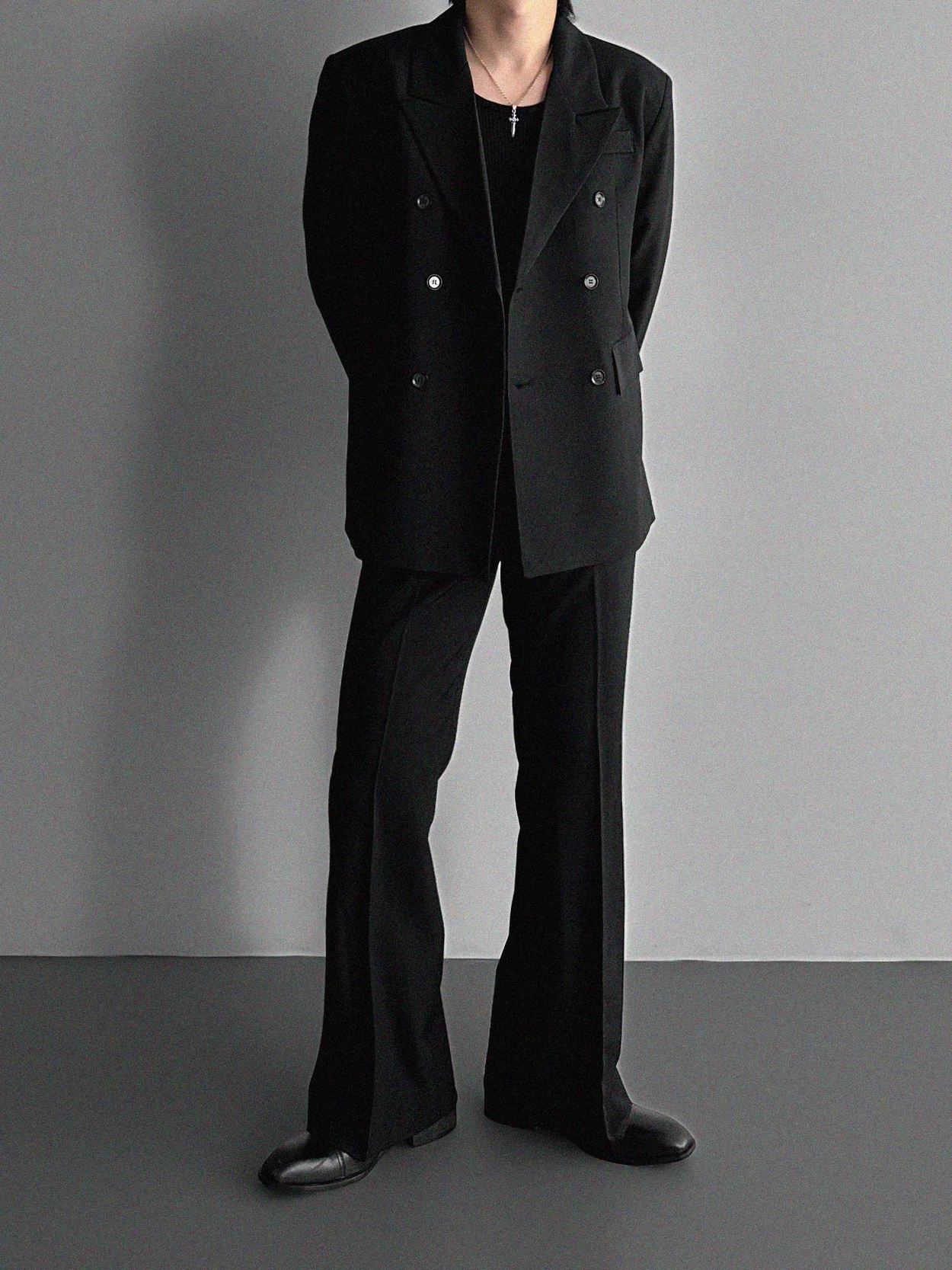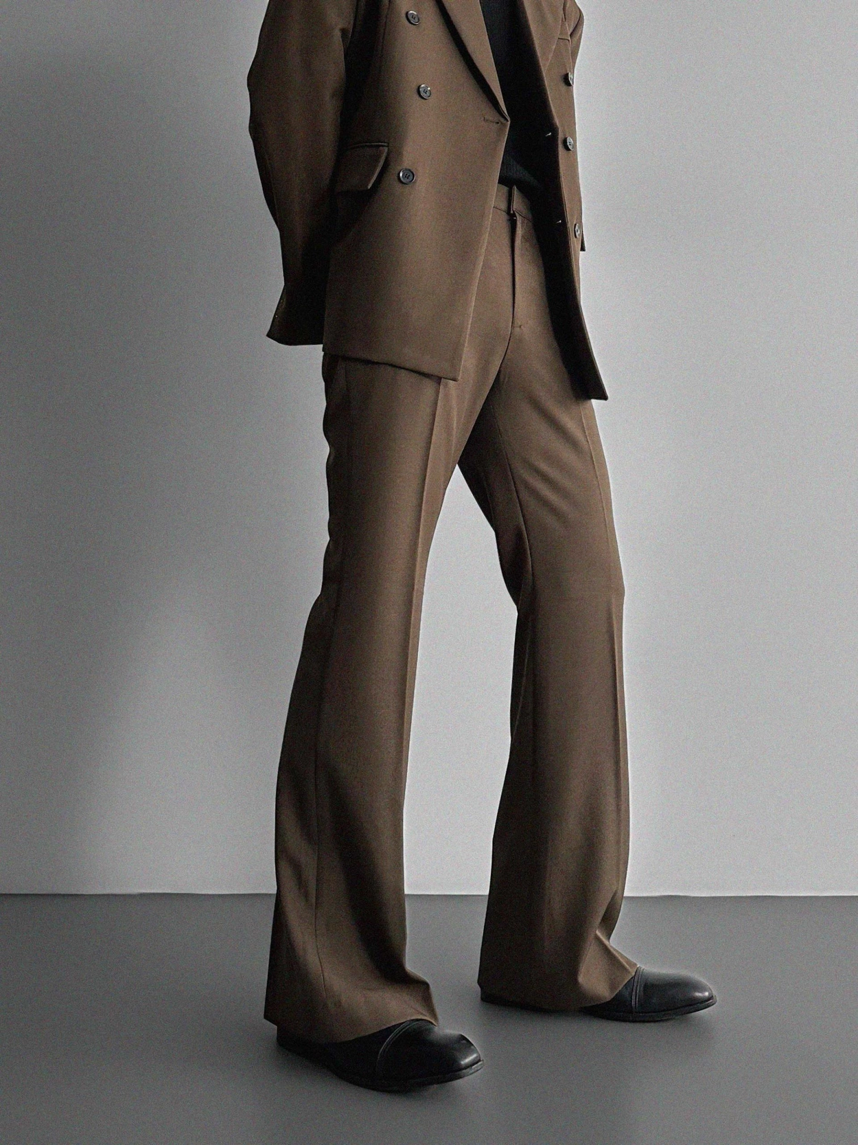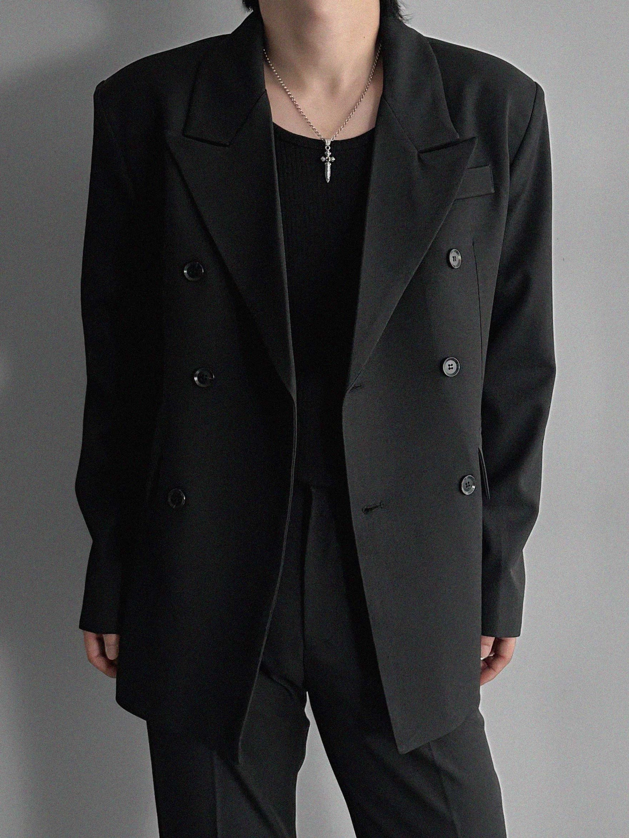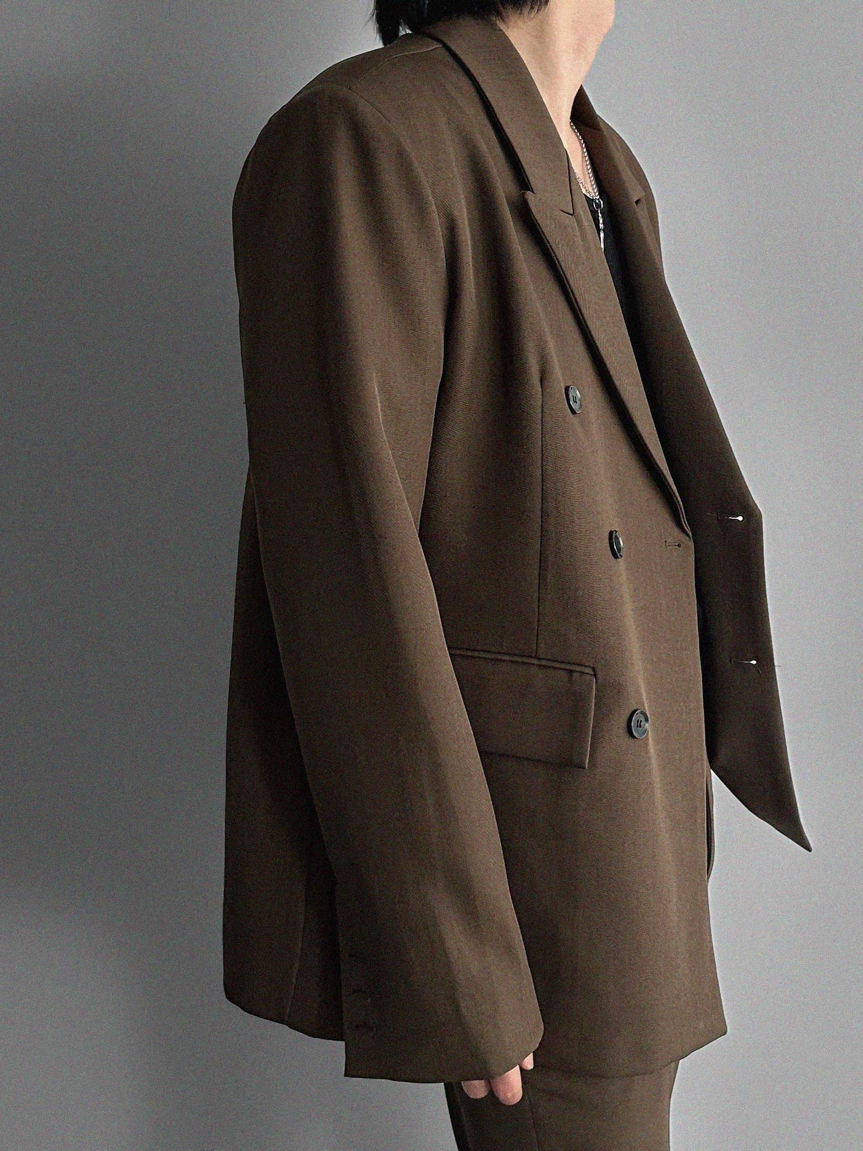 這款精緻的雙排扣西裝套裝融合了現代剪裁與休閒輪廓。