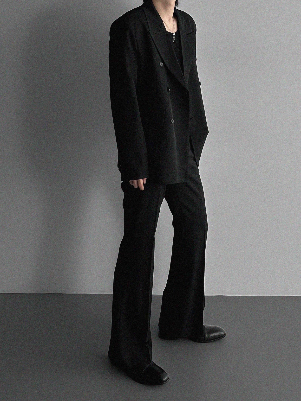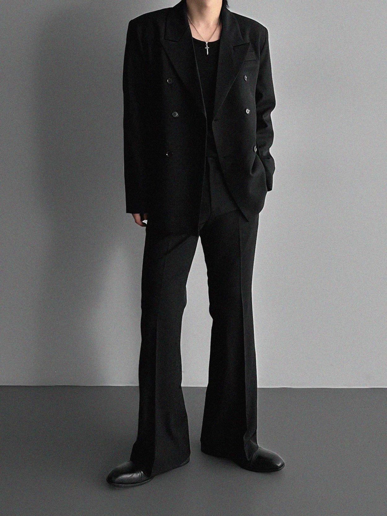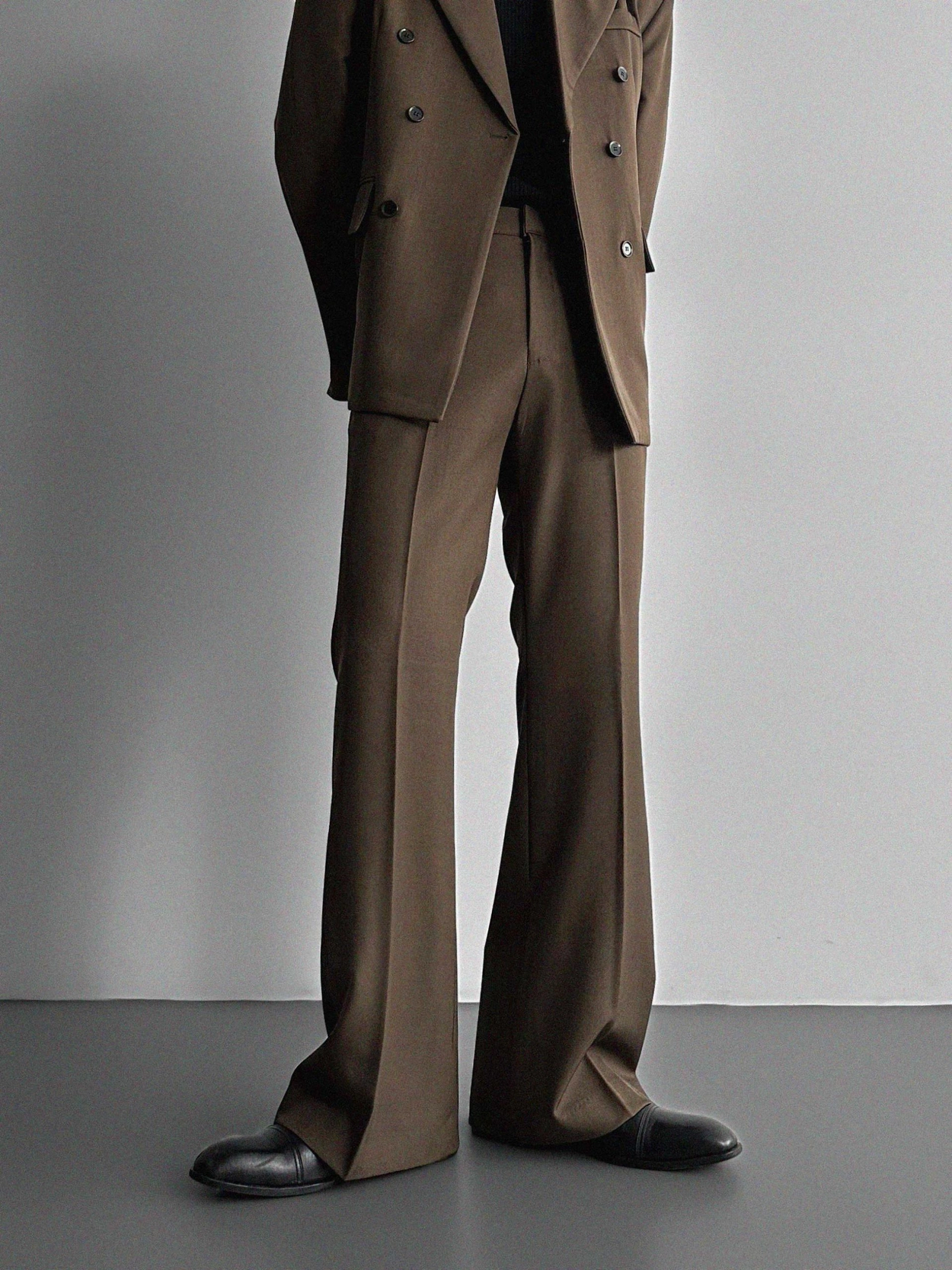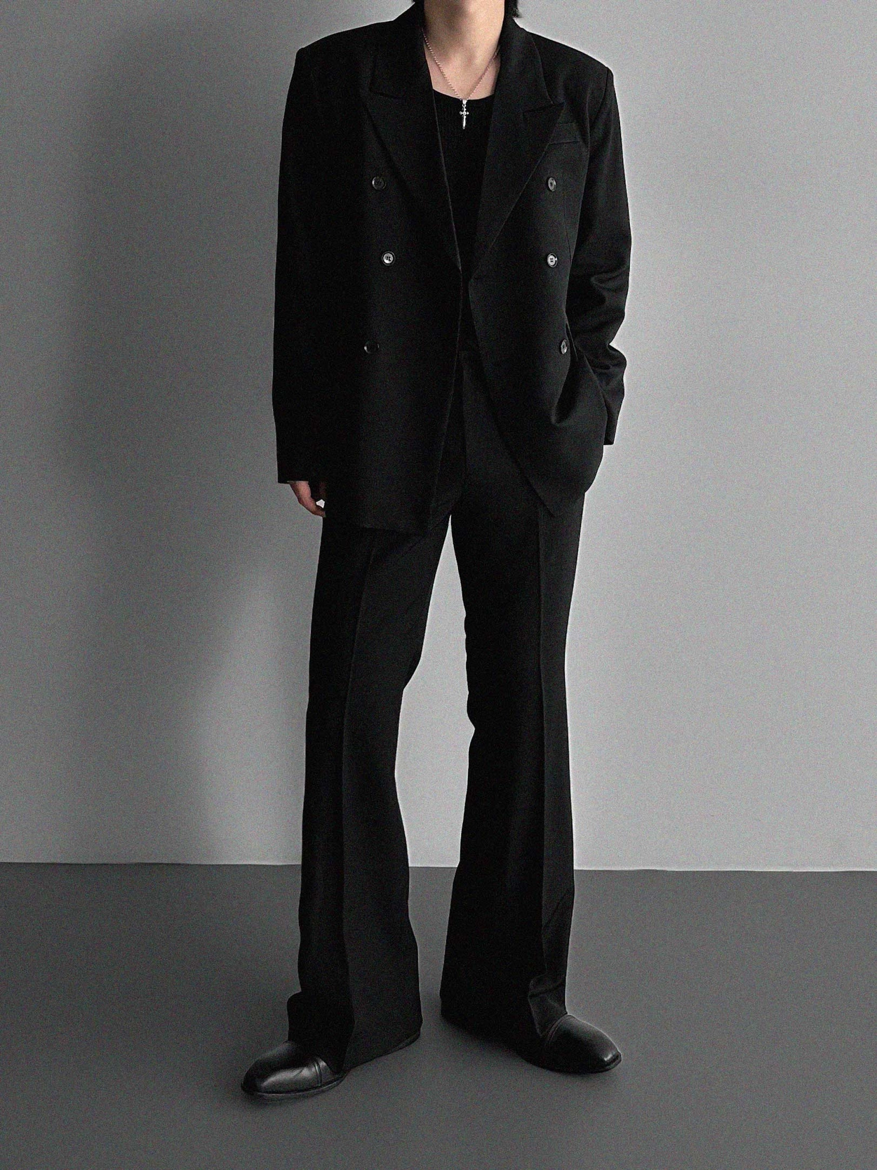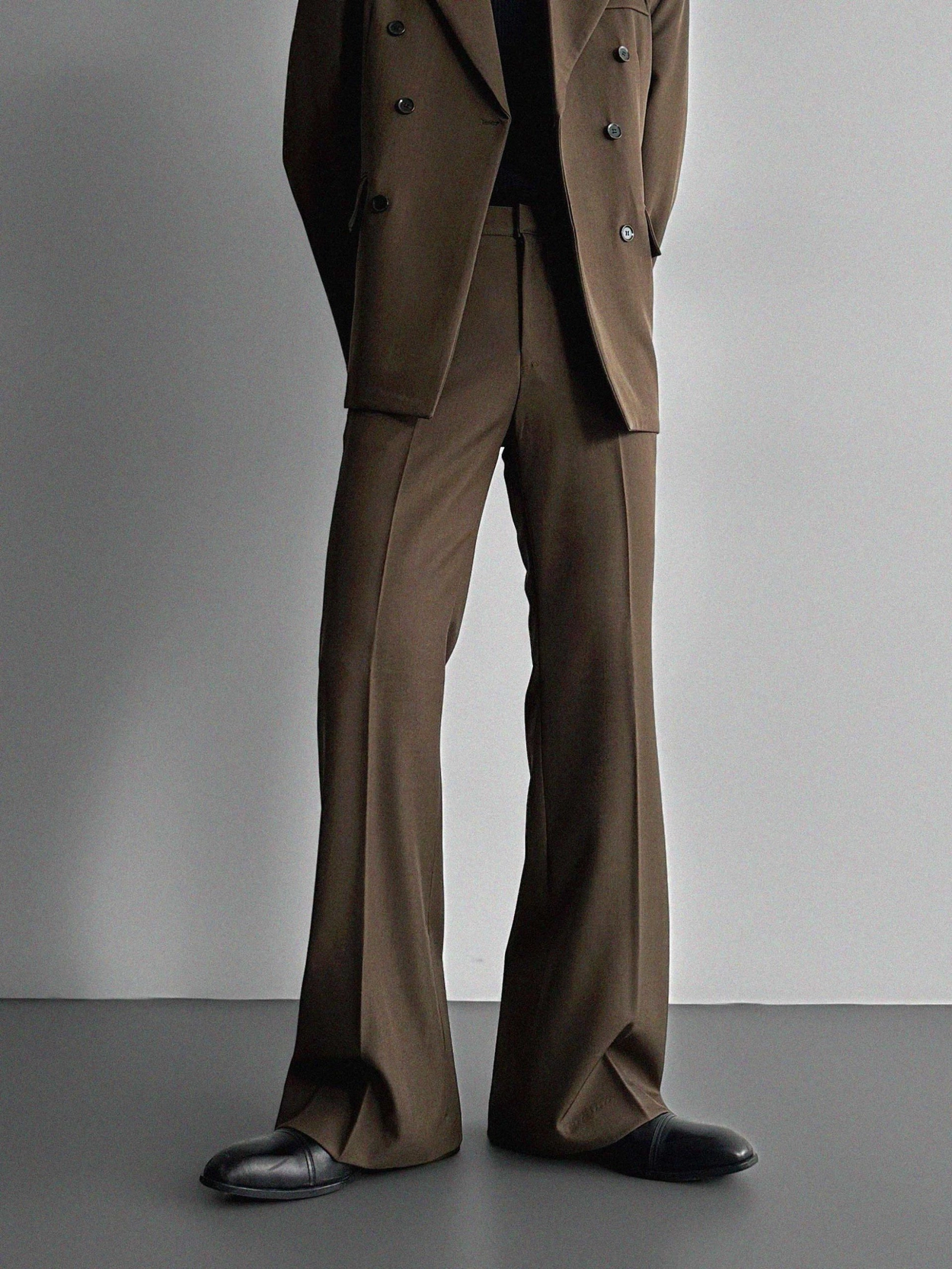 這款精緻的雙排扣西裝套裝融合了現代剪裁與休閒輪廓。