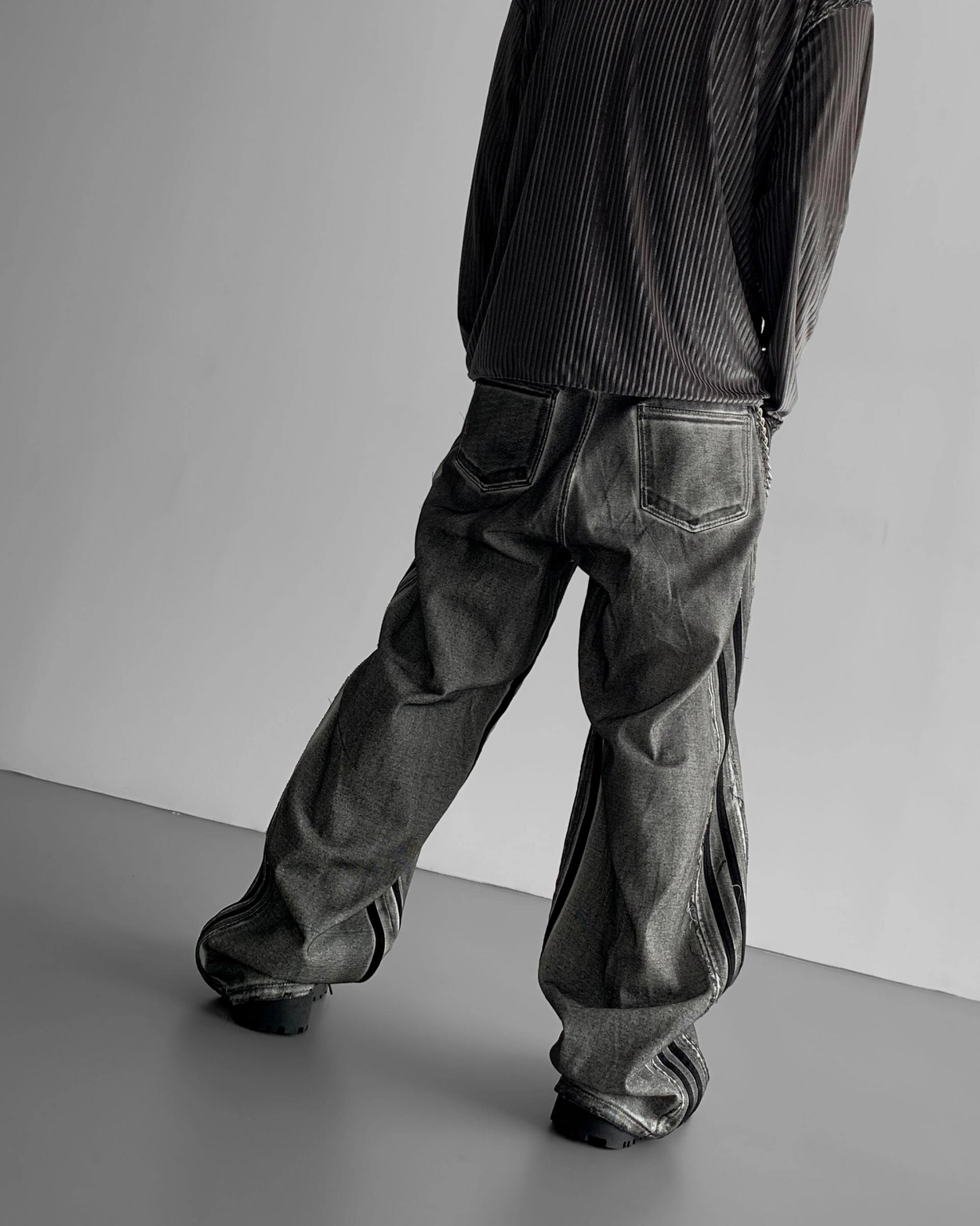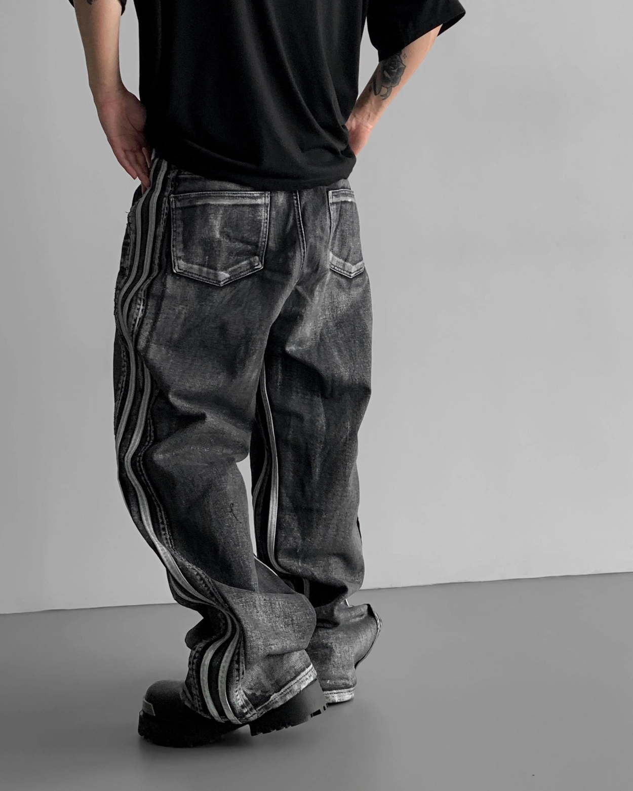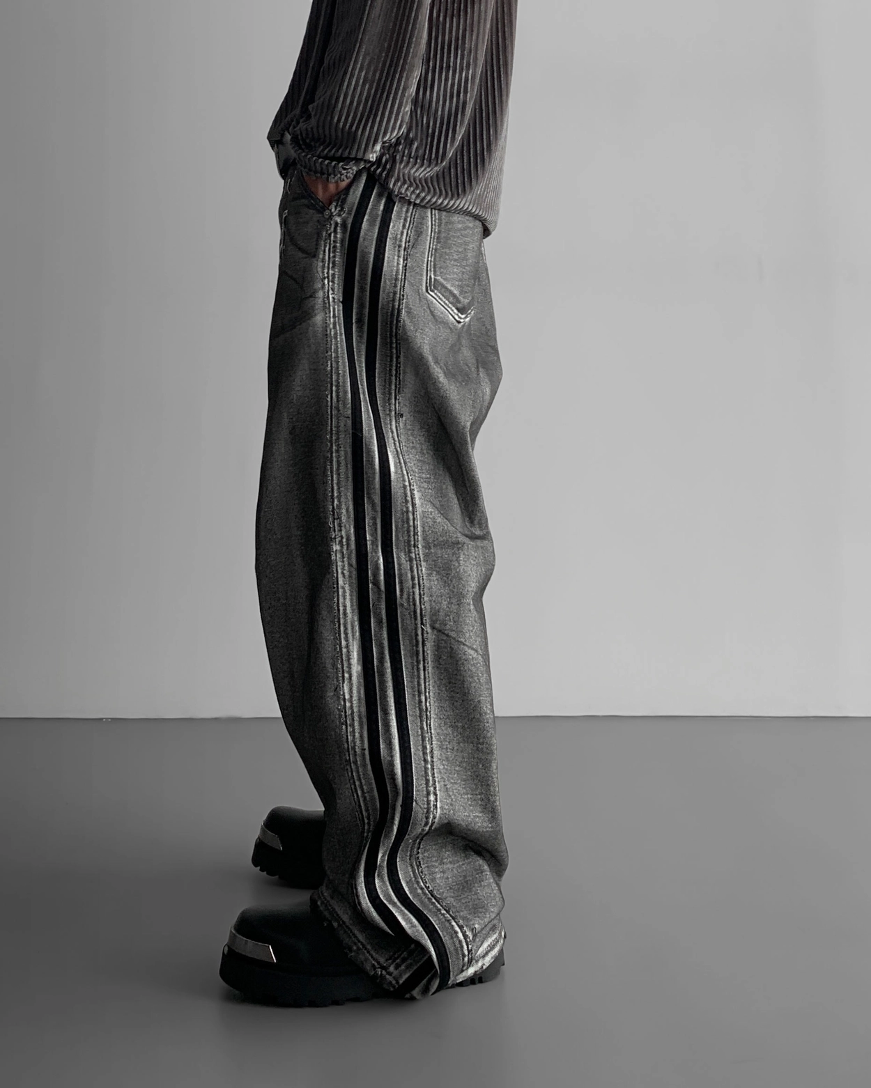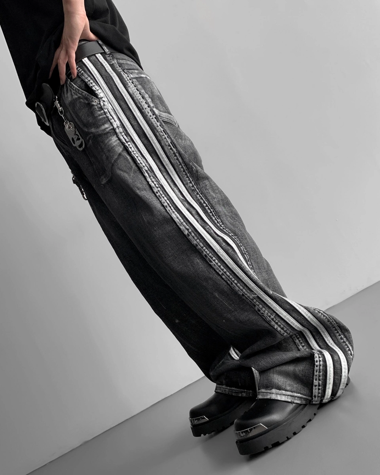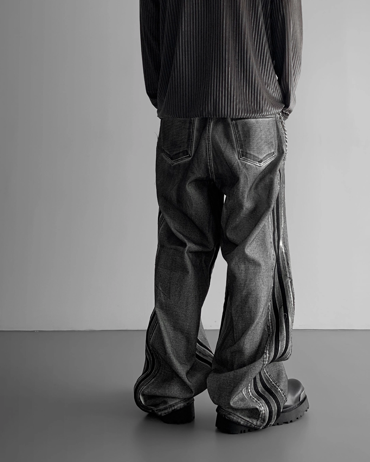 - 獨特水洗牛仔長褲