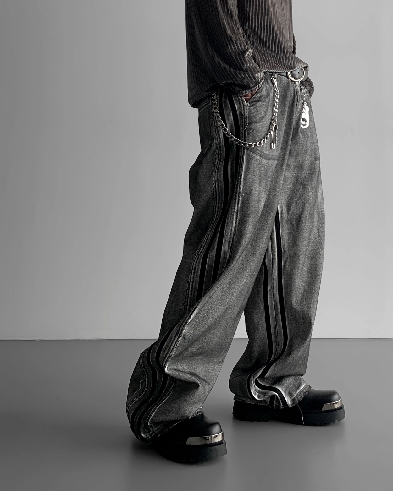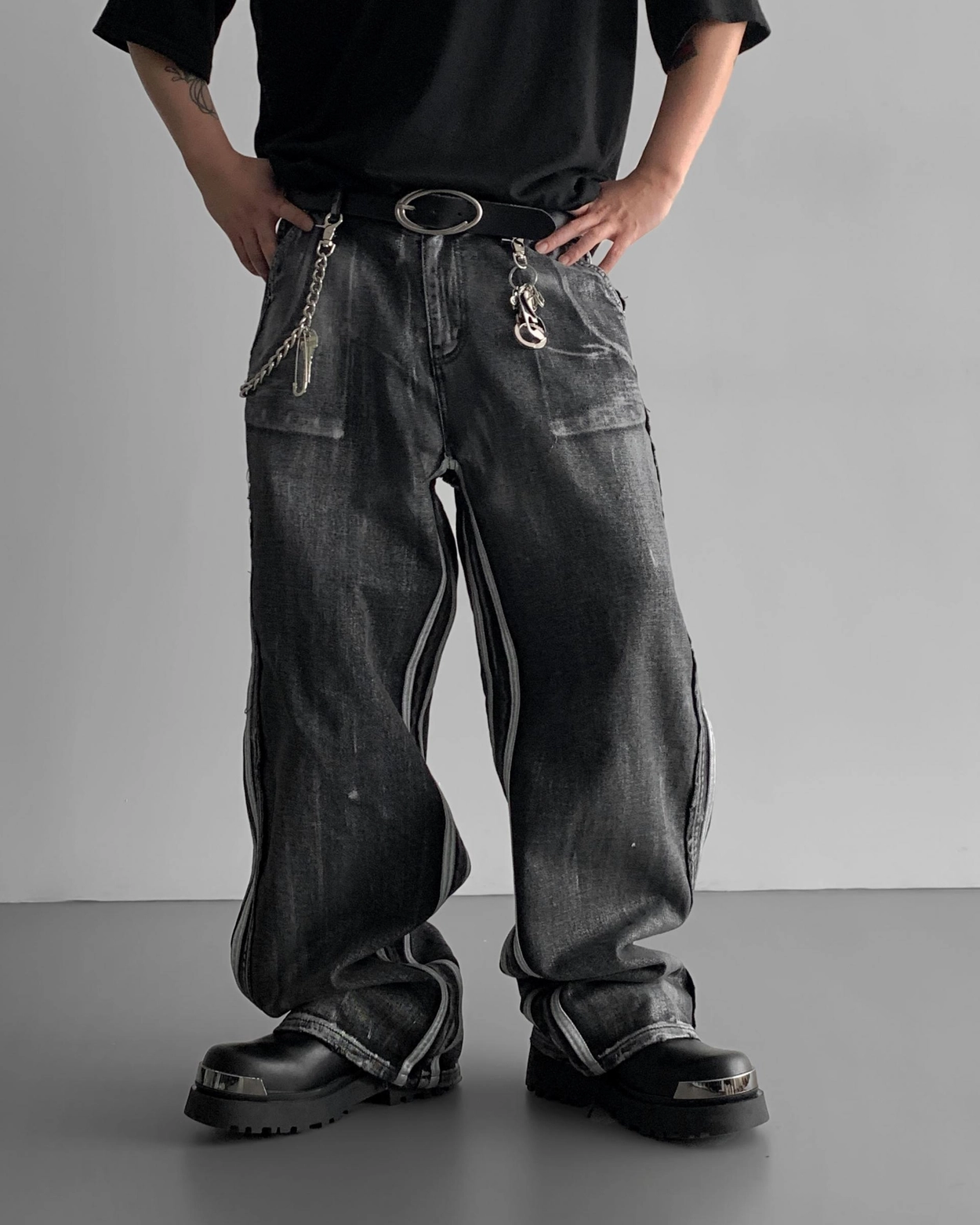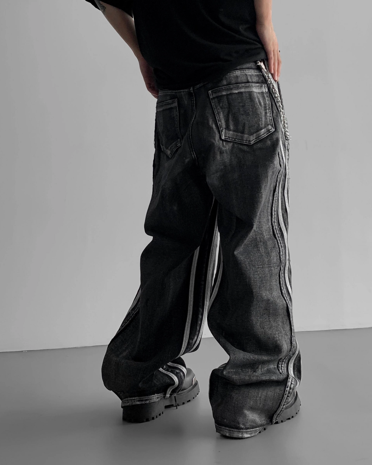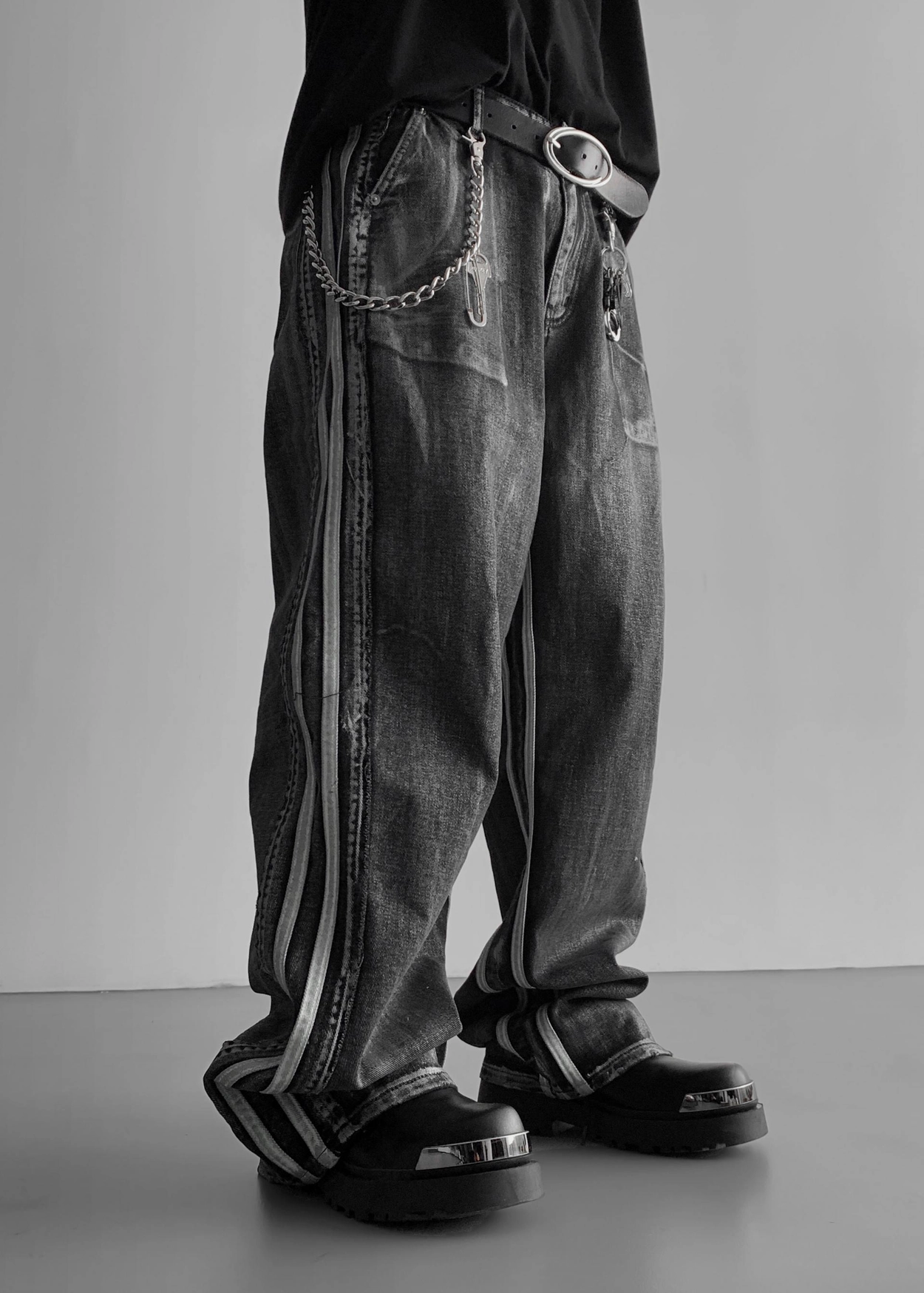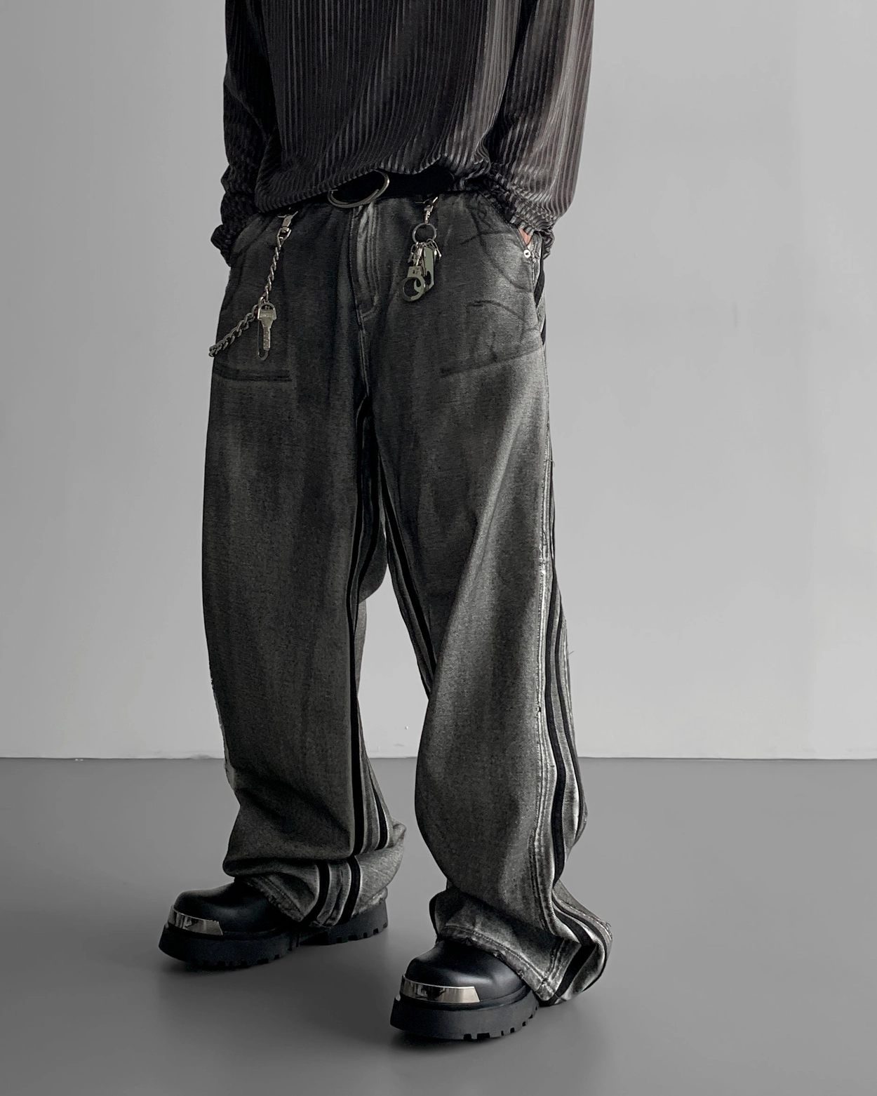 - 獨特水洗牛仔長褲